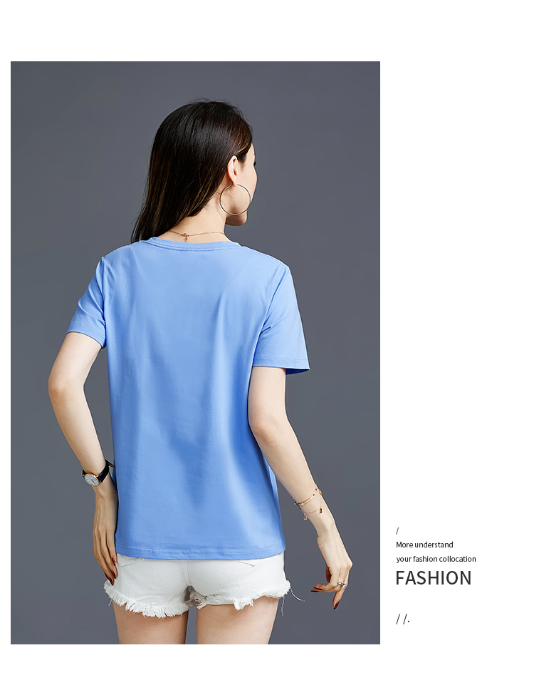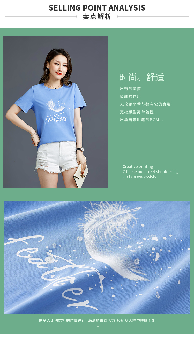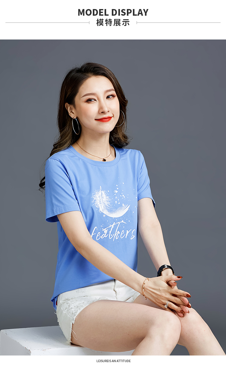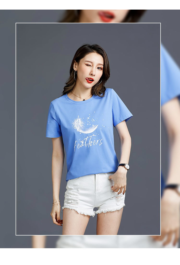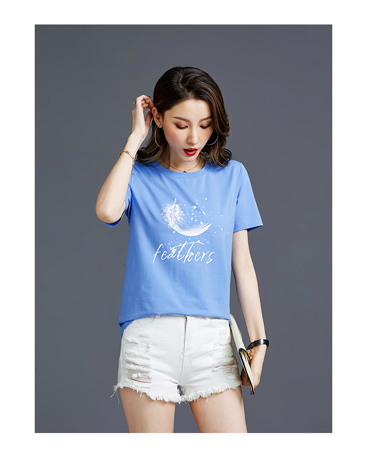 常规短袖2021夏新款T恤女羽毛简约纯棉韩版百搭宽松多色直播爆款