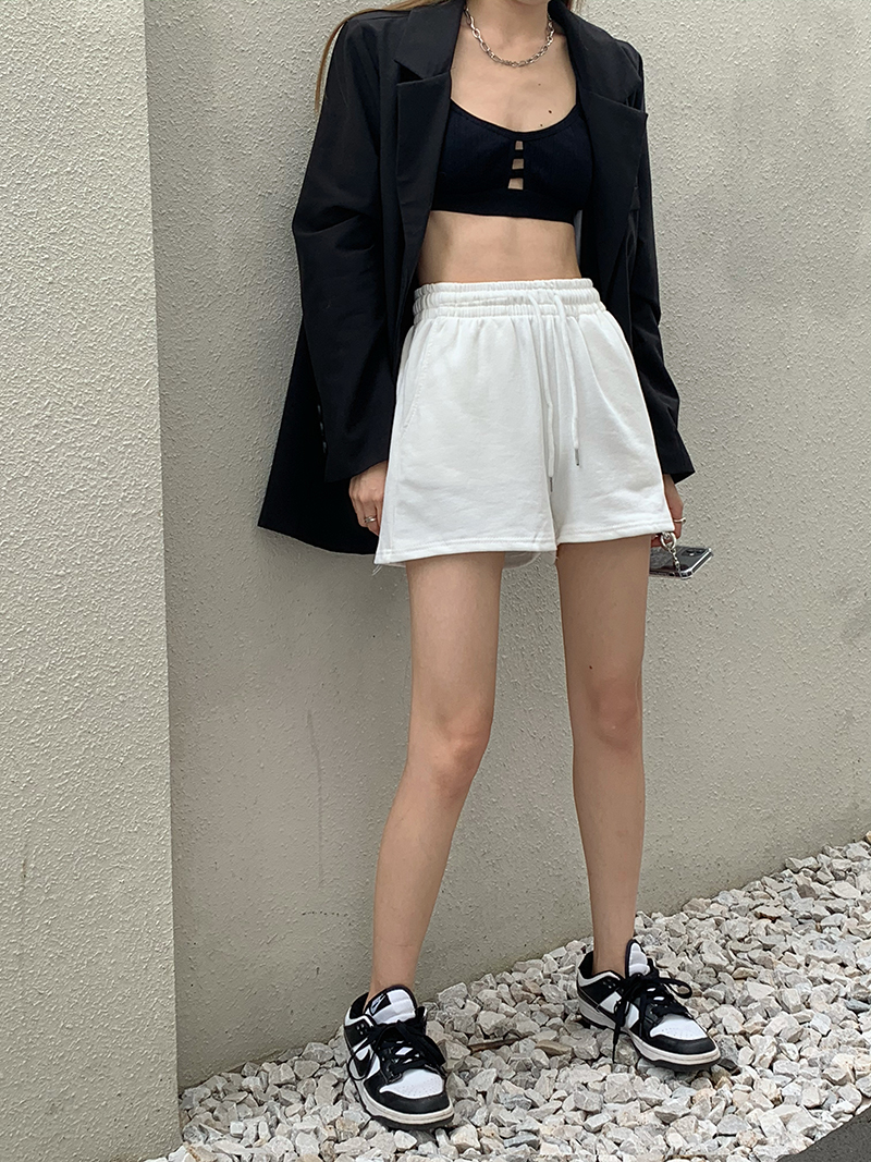 实价实拍三标齐4色简约休闲运动裤韩版宽松抽绳短裤