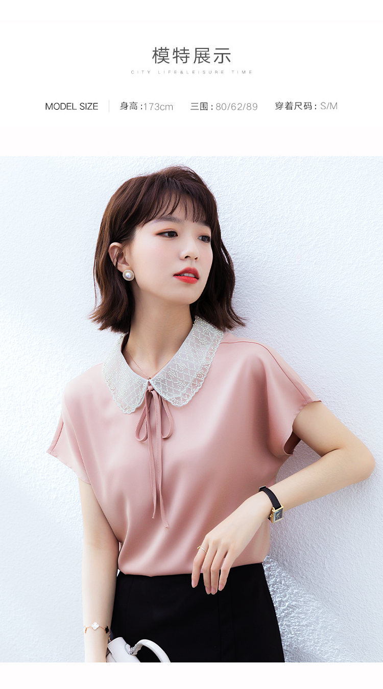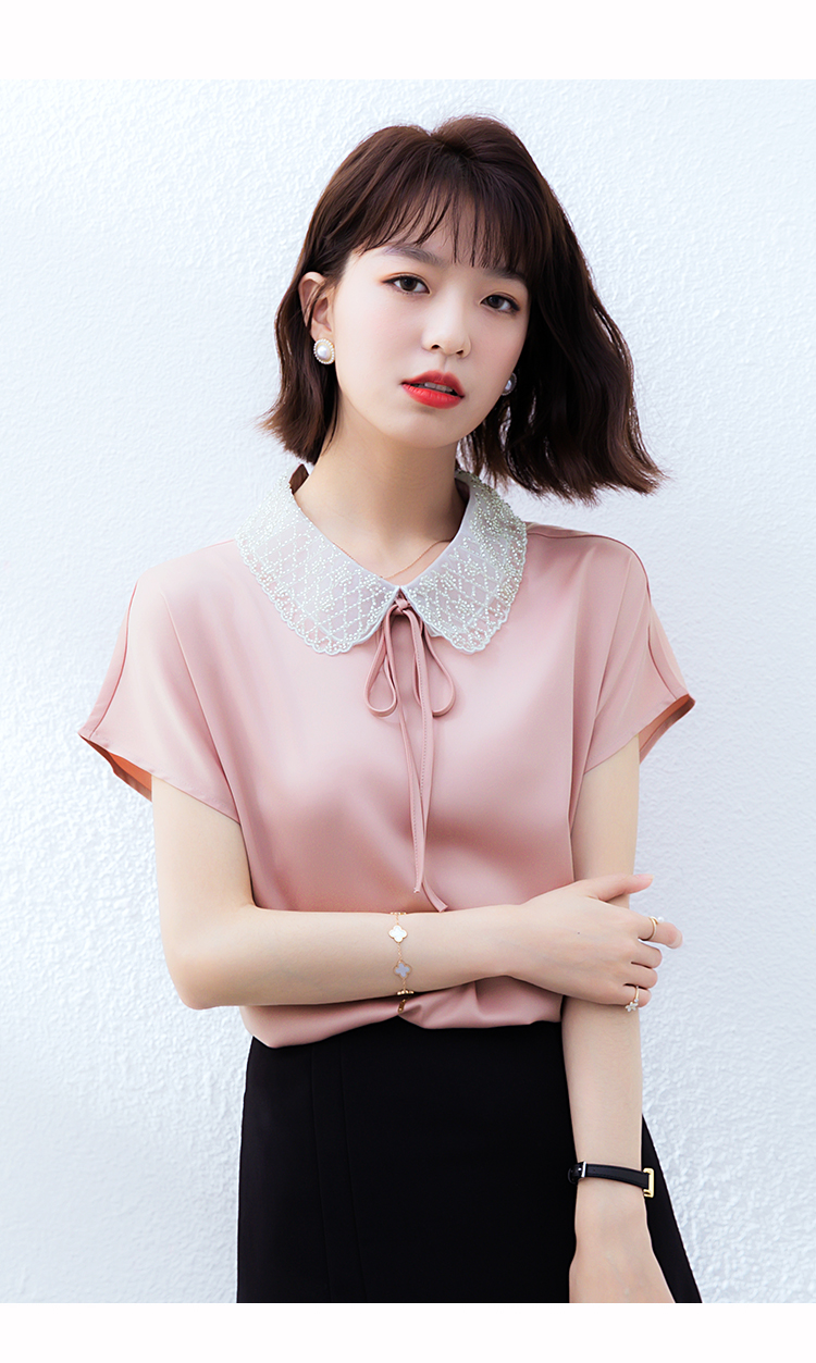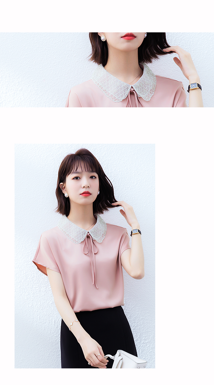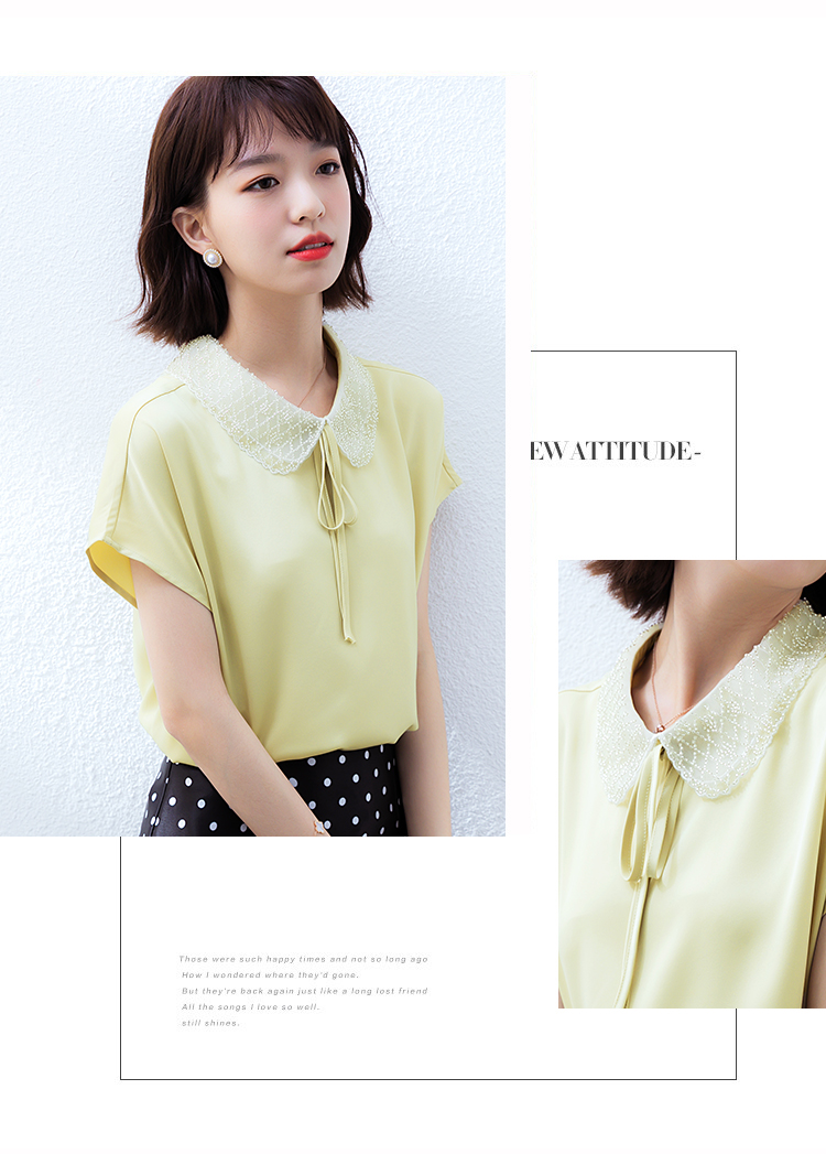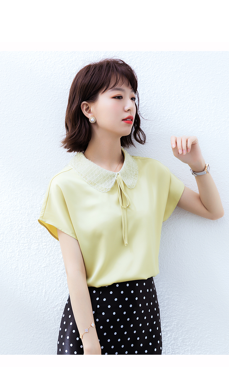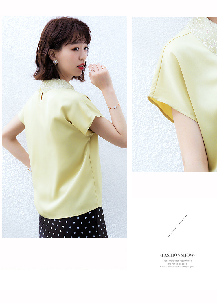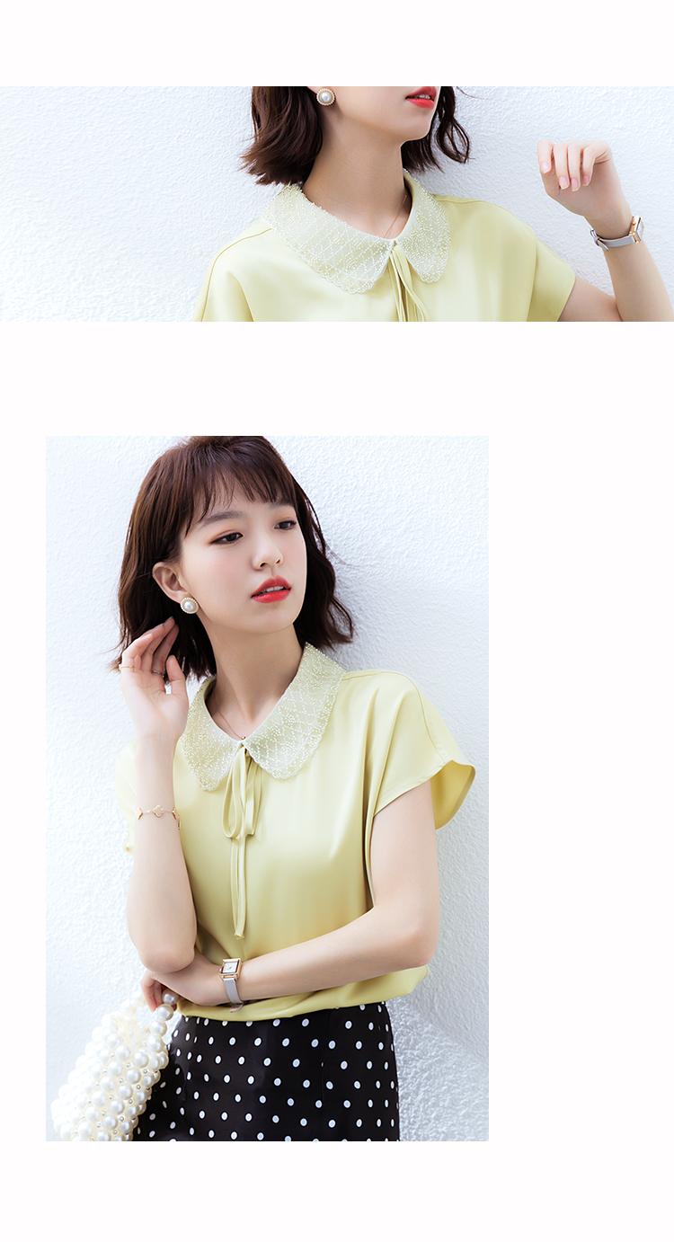 实拍法式甜美雪纺衫时尚2021夏季新款短袖纯色高档缎面小衫女