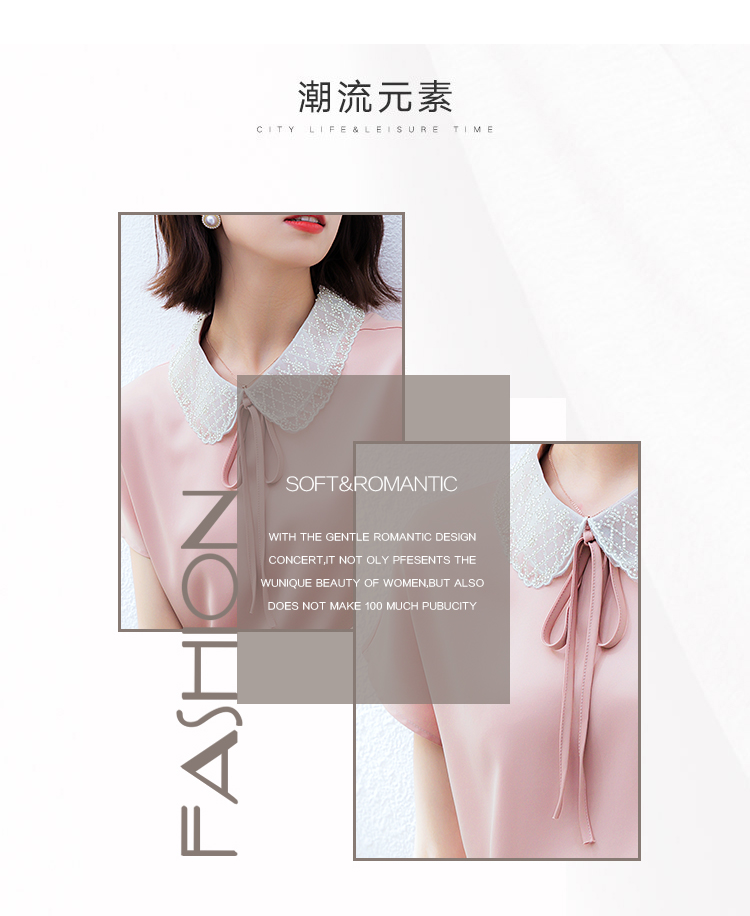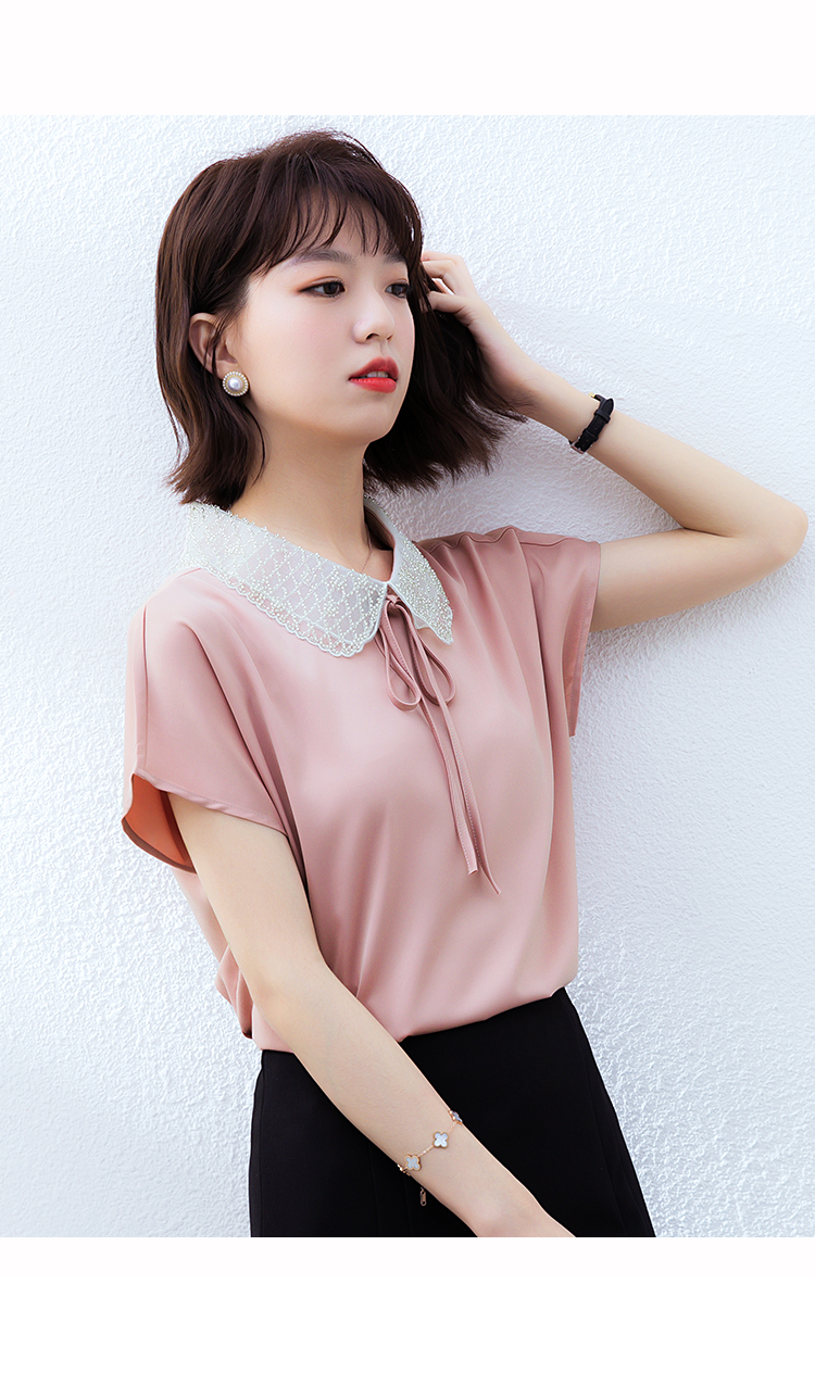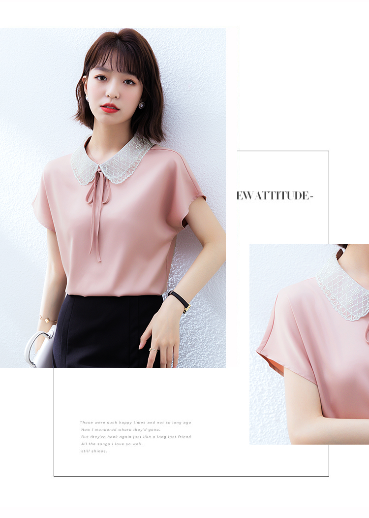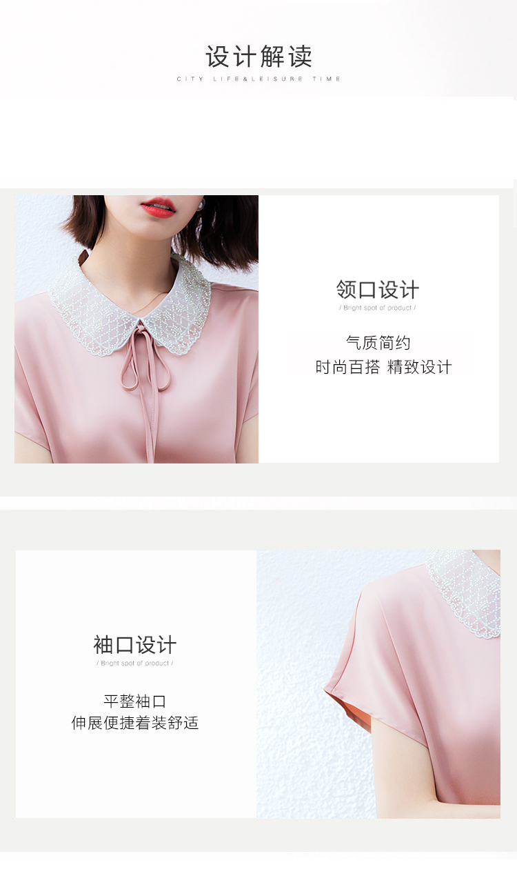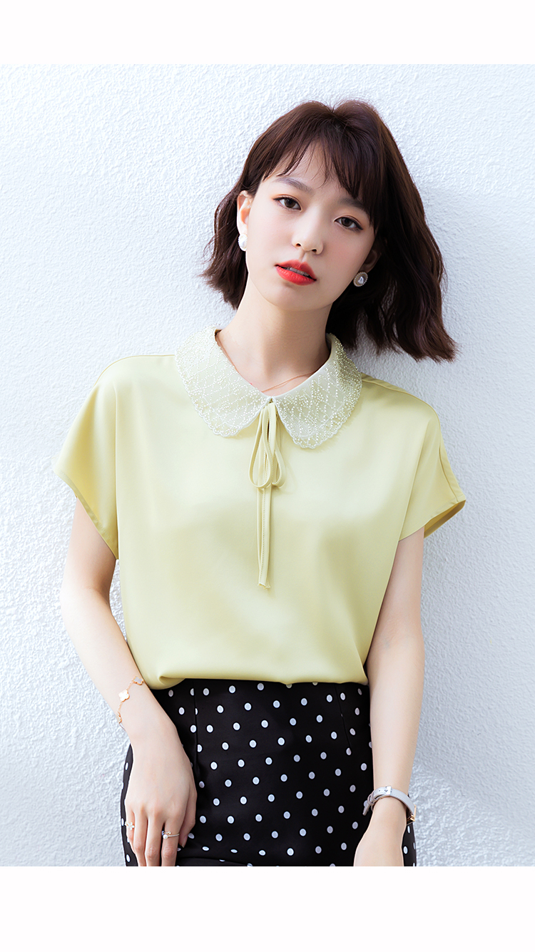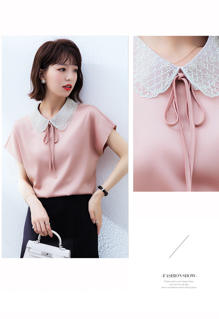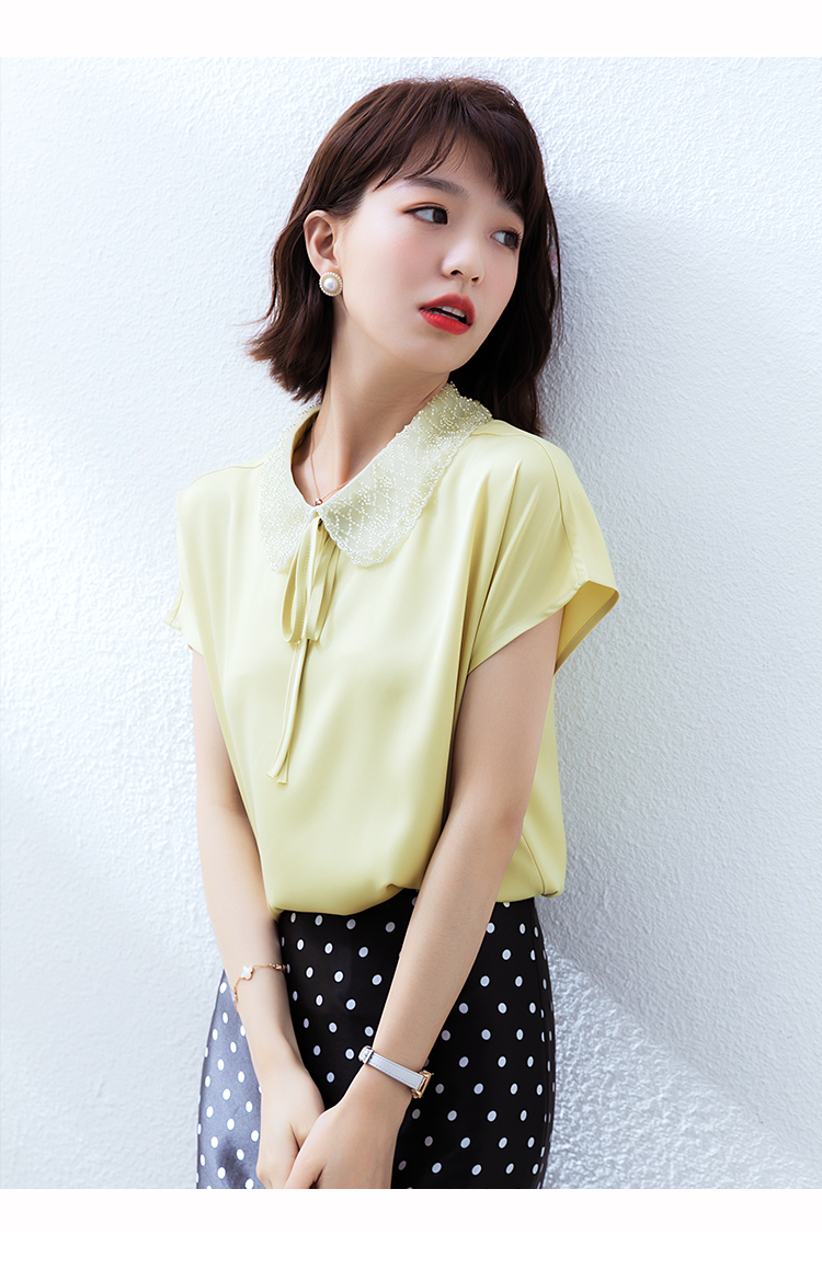 实拍法式甜美雪纺衫时尚2021夏季新款短袖纯色高档缎面小衫女