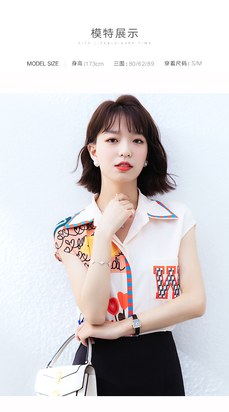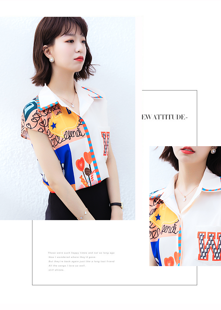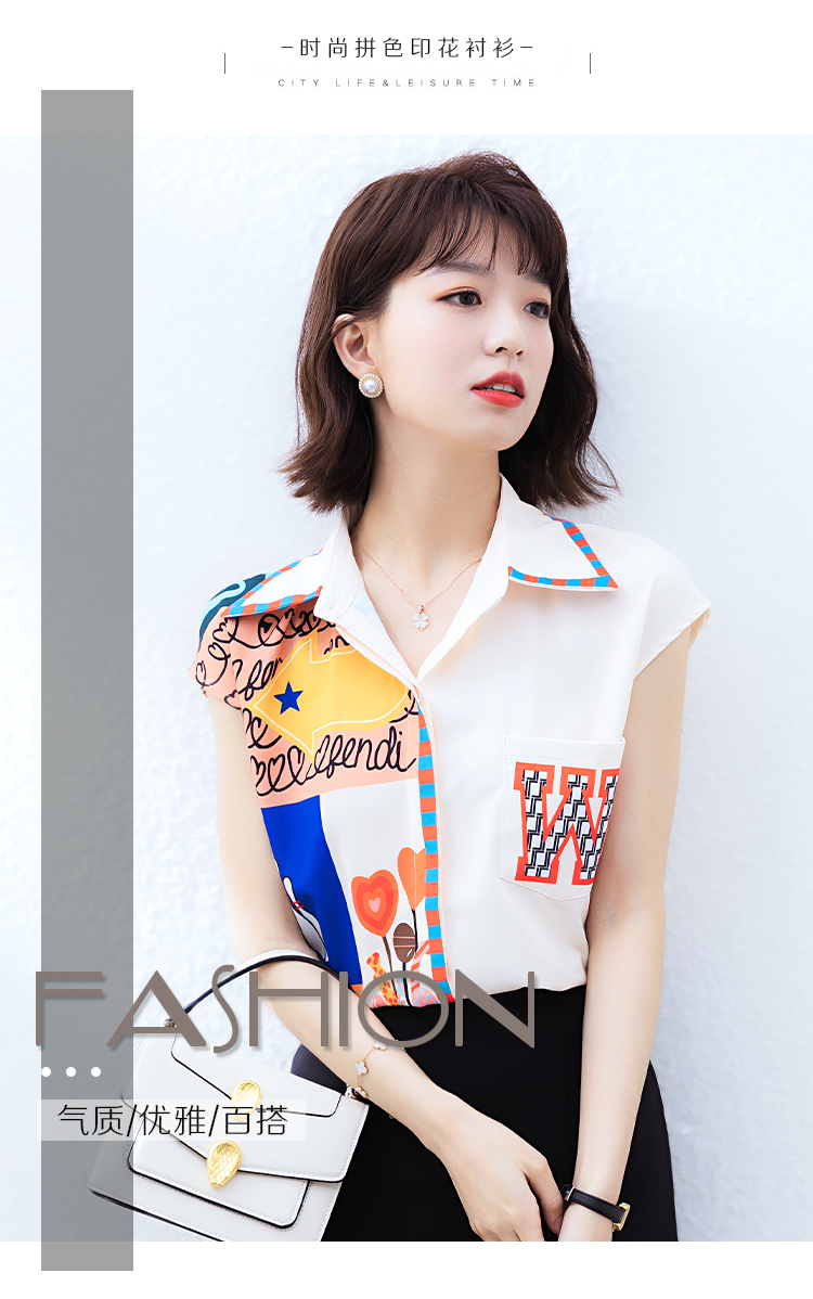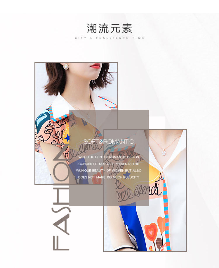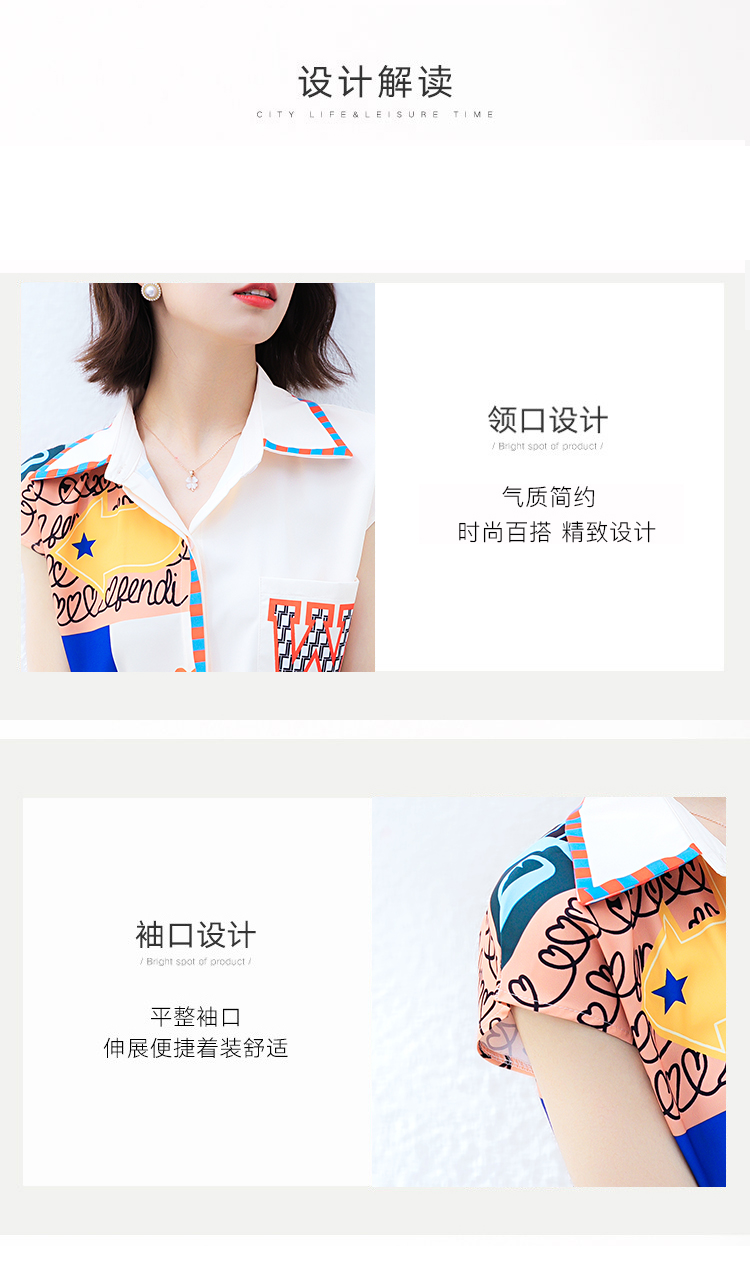 实拍时尚花色衬衫拼色缎面桑蚕丝气质短袖设计感小众雪纺衫女