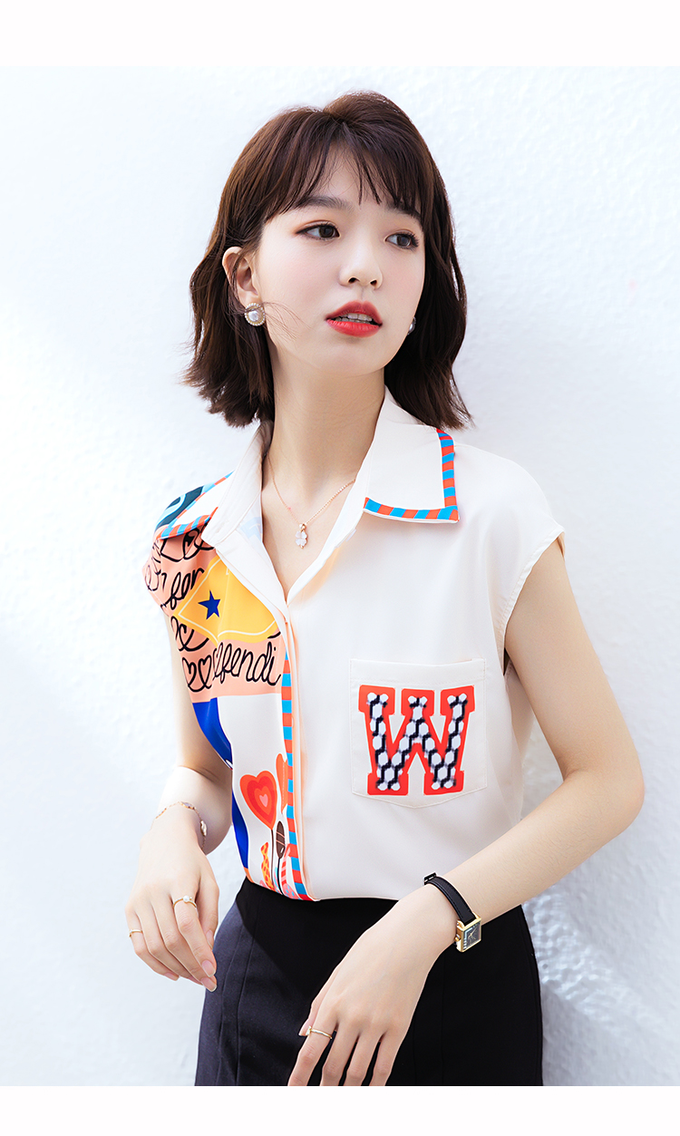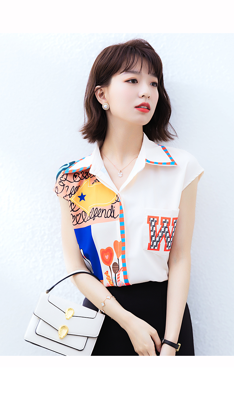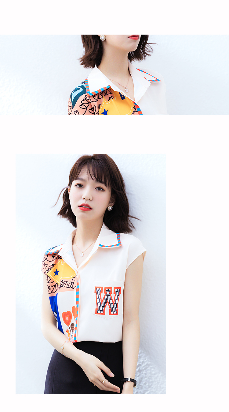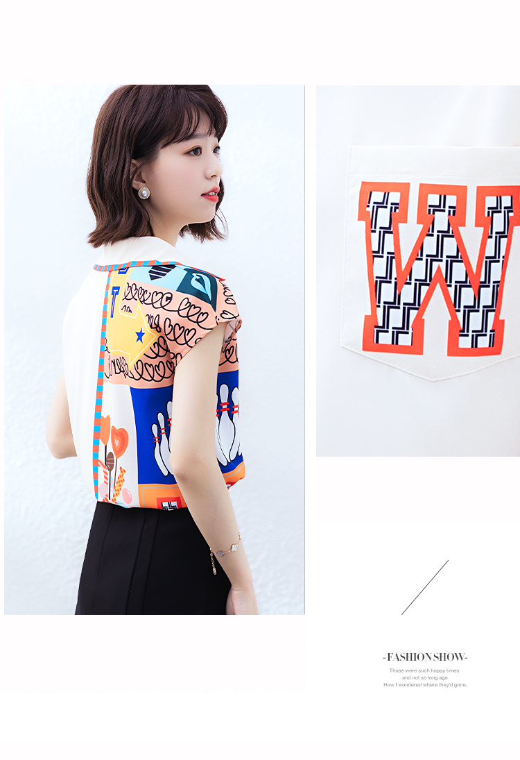 实拍时尚花色衬衫拼色缎面桑蚕丝气质短袖设计感小众雪纺衫女