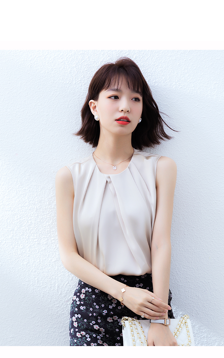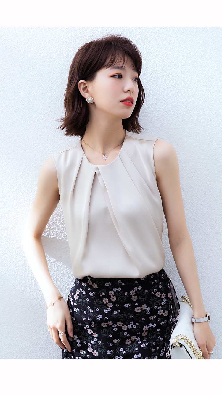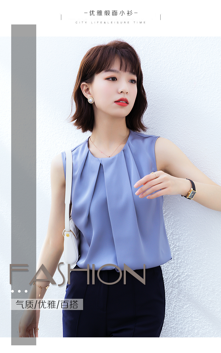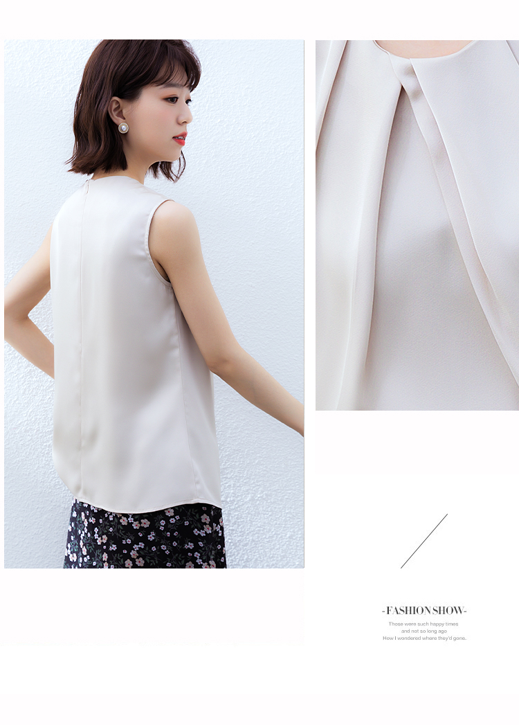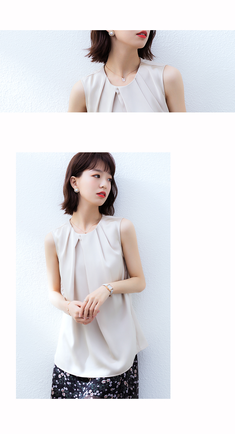 实拍设计感西装圆领无袖衬衫女夏季2021新款宽松内搭缎面背心