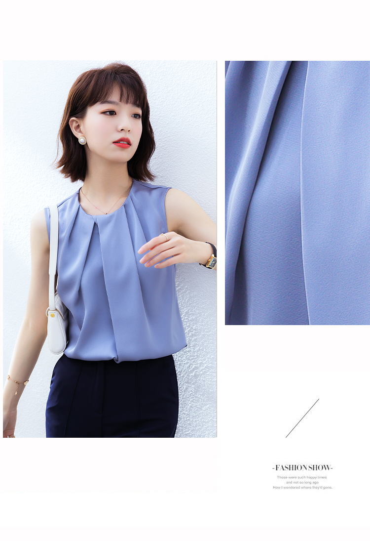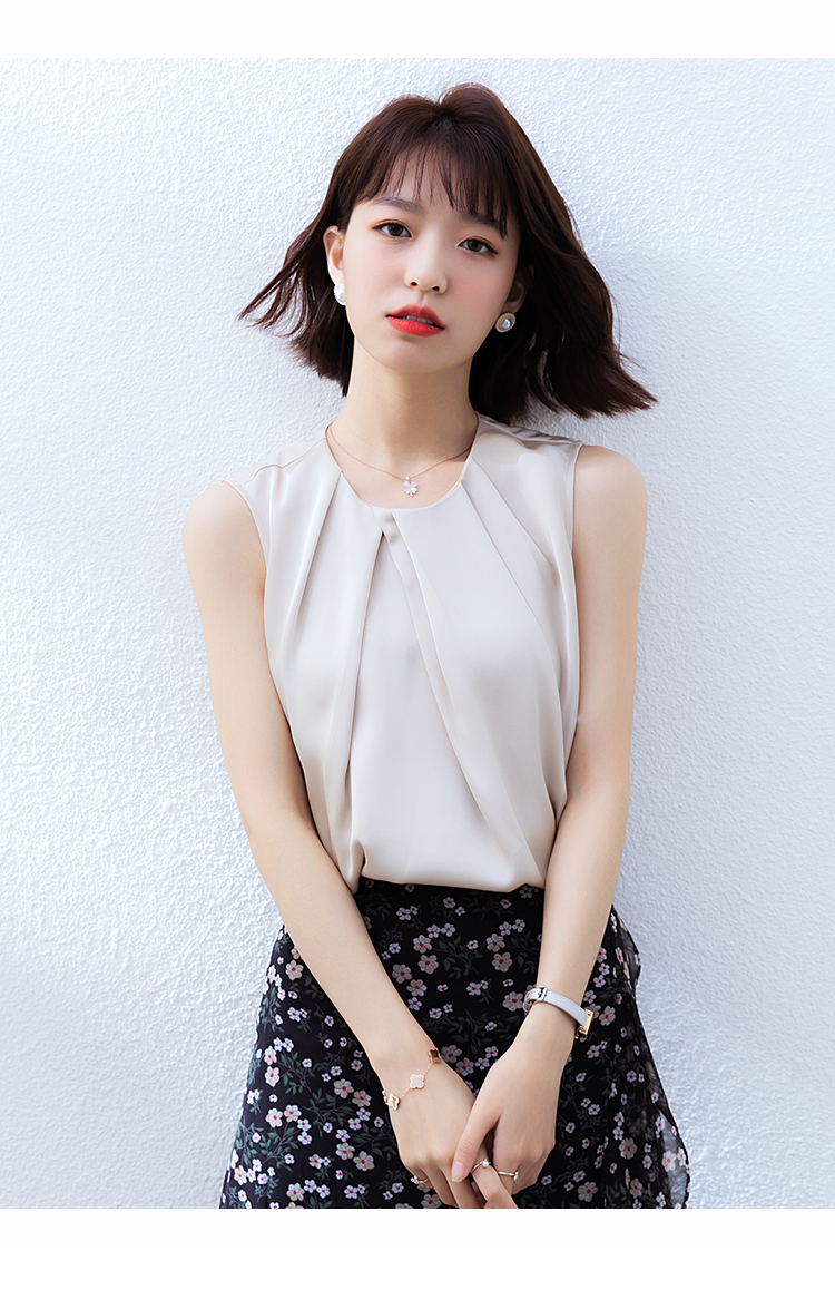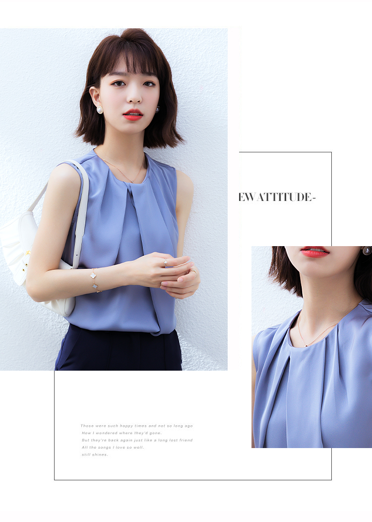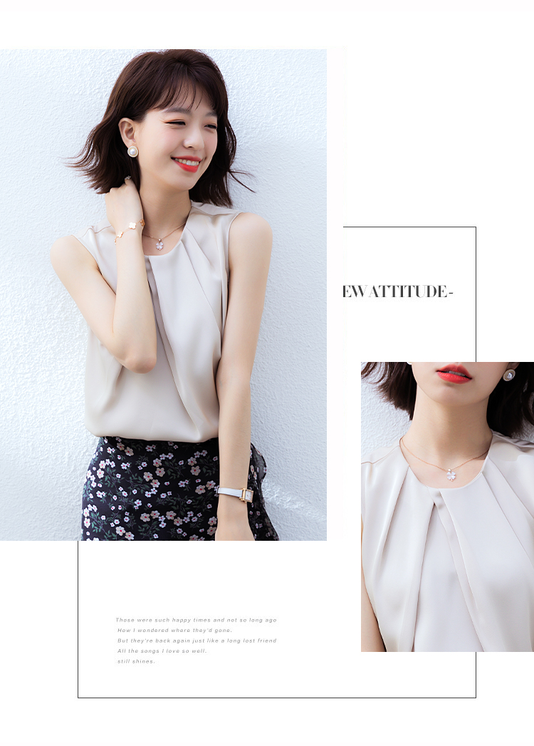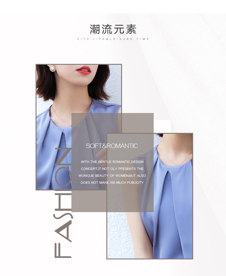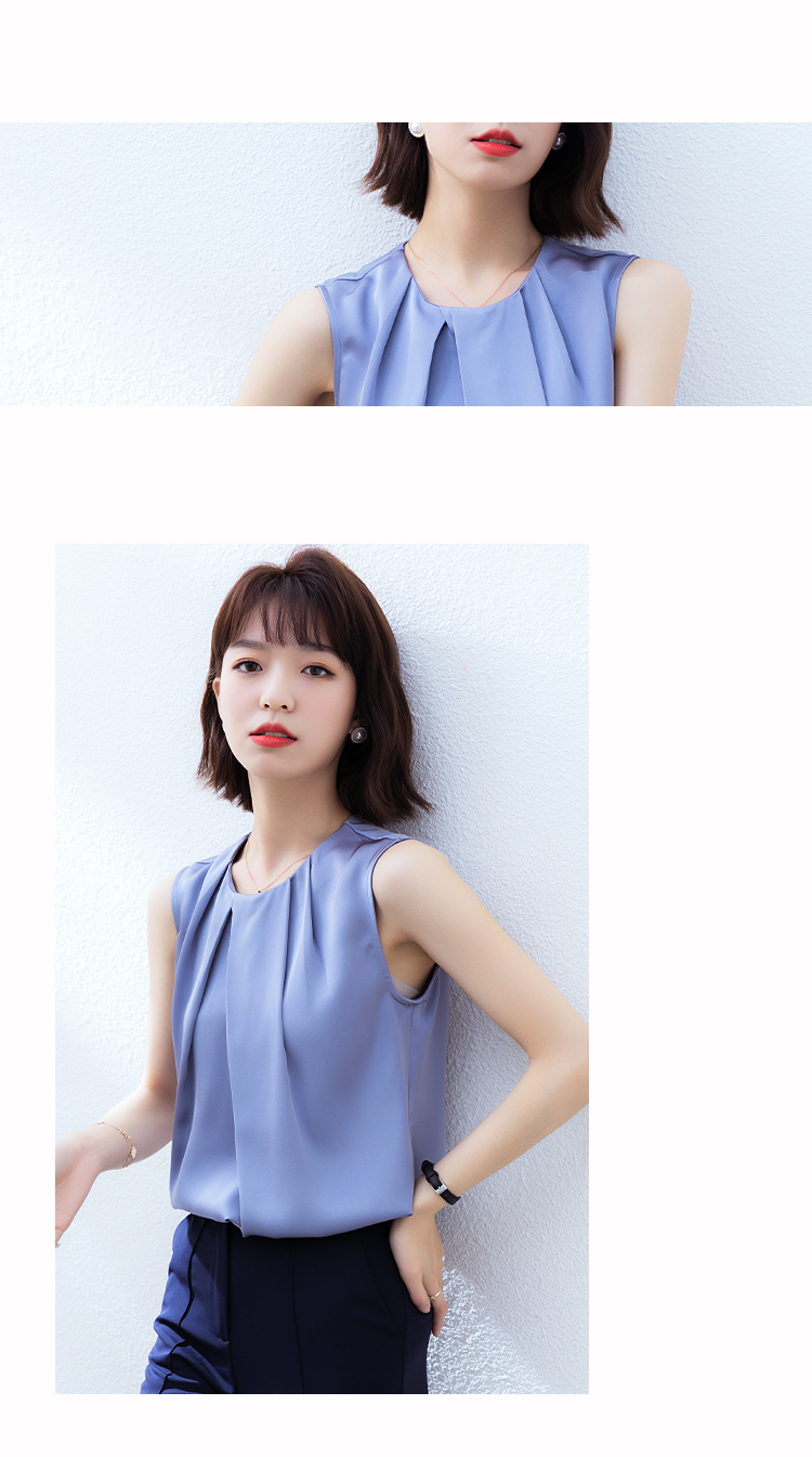 实拍设计感西装圆领无袖衬衫女夏季2021新款宽松内搭缎面背心