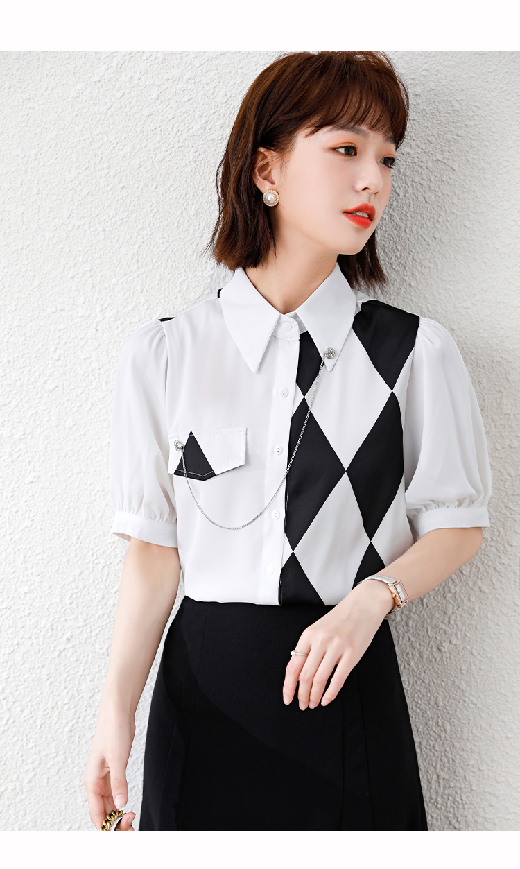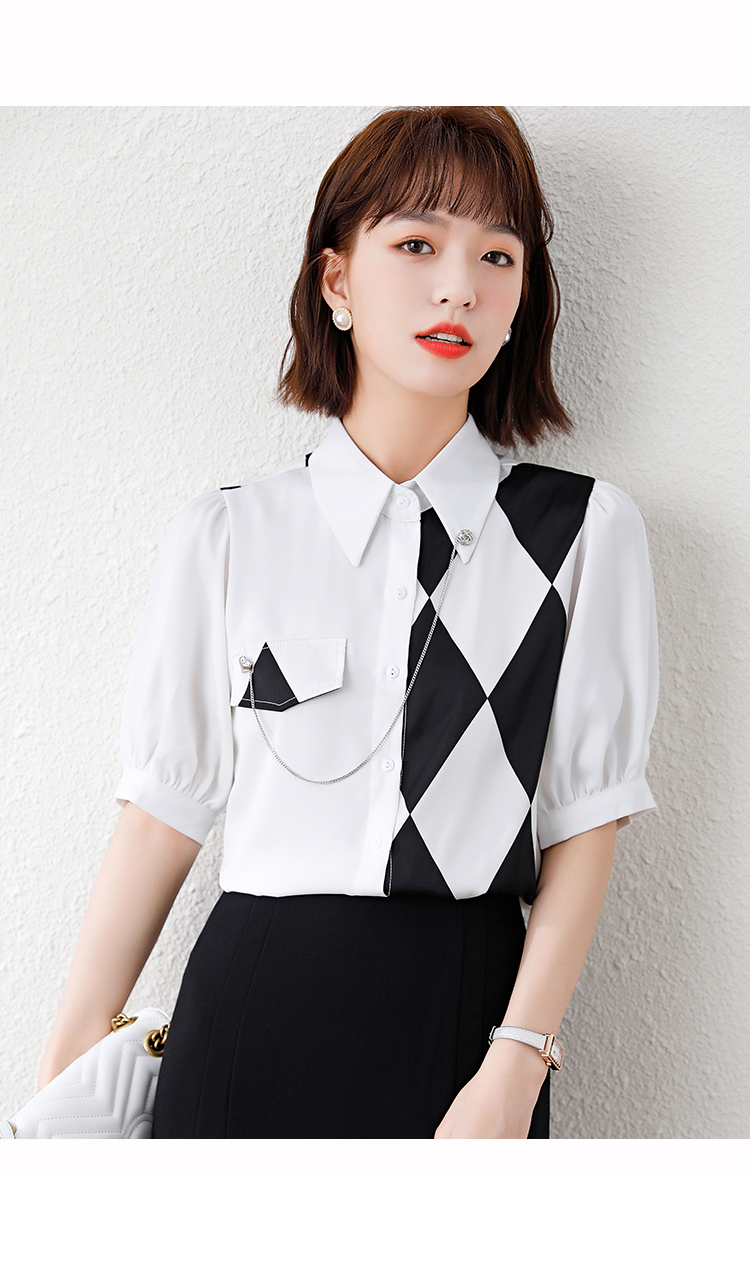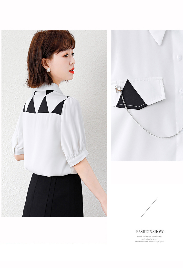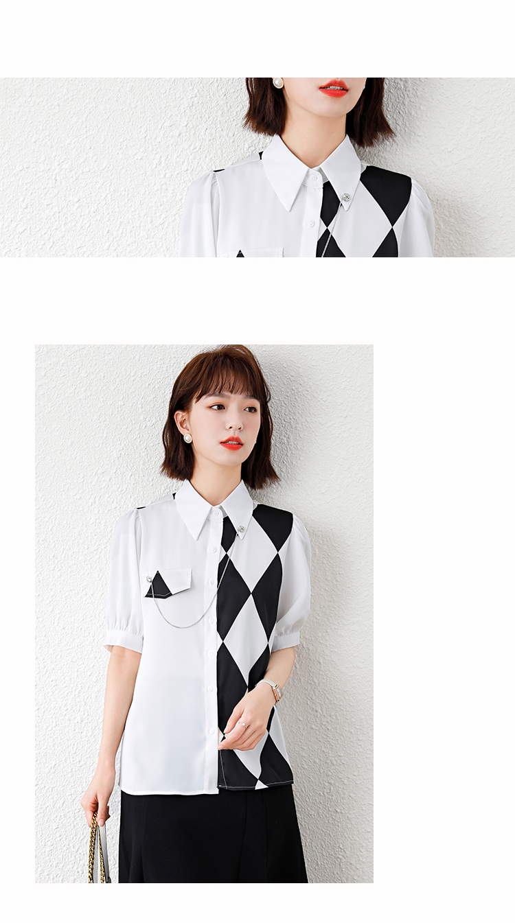 实拍白色真丝衬衫女气质拼接复古花色装饰设计感小众雪纺衫