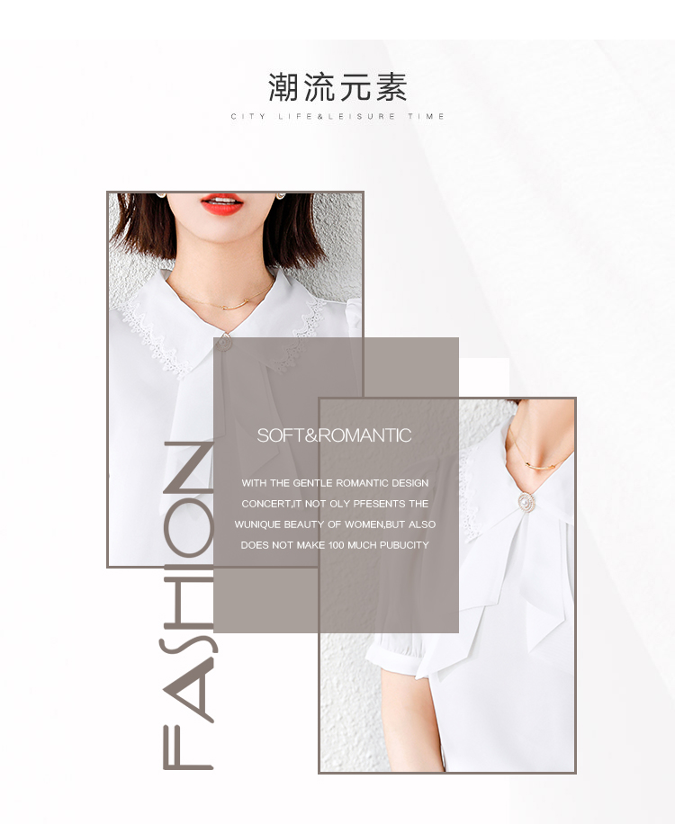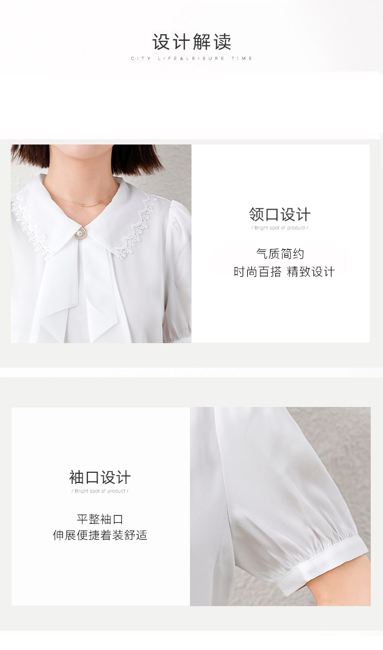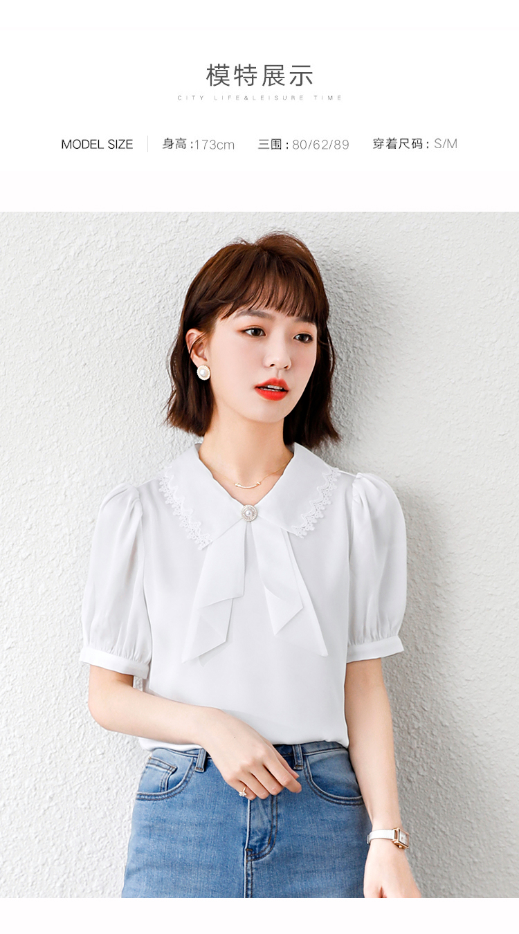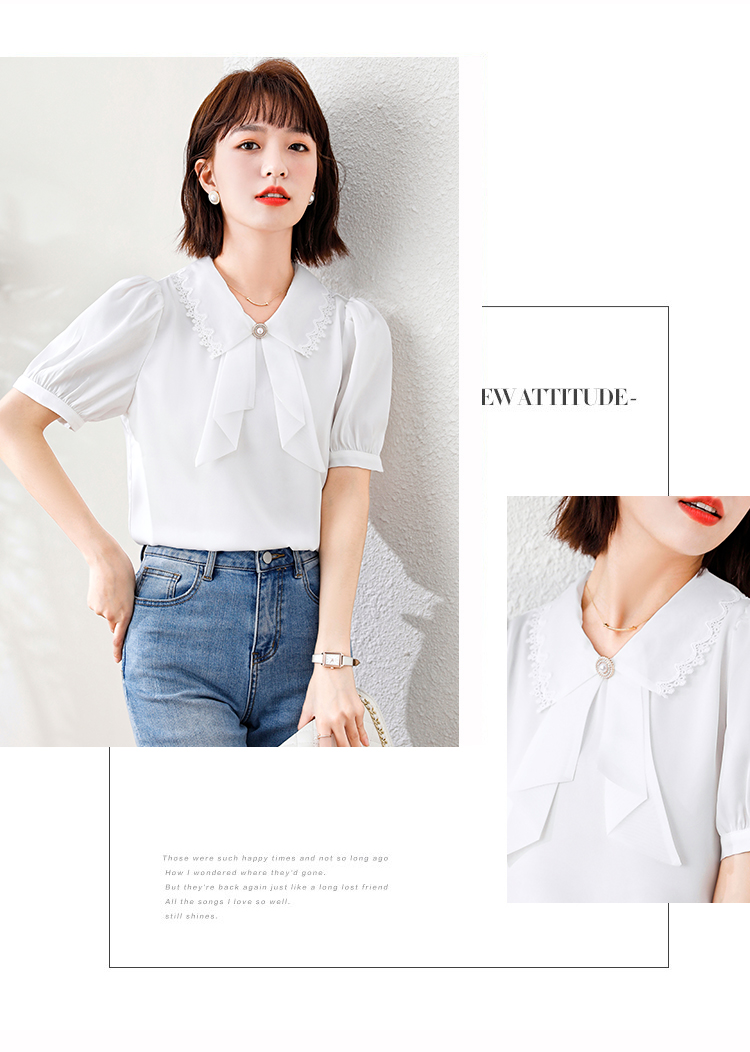 实拍雪纺短袖女2021夏新款法式蕾丝拼接领结泡泡袖设计感上衣