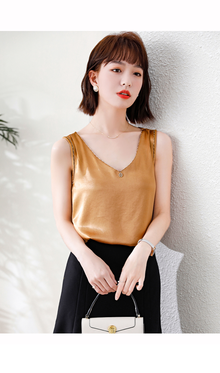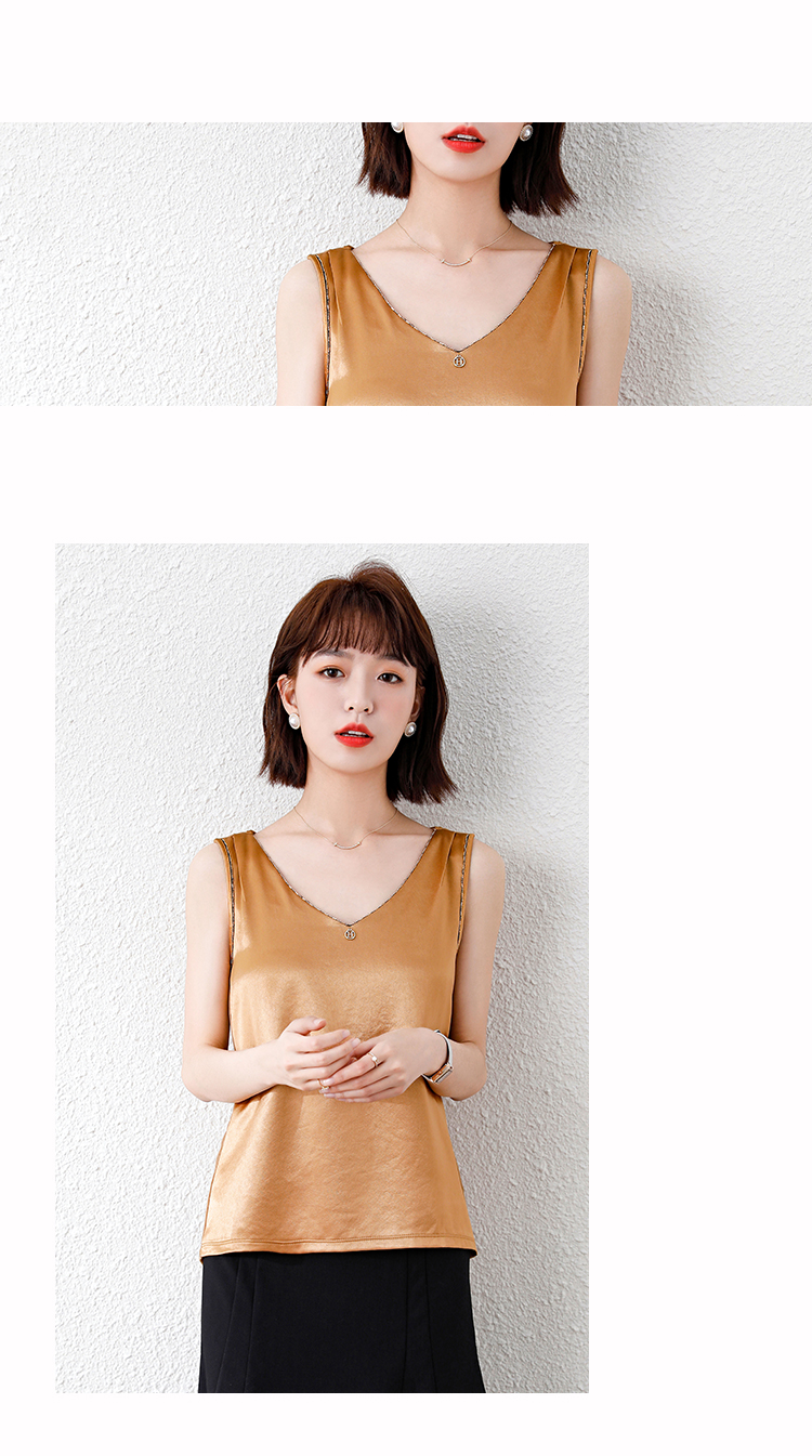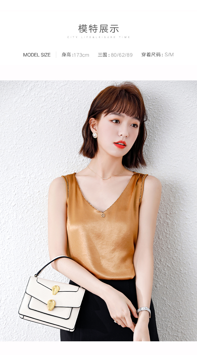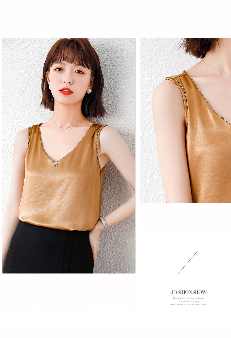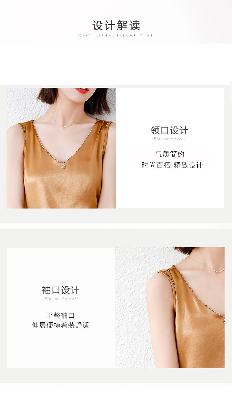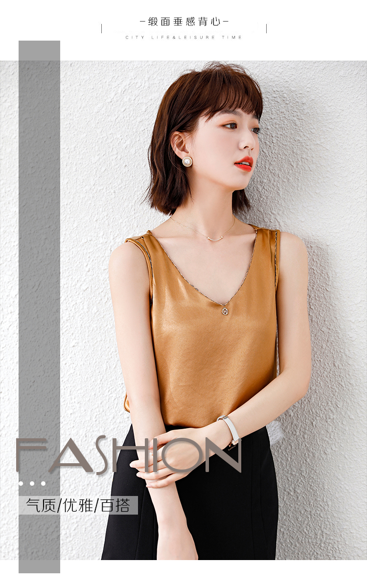 实拍2021新款纯色缎面宽松无袖背心女夏V领西装内搭打底吊带