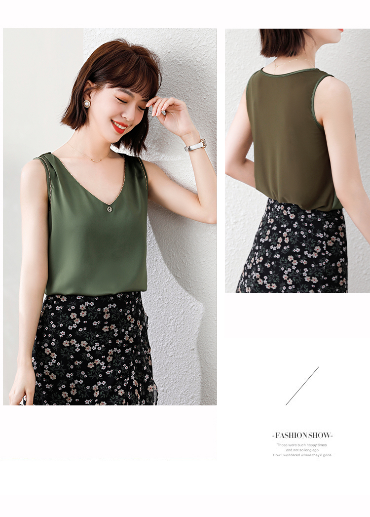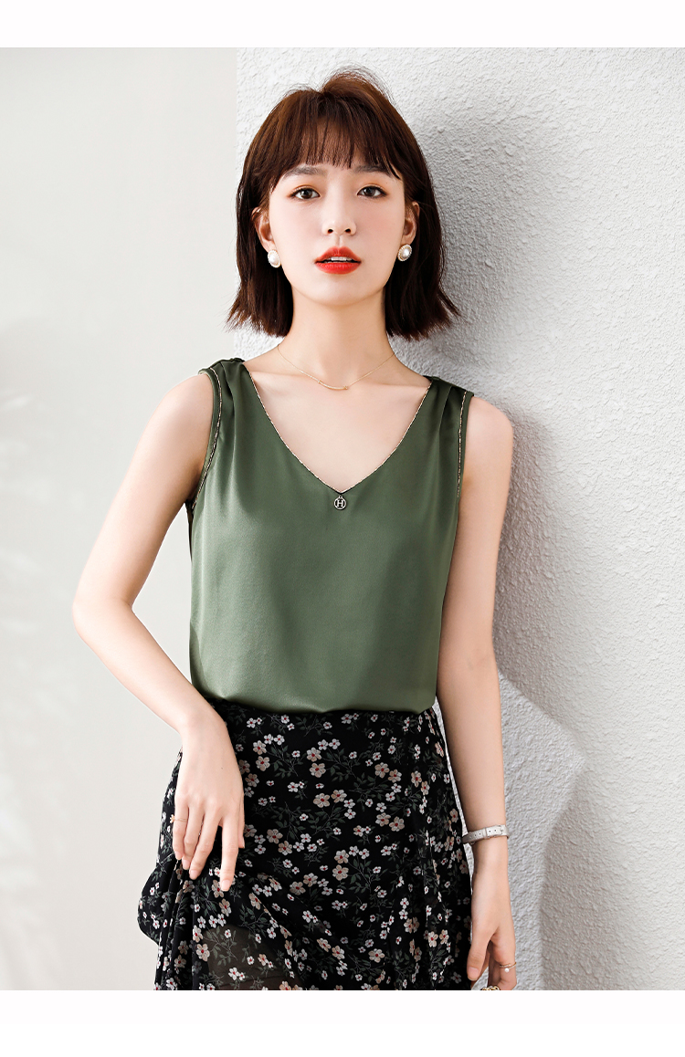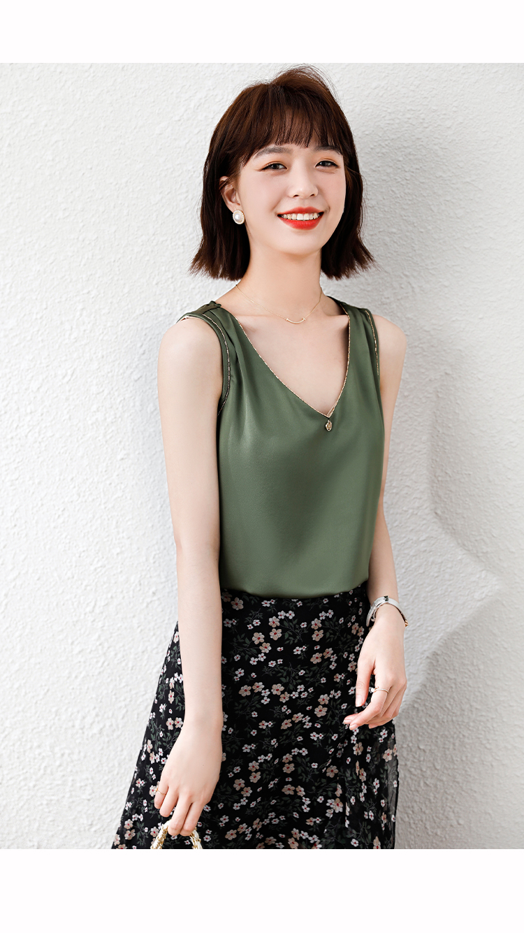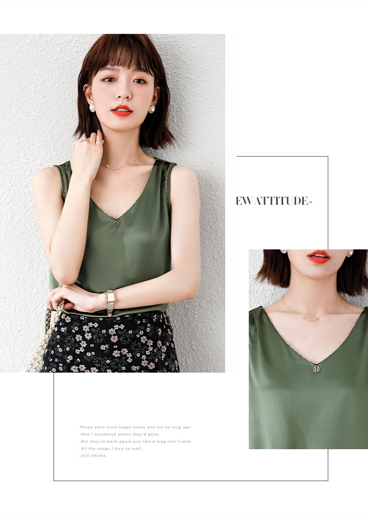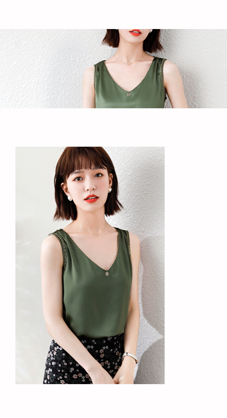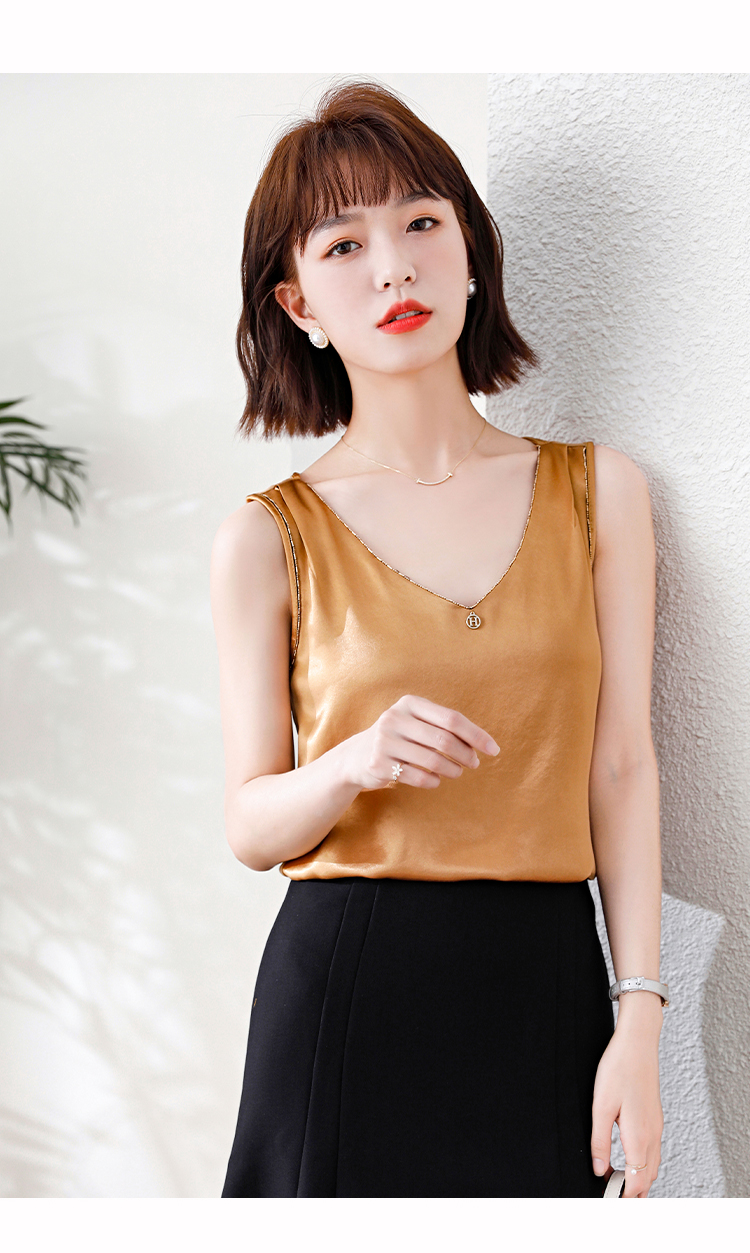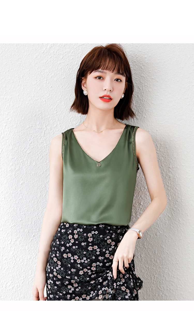 实拍2021新款纯色缎面宽松无袖背心女夏V领西装内搭打底吊带