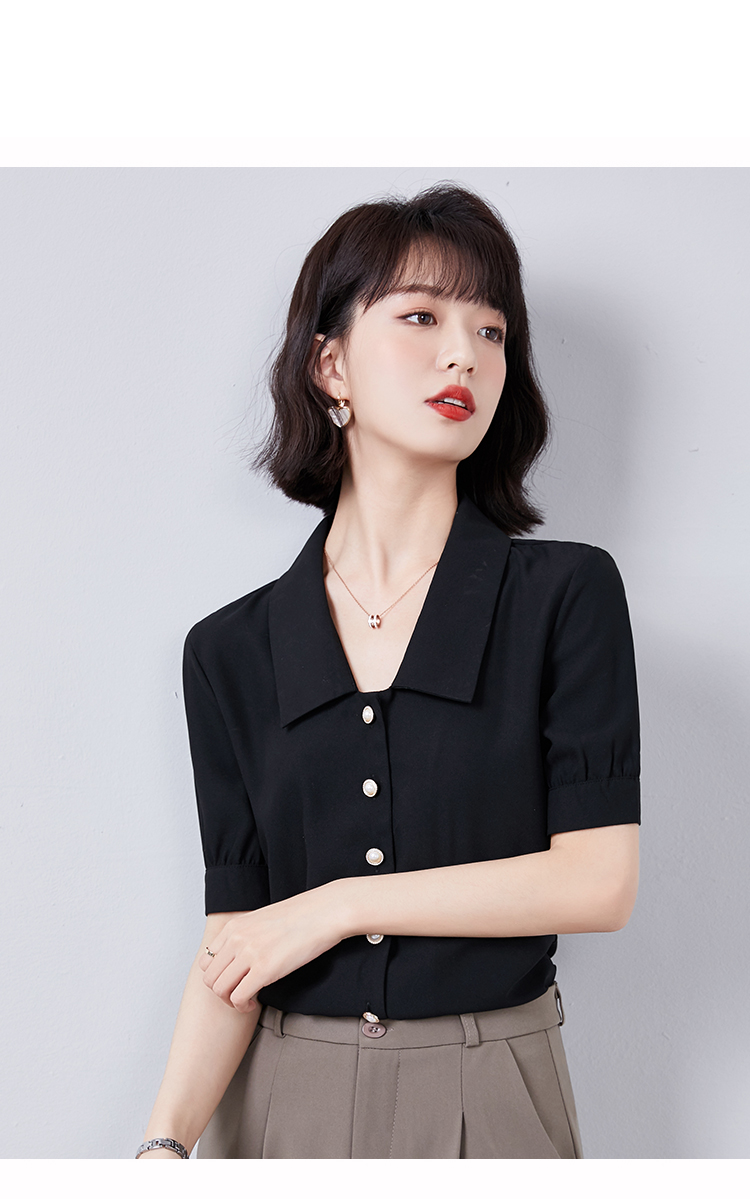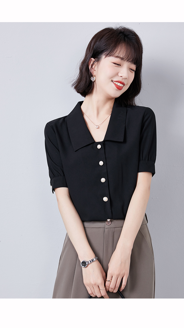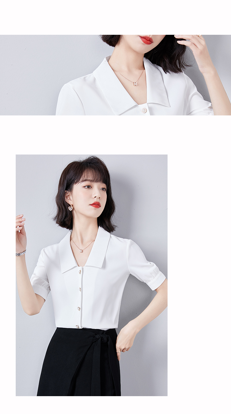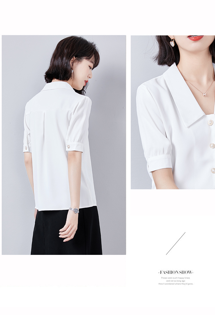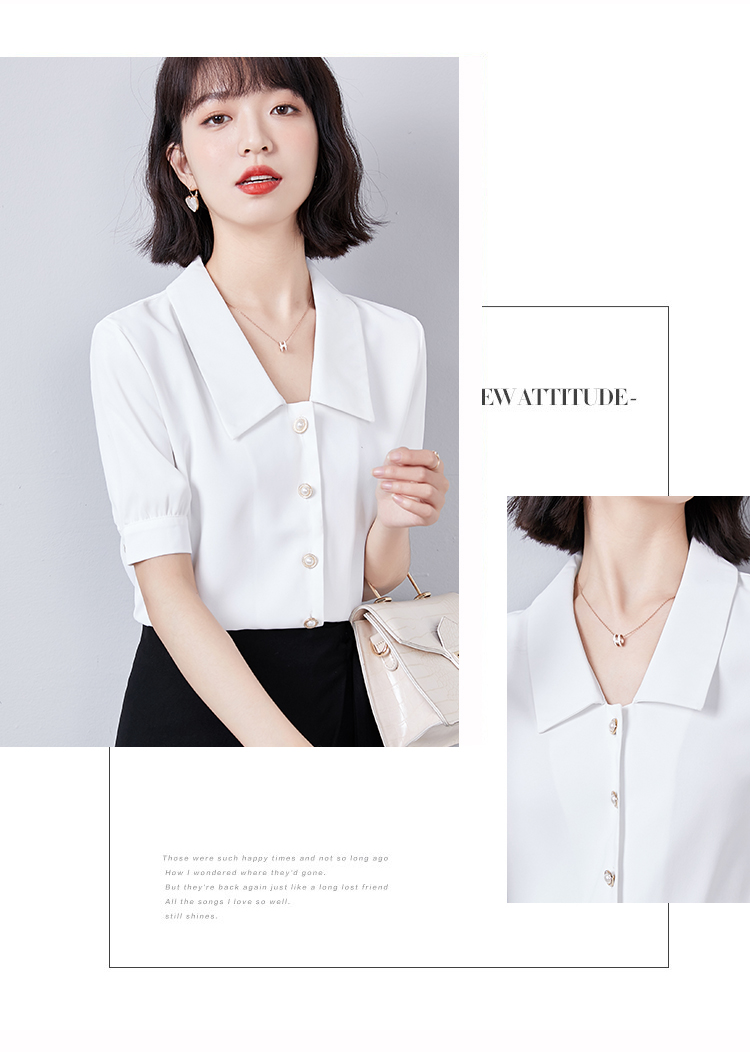 实拍2021夏装新款短袖纯色衬衫韩版缎面法式温柔甜美小众