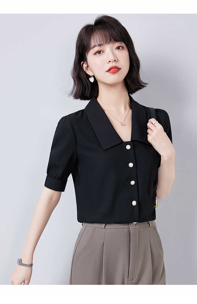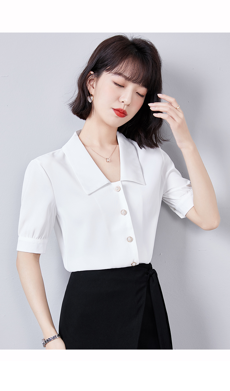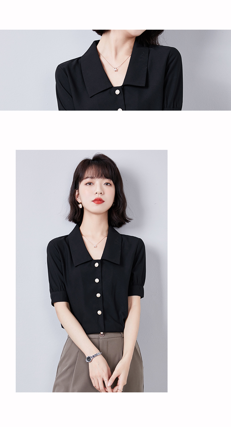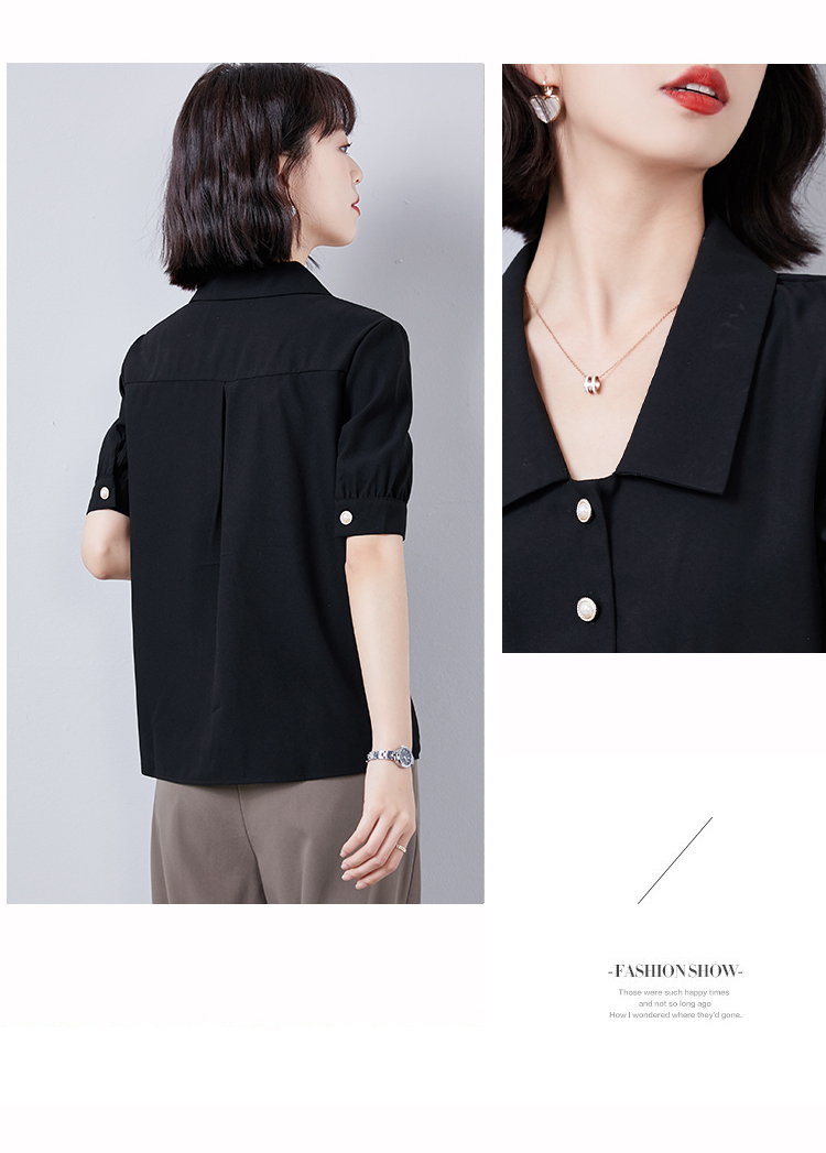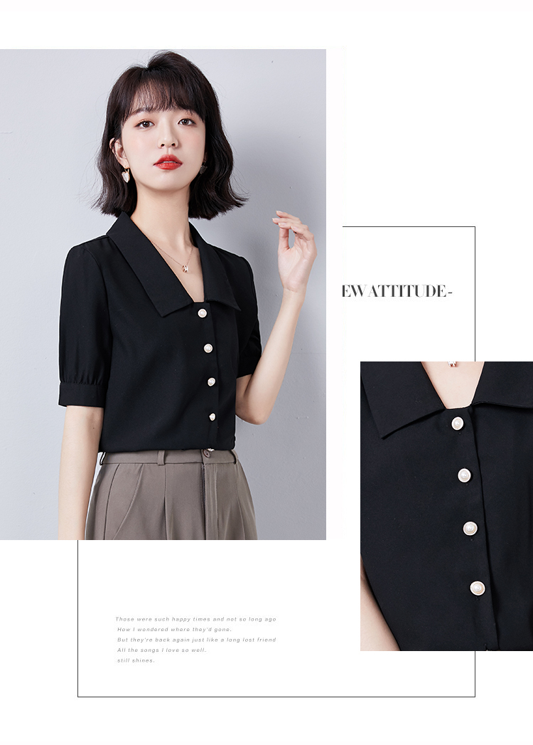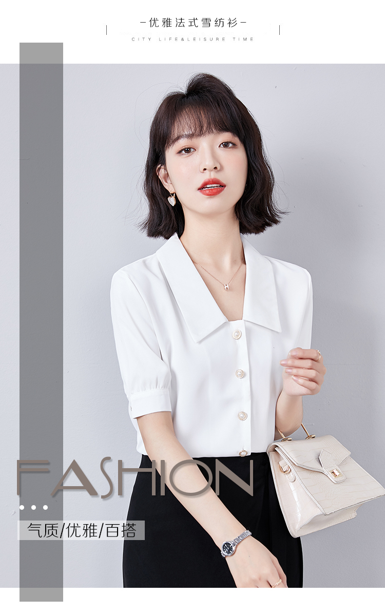 实拍2021夏装新款短袖纯色衬衫韩版缎面法式温柔甜美小众