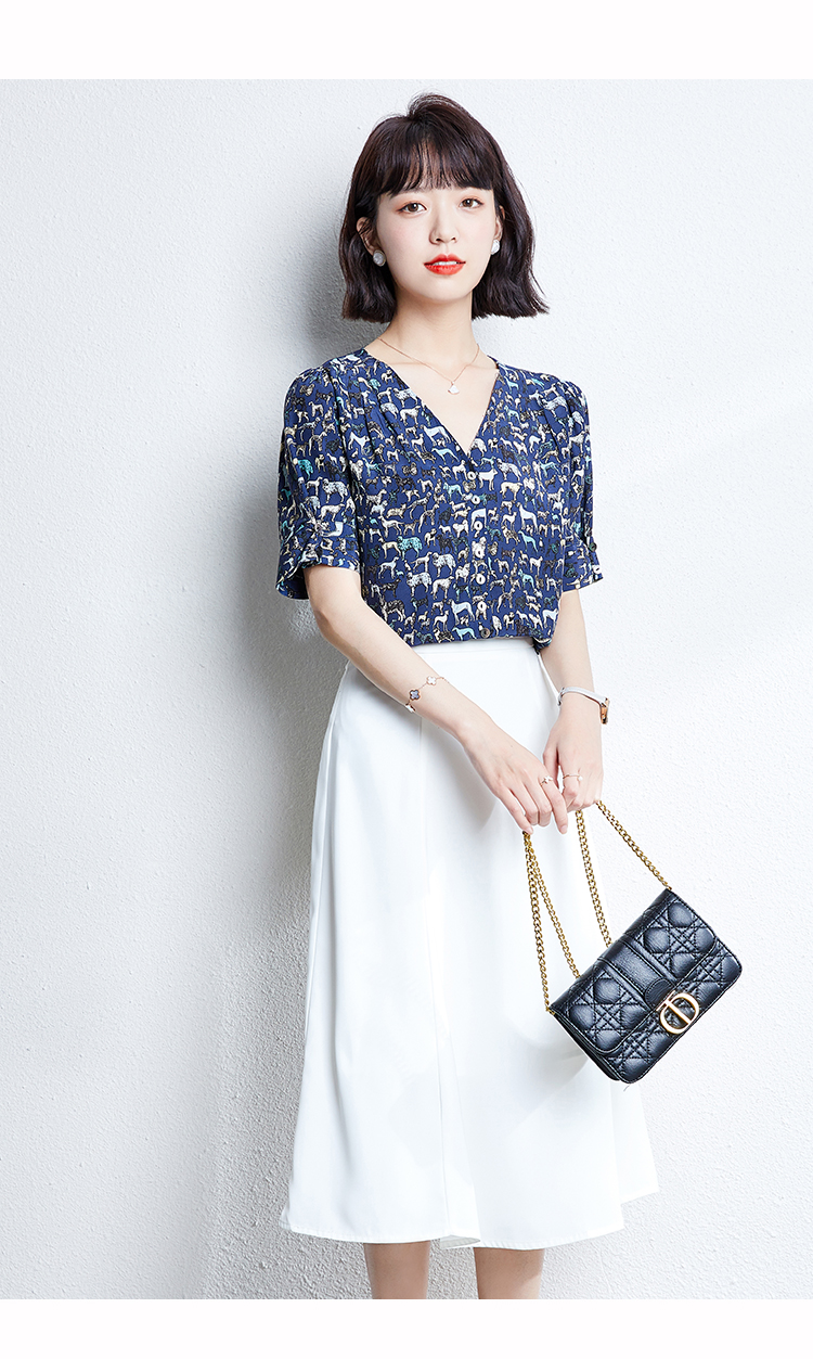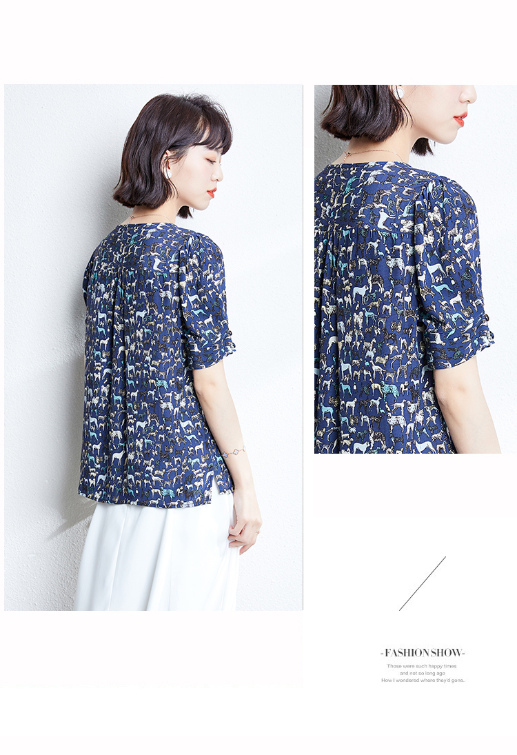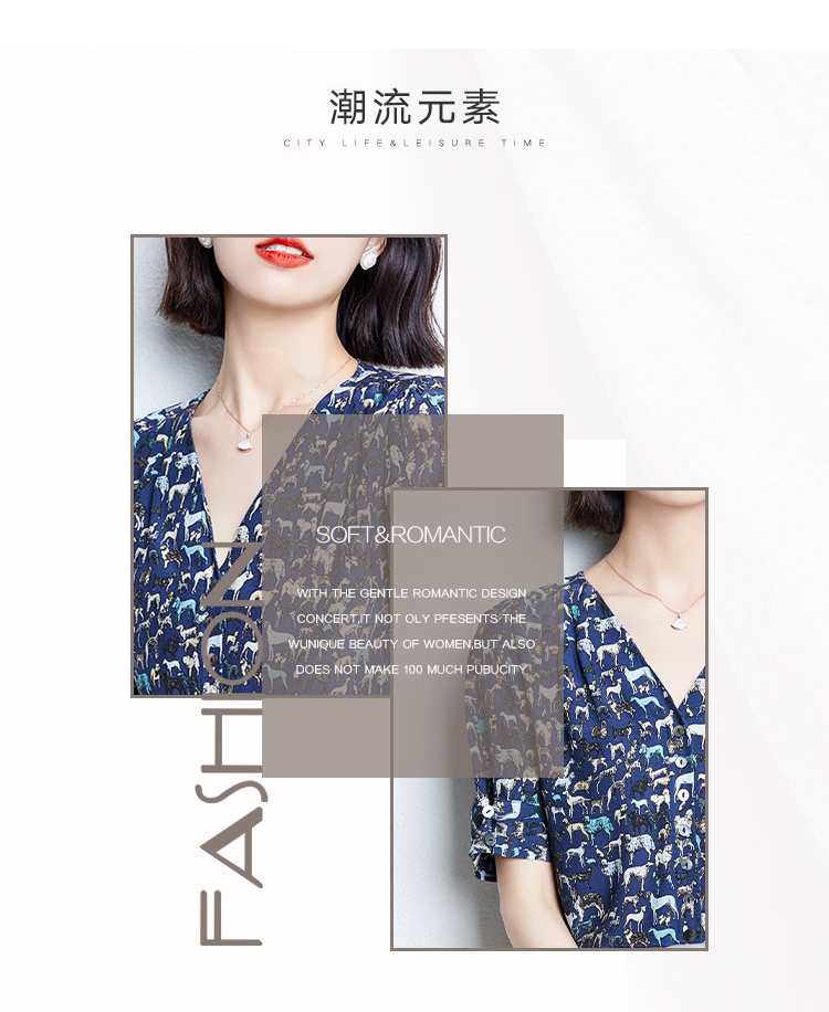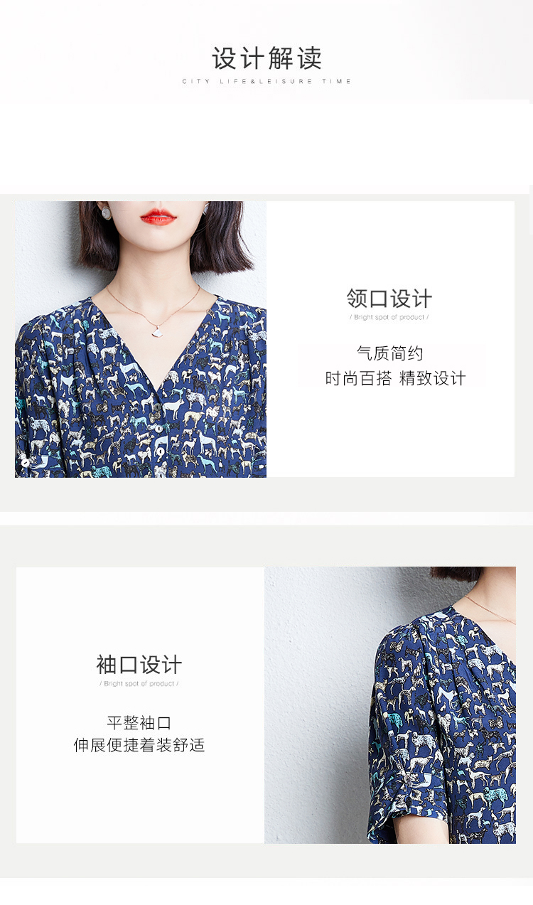 实拍法式复古V领动物印花雪纺衫2021夏装新款小众设计感衬衫