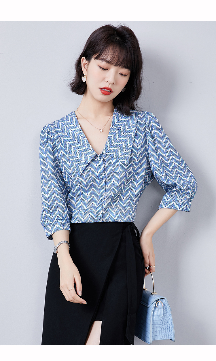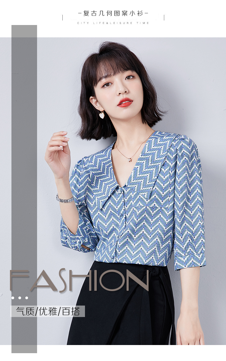 实拍2021夏装新款花色上衣时尚娃娃领半袖宽松百搭设计感小众
