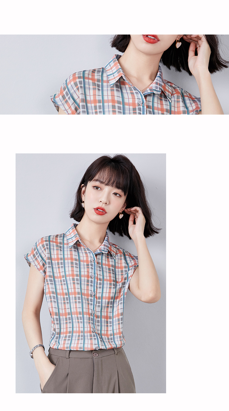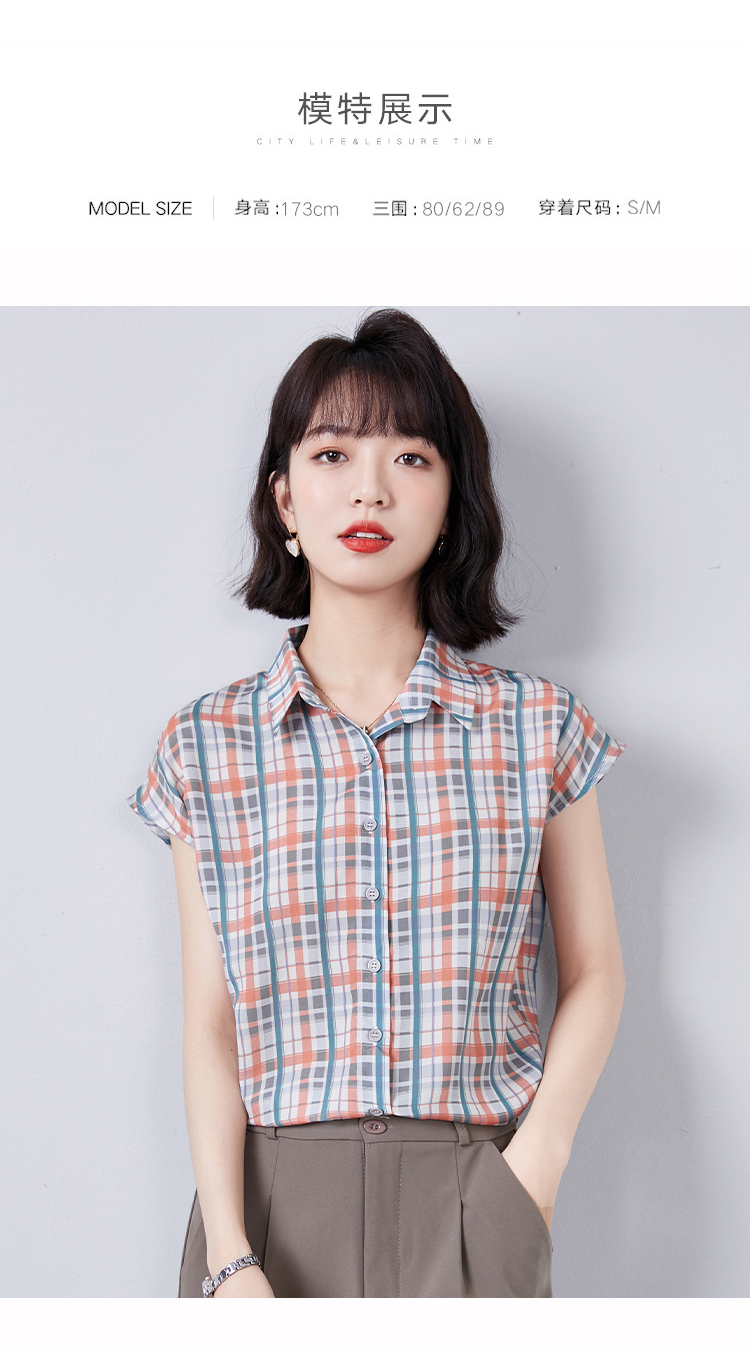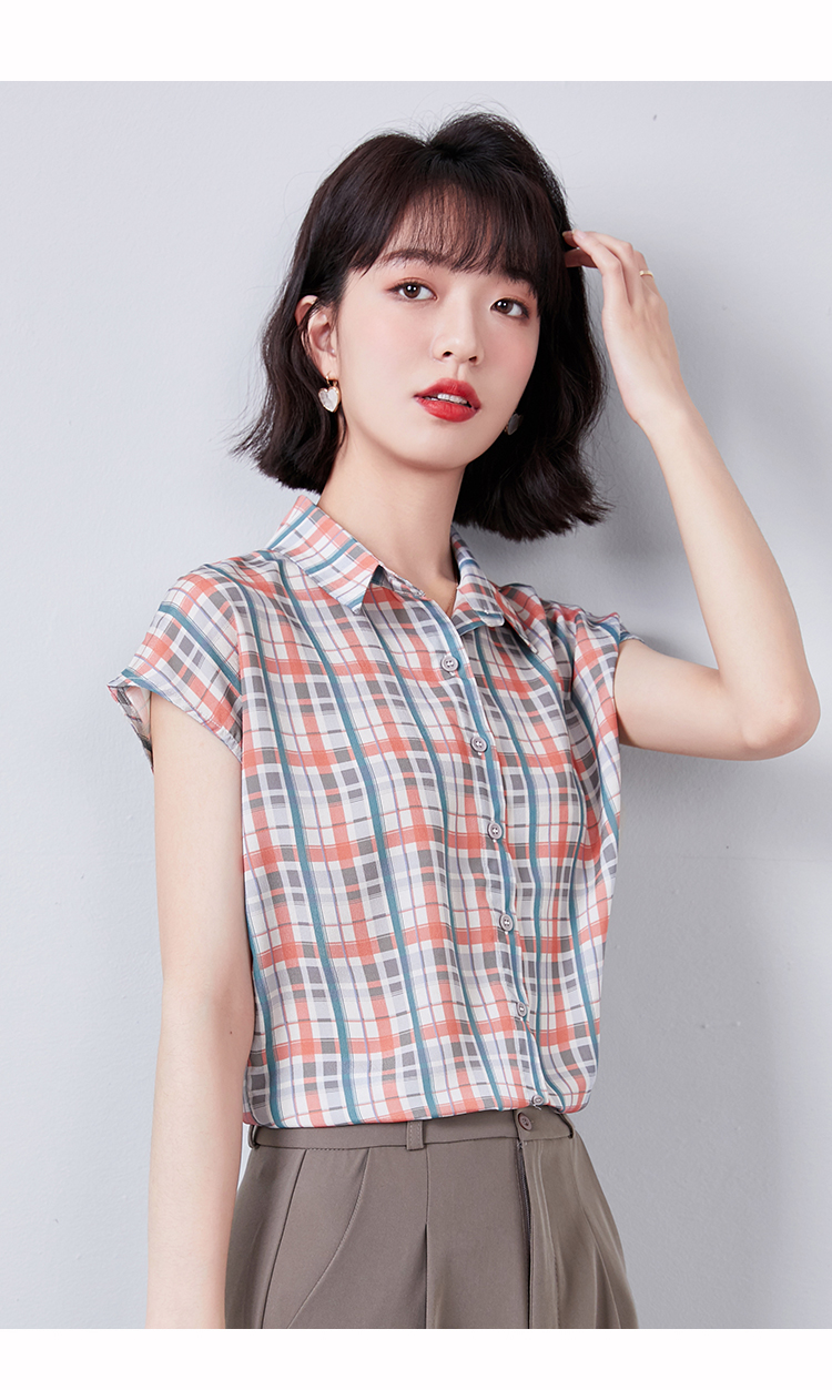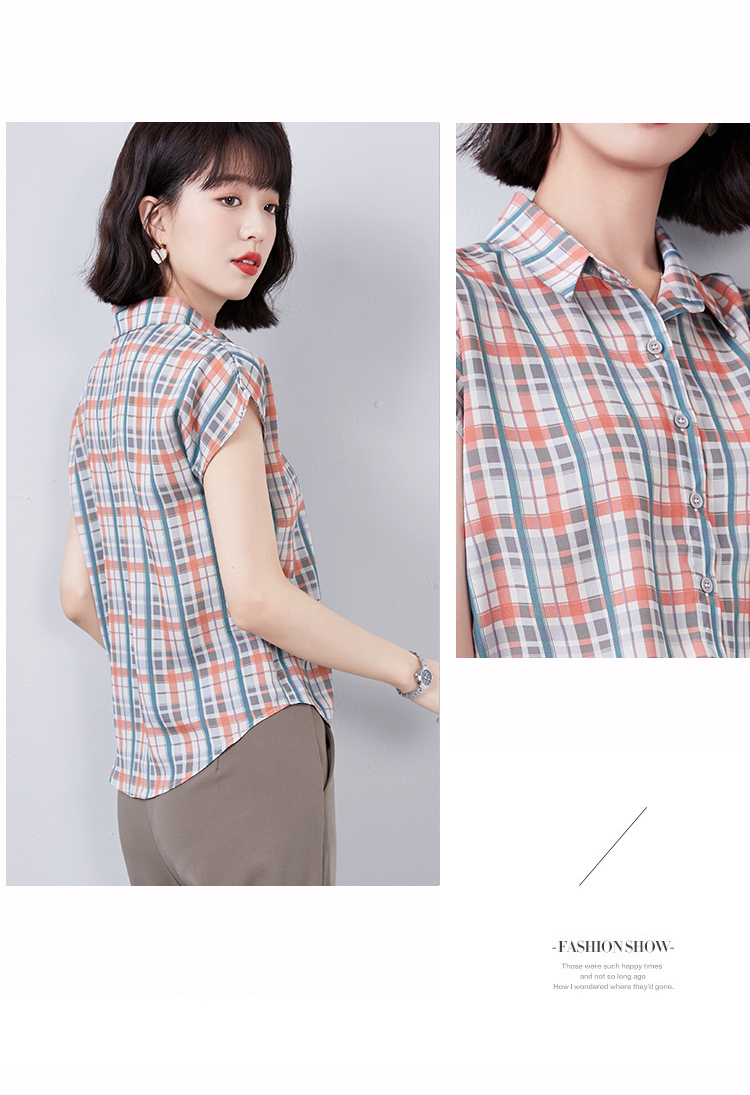 实拍衬衫女短袖夏季2021新款复古港味格子条纹百搭雪纺衫上衣