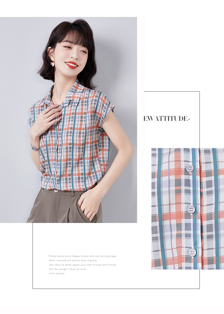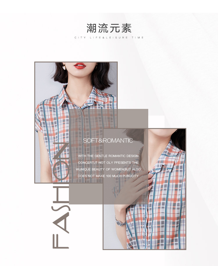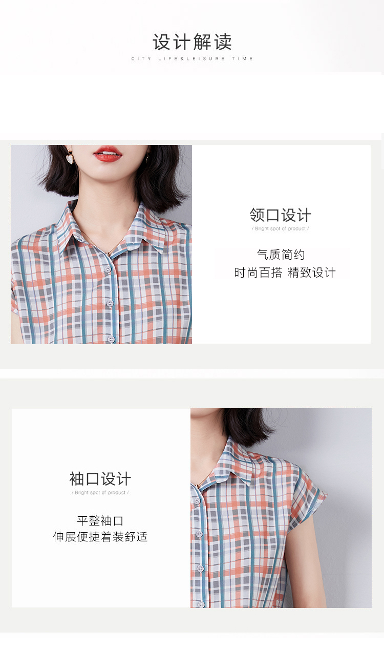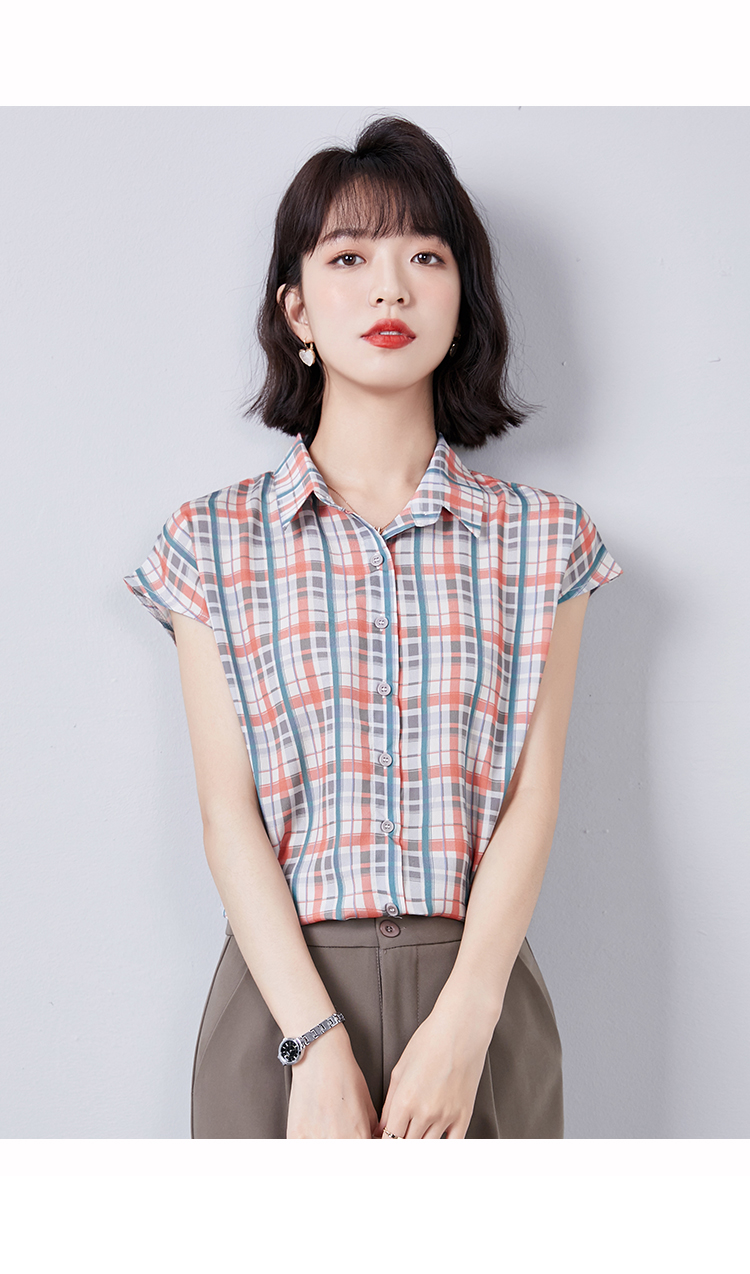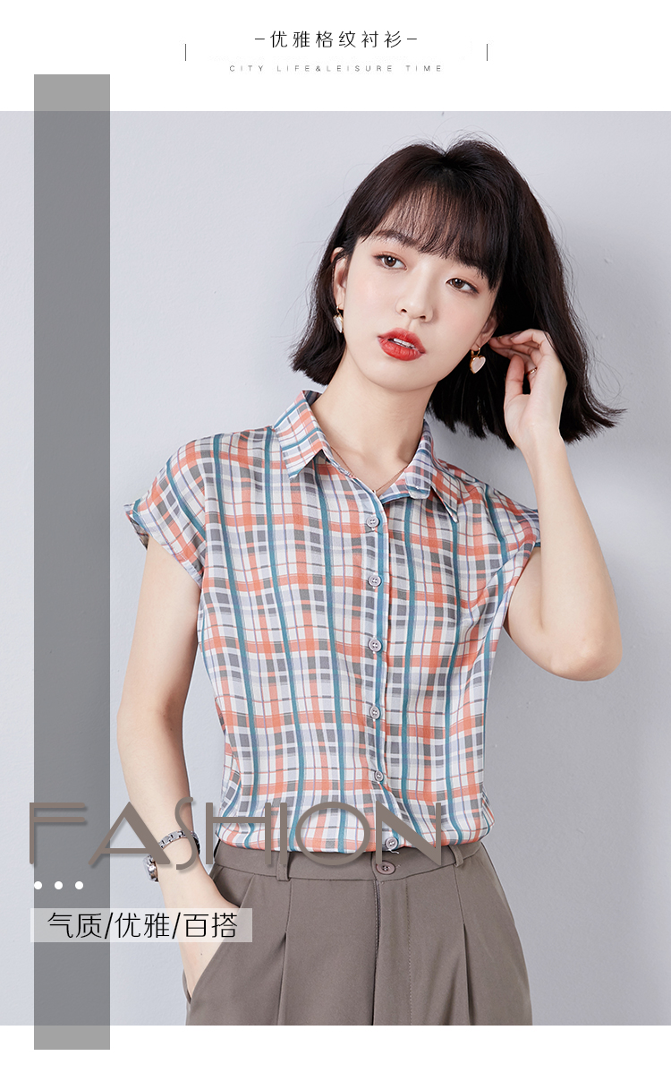 实拍衬衫女短袖夏季2021新款复古港味格子条纹百搭雪纺衫上衣