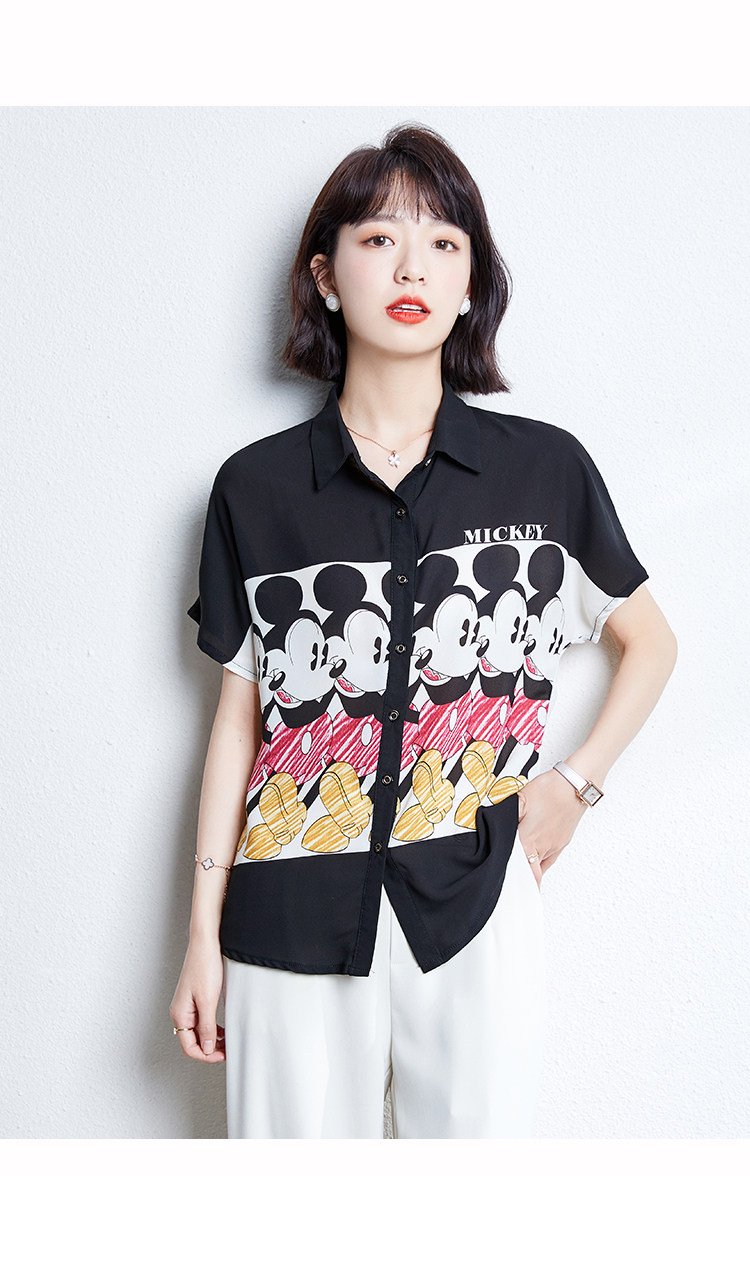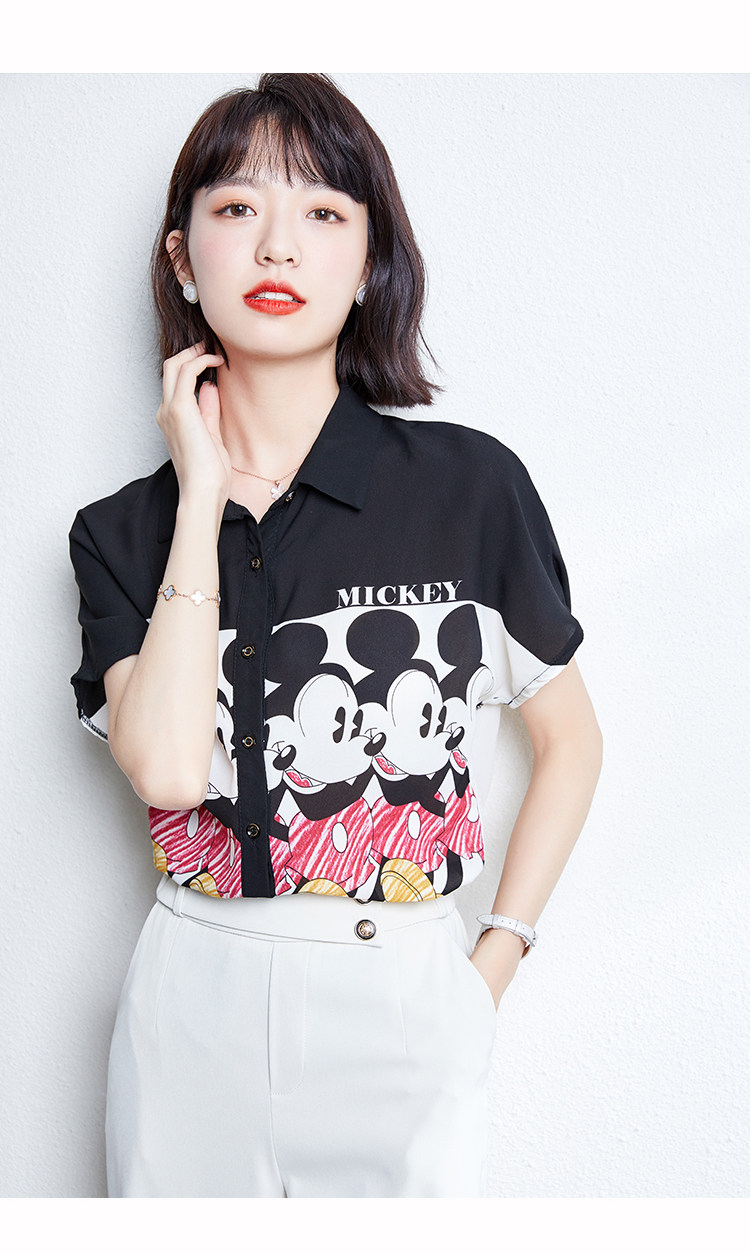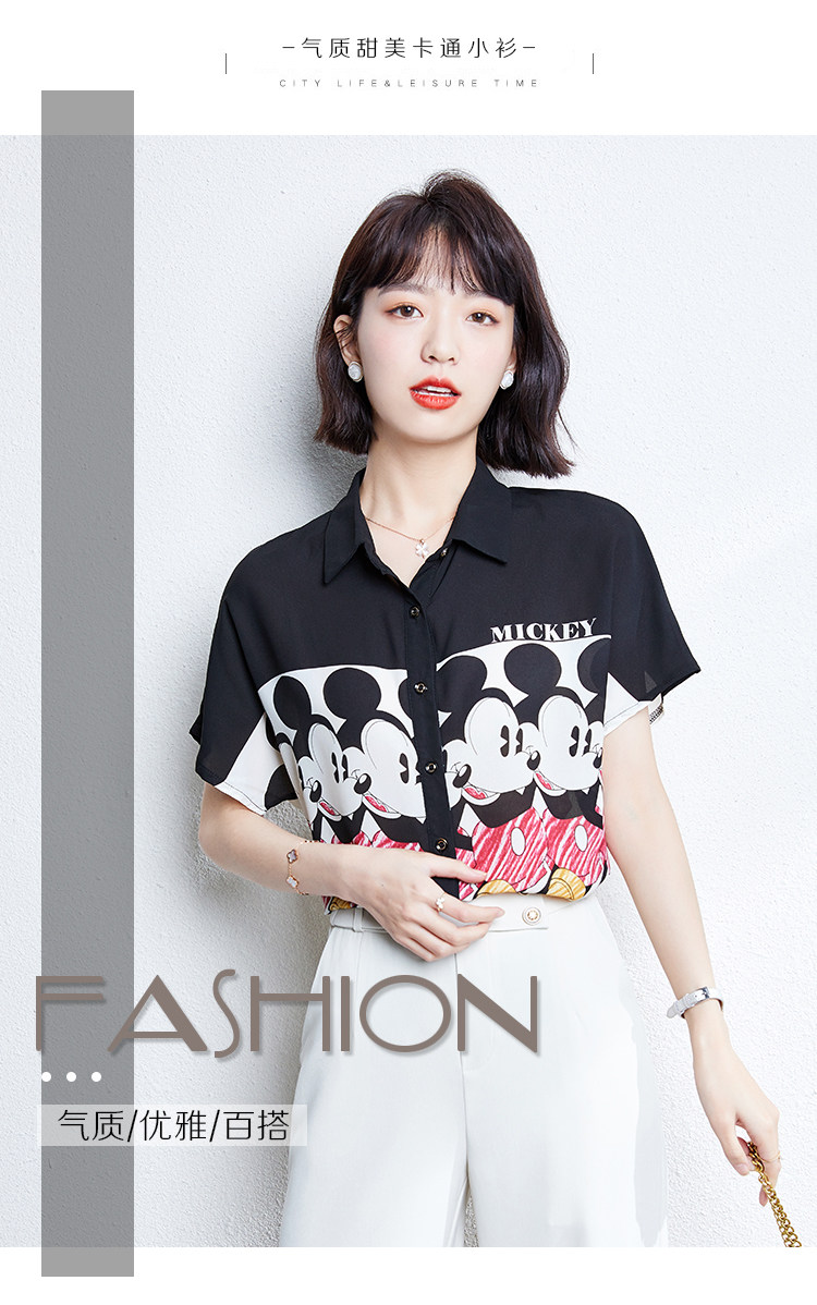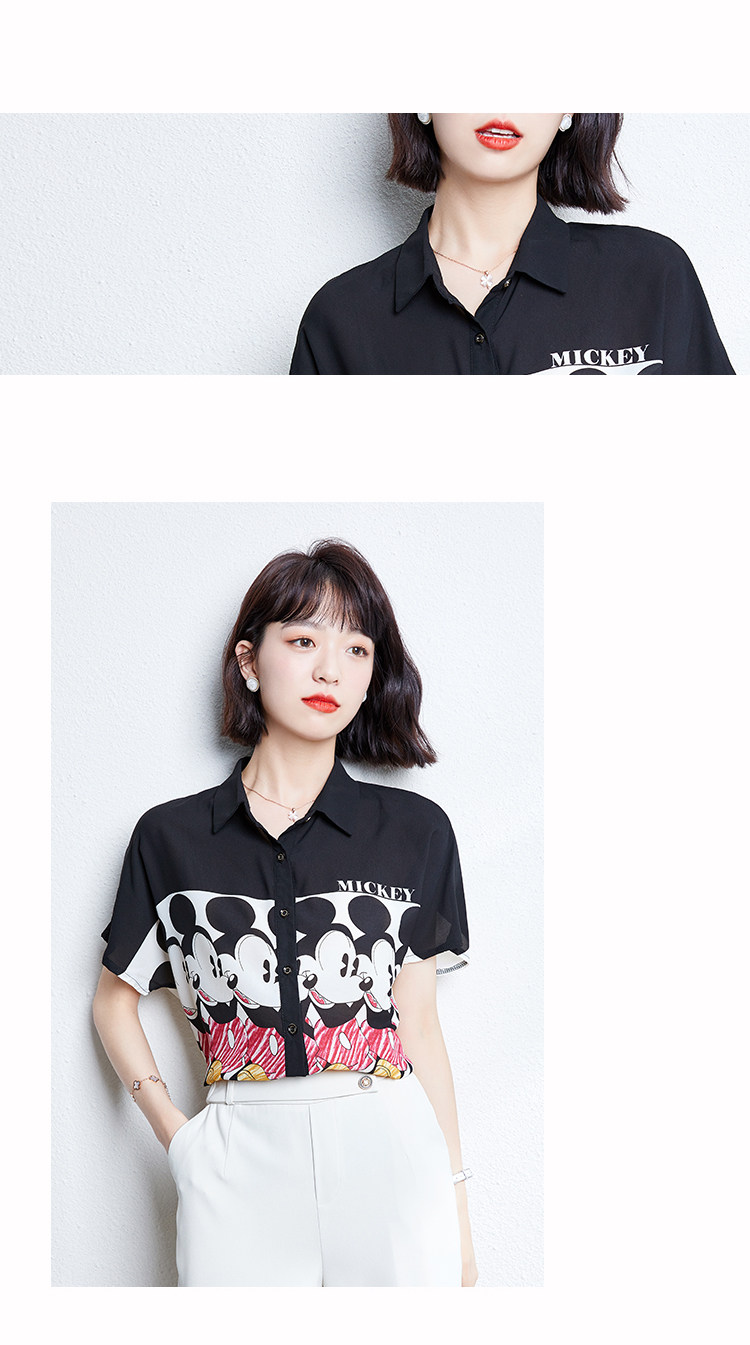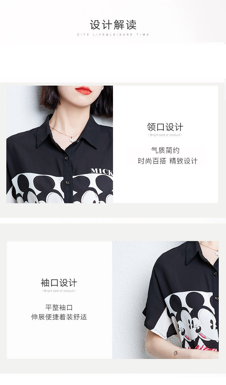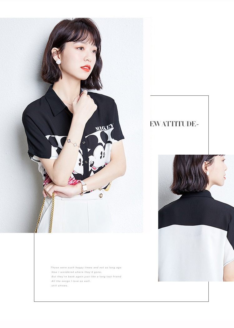 实拍时尚复古黑白拼接欧洲站印花雪纺衫韩版开衫百搭衬衣小衫