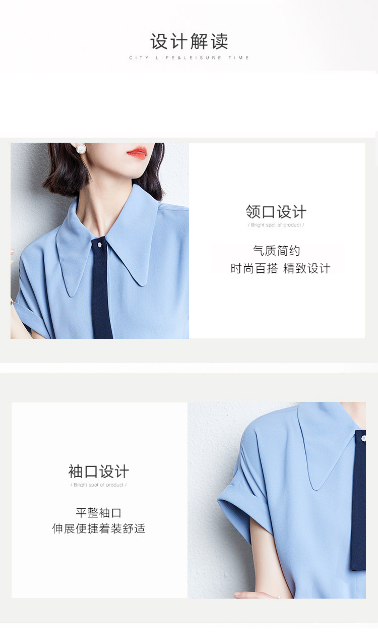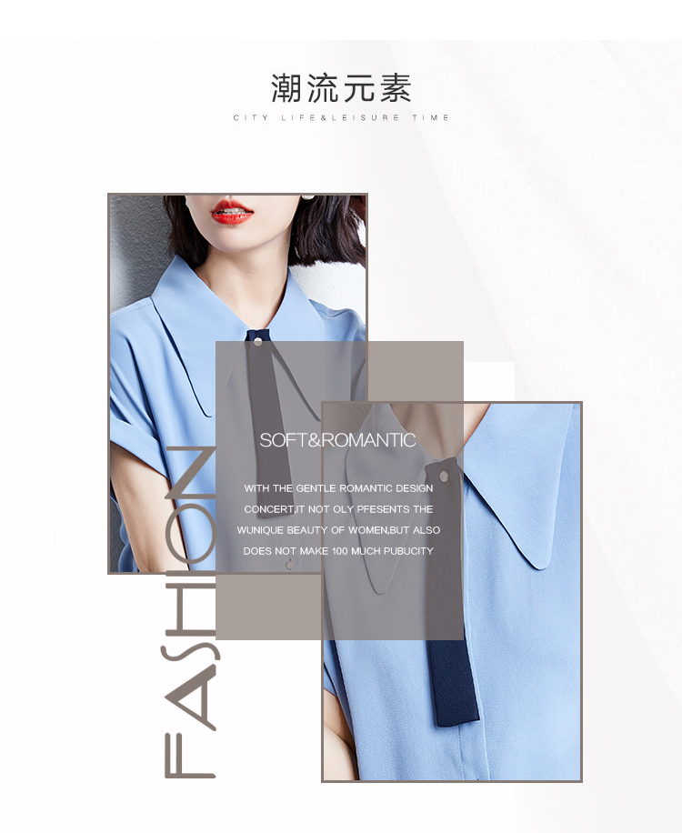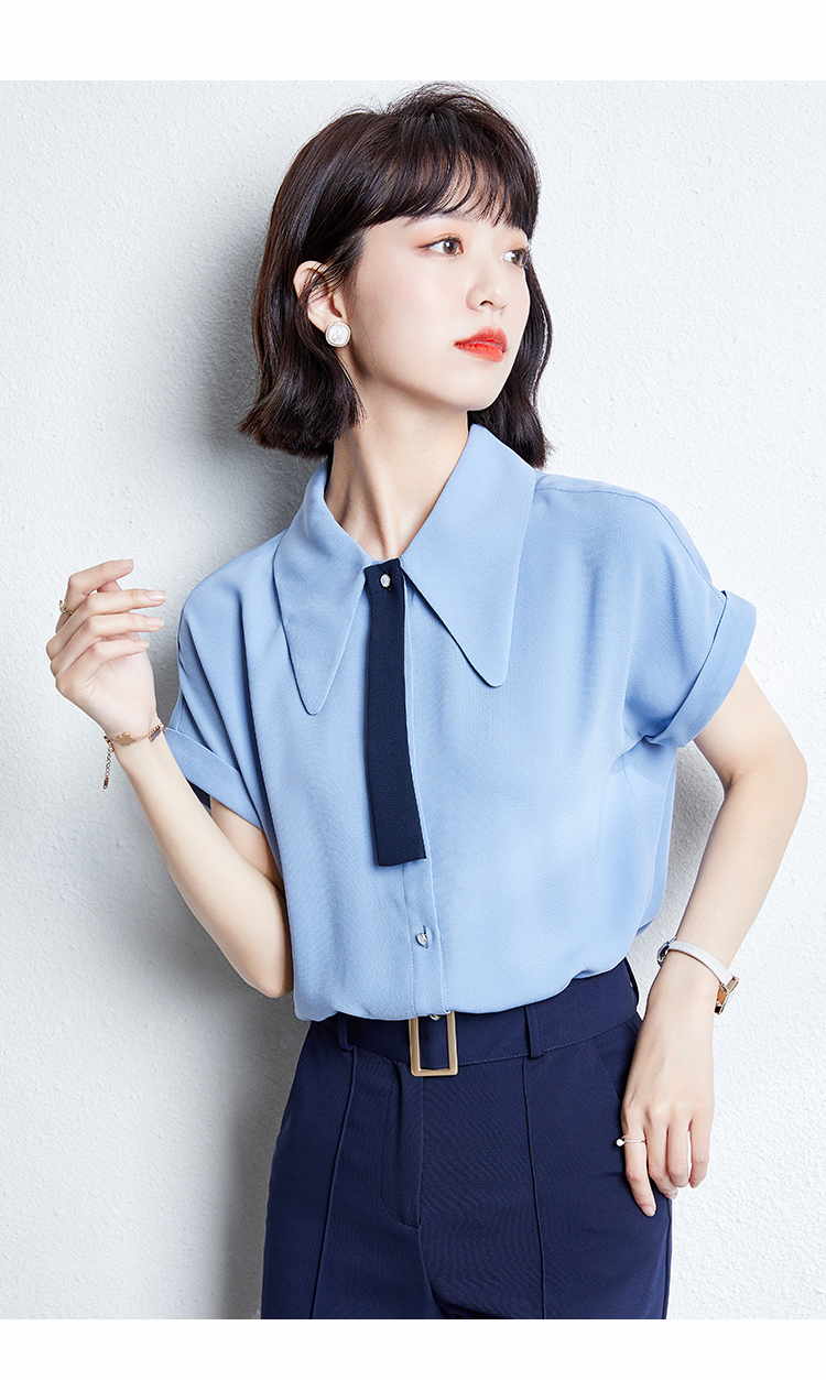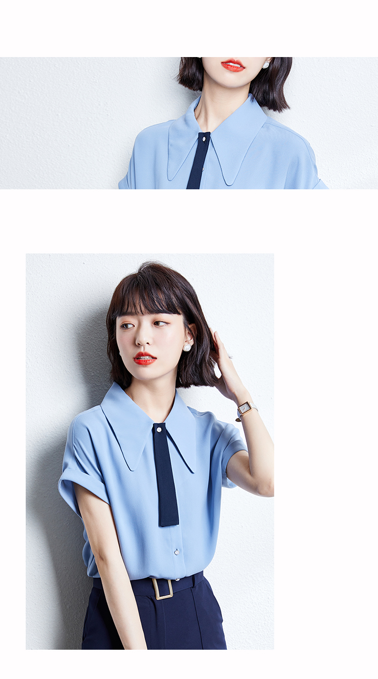 实拍雾霾蓝雪纺衬衫女夏新款短袖2021新款系带设计感气质小衫