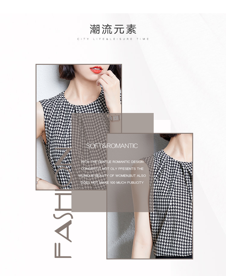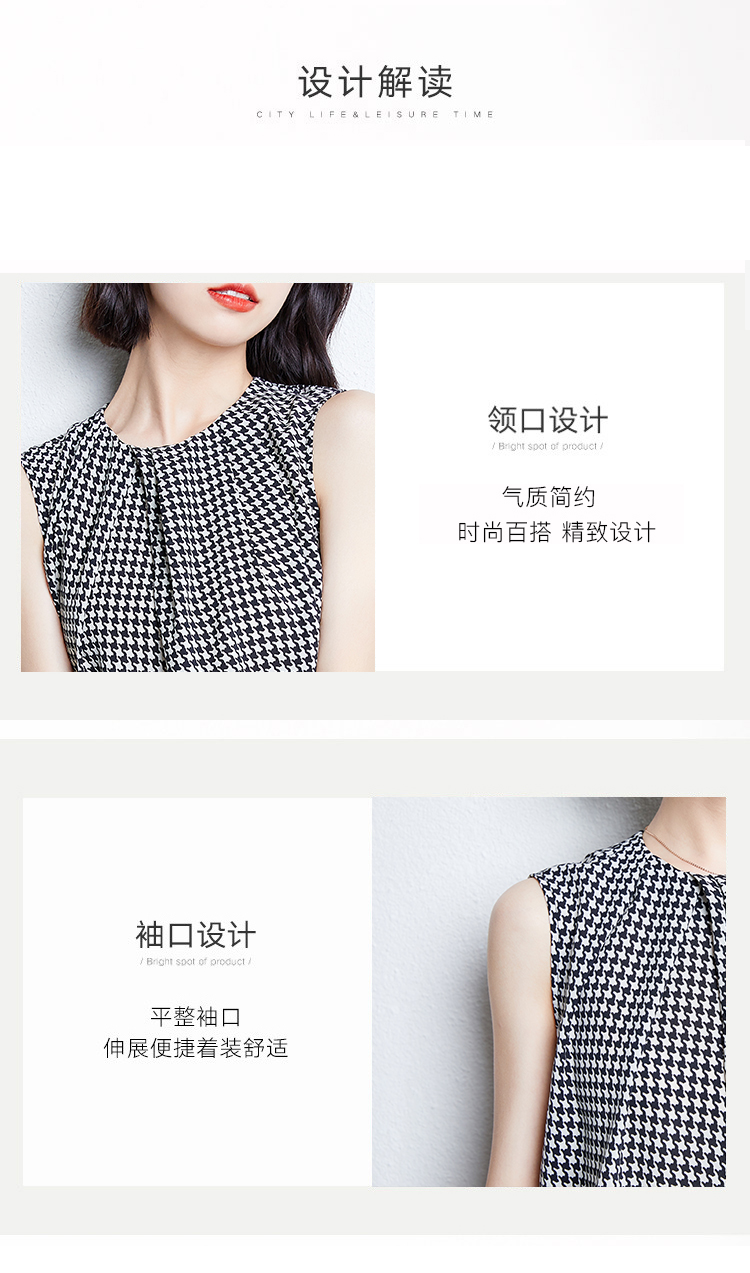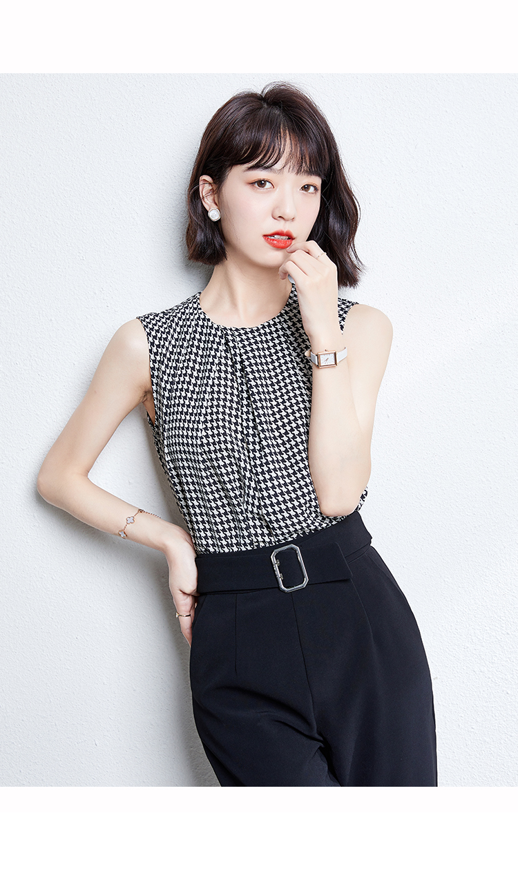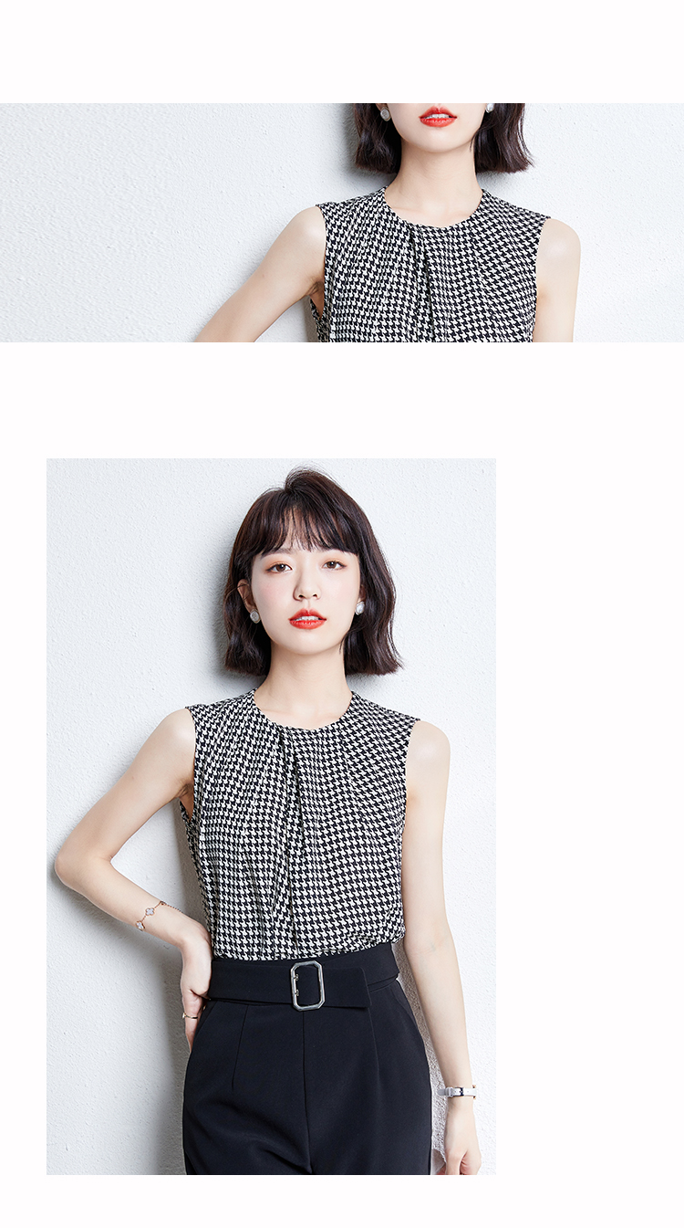 实拍~2021夏新装格子吊带圆领宽松百搭千鸟格无袖雪纺衫衬衣女
