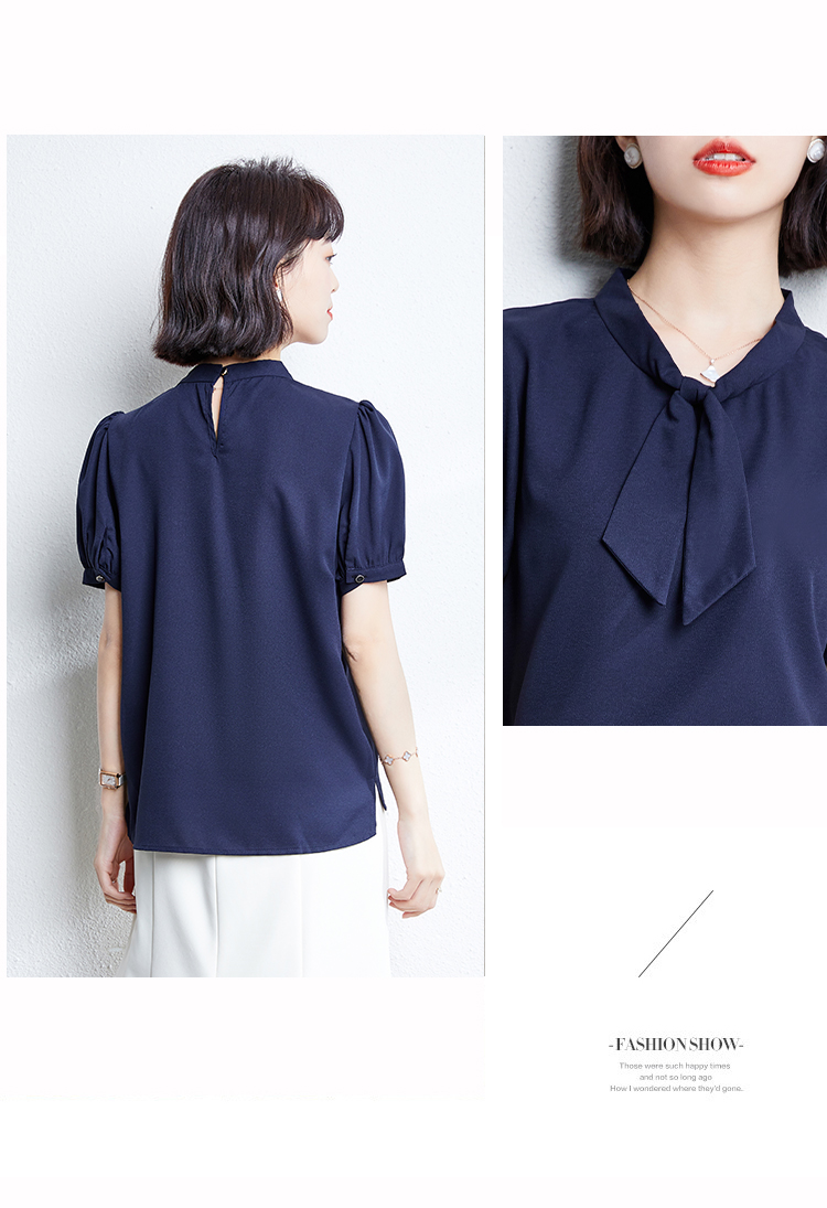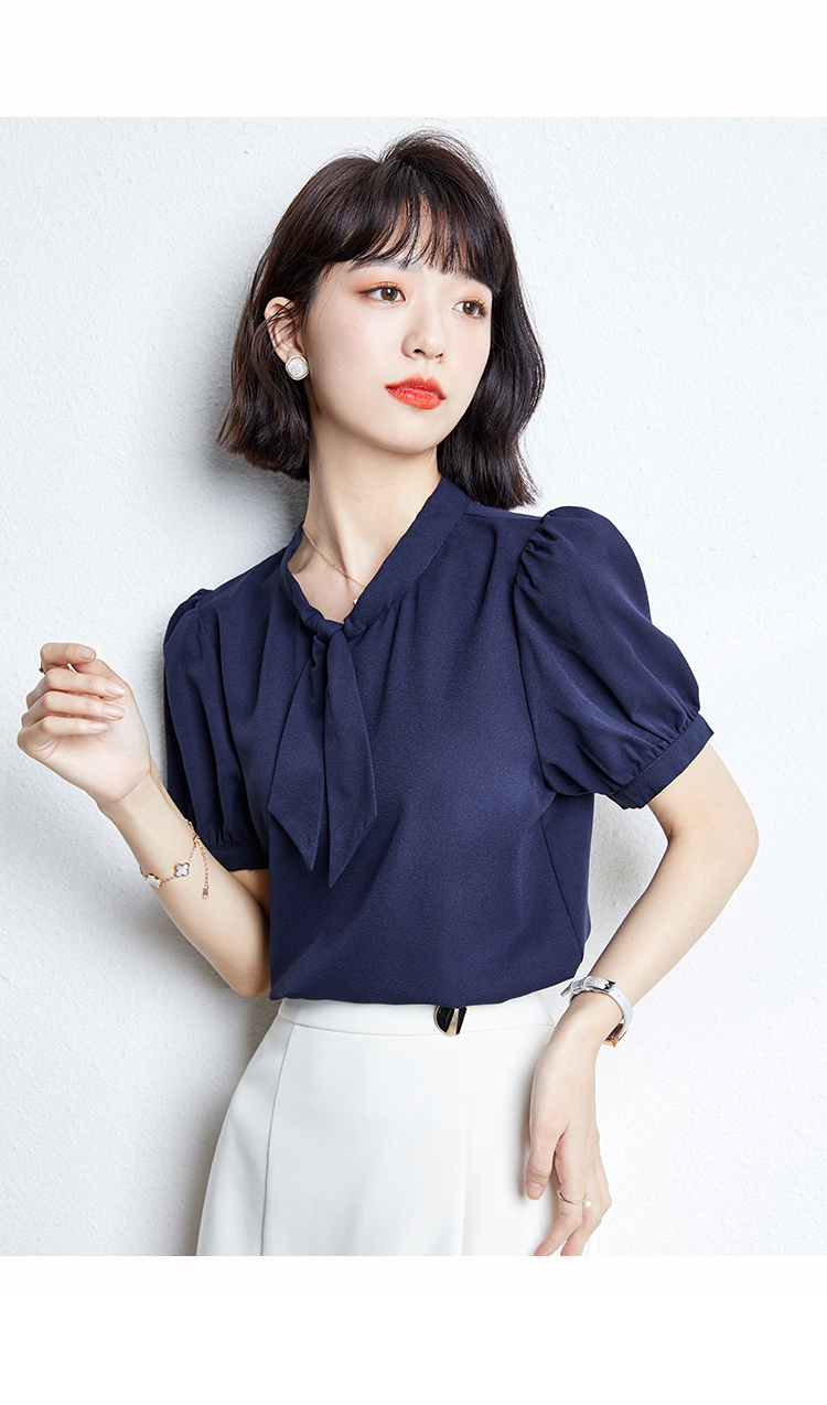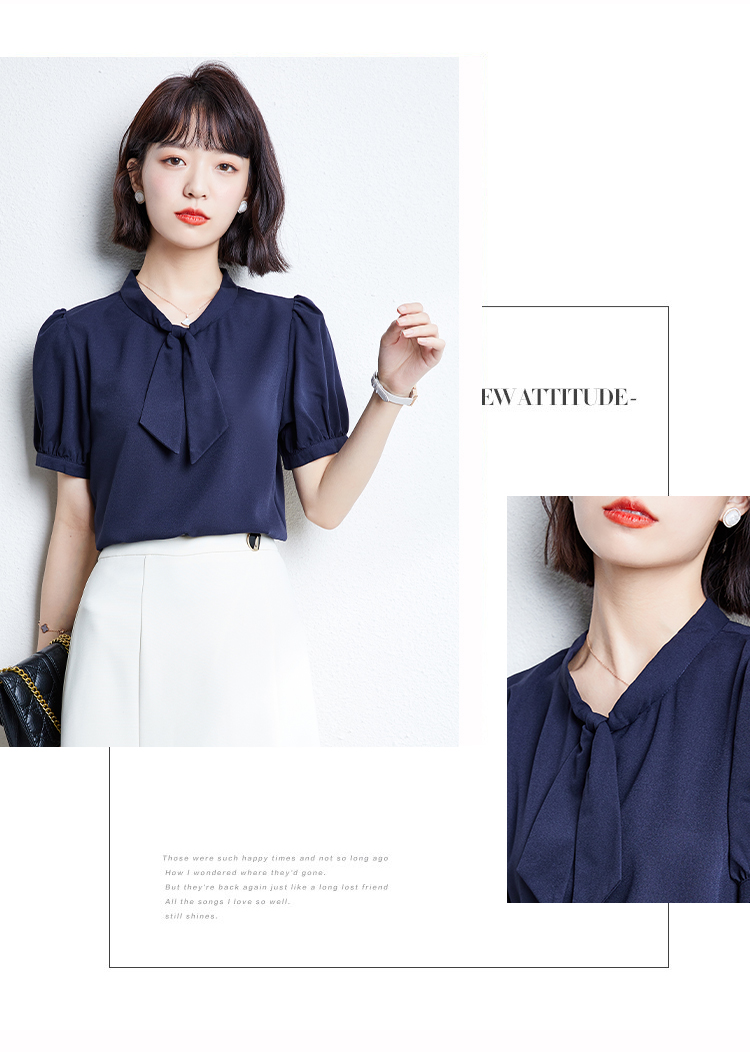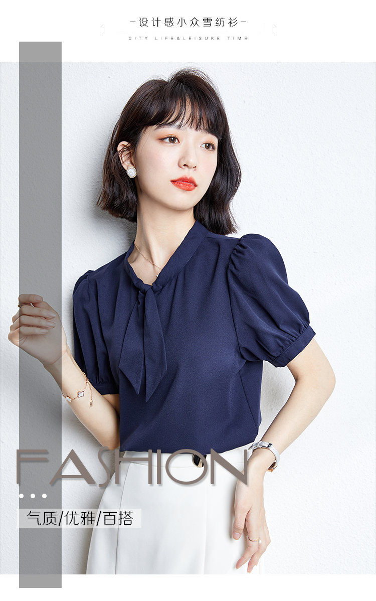 实拍短袖气质衬衫女设计感小众时尚纯色套头泡泡袖百搭雪纺衫