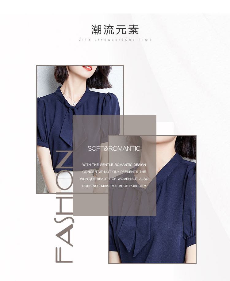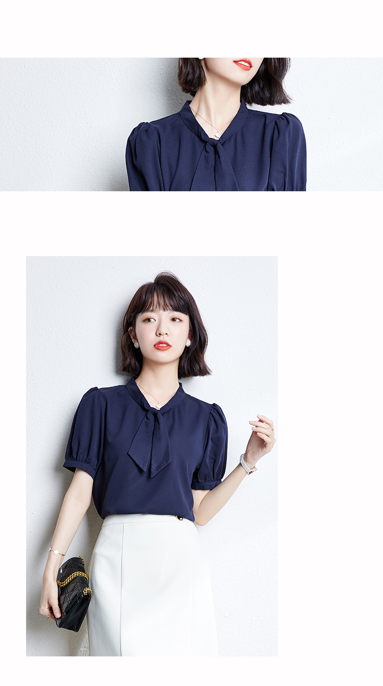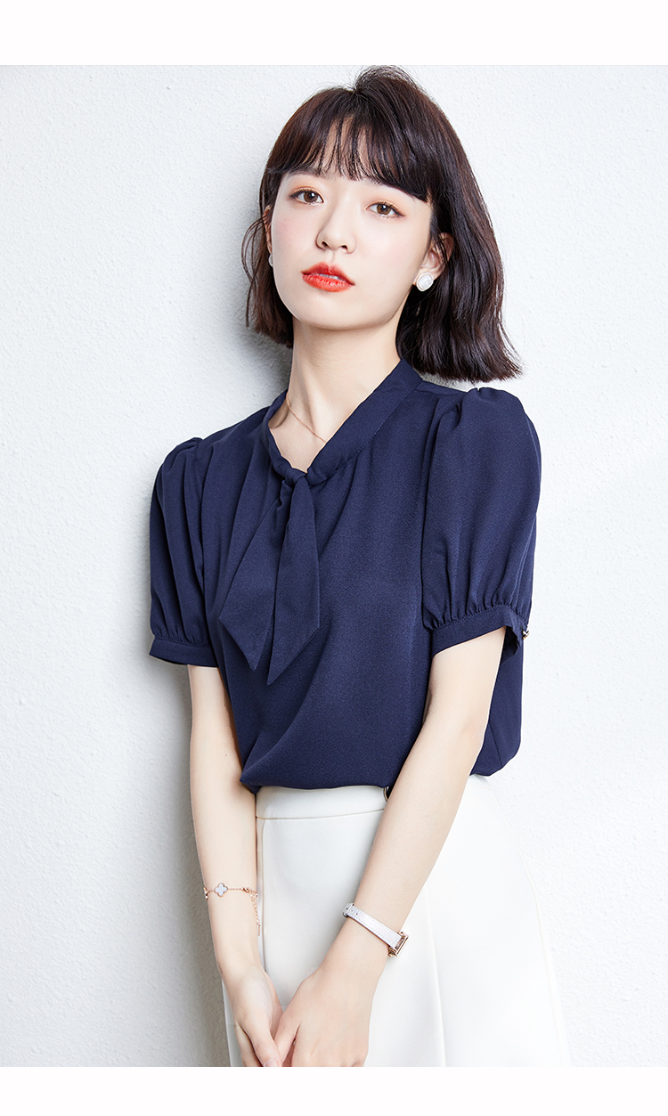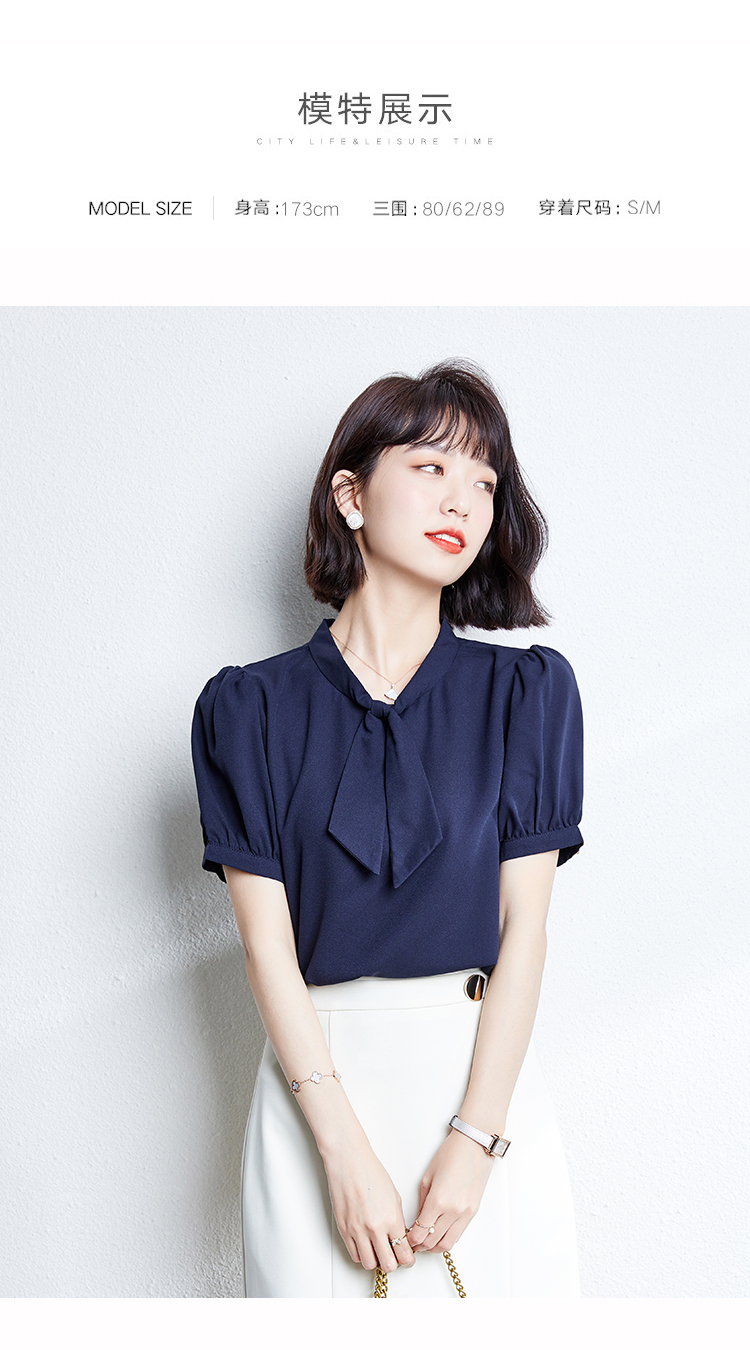 实拍短袖气质衬衫女设计感小众时尚纯色套头泡泡袖百搭雪纺衫