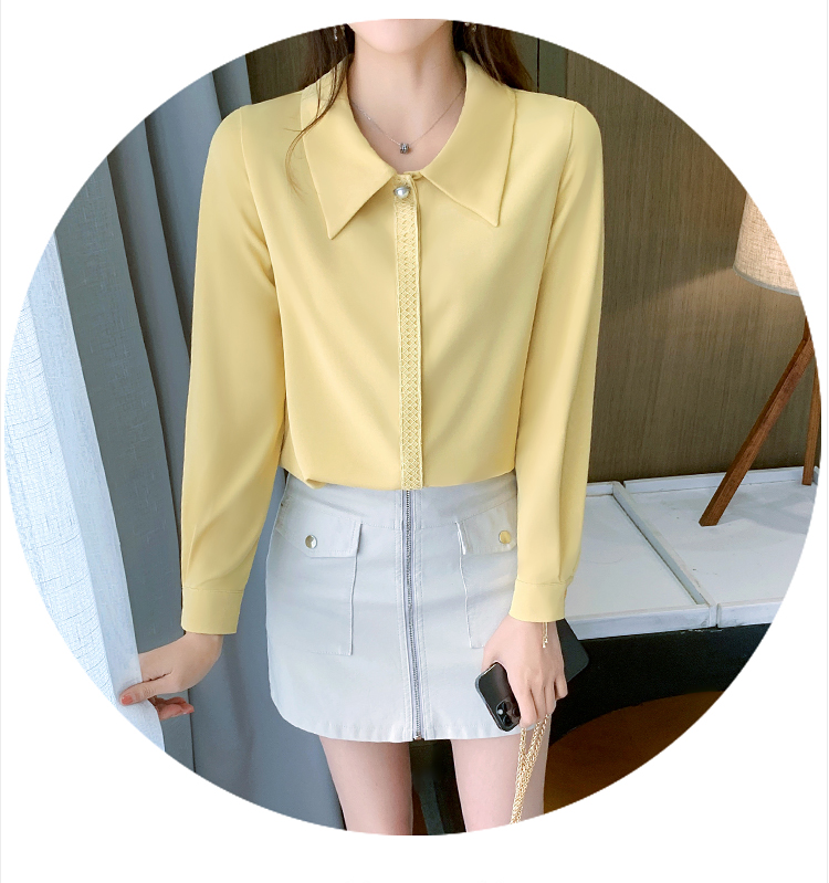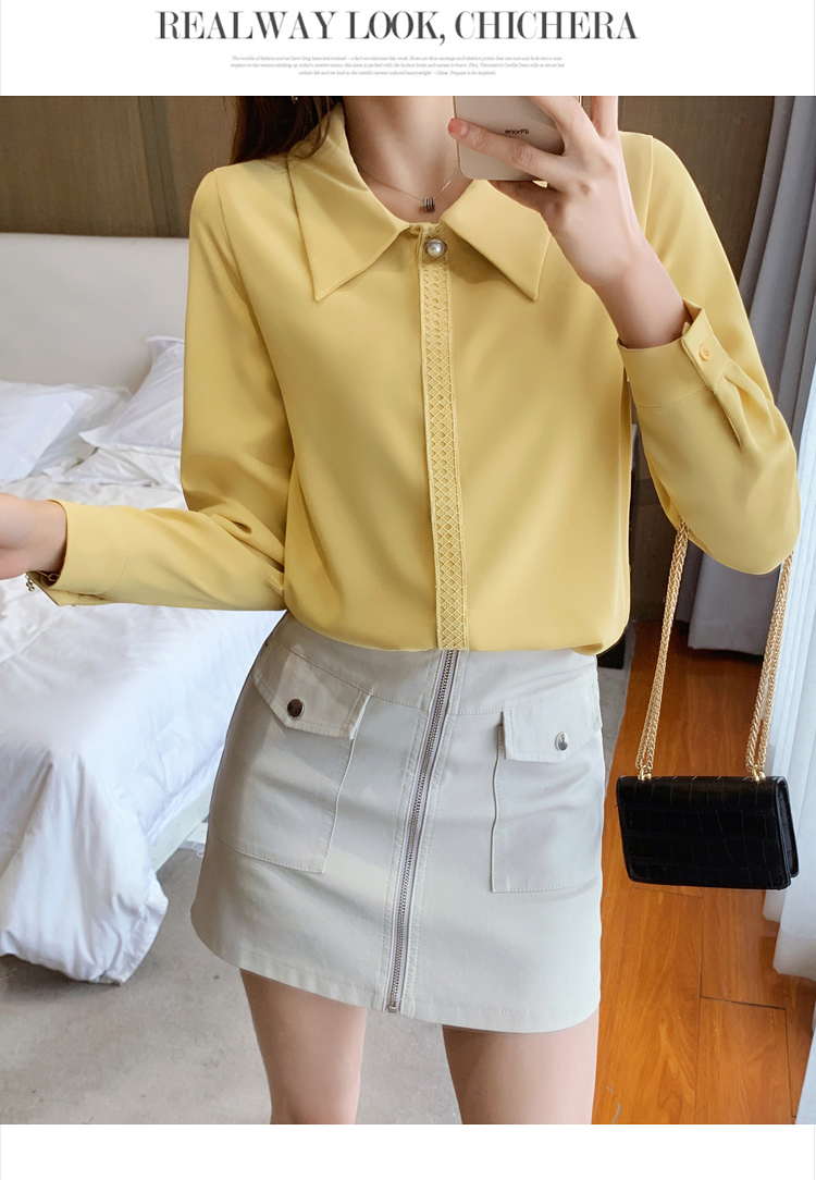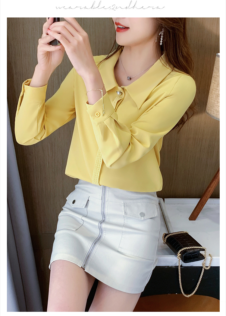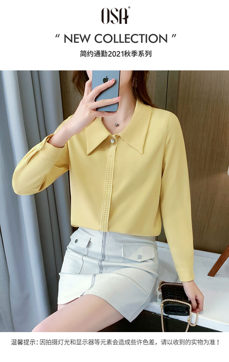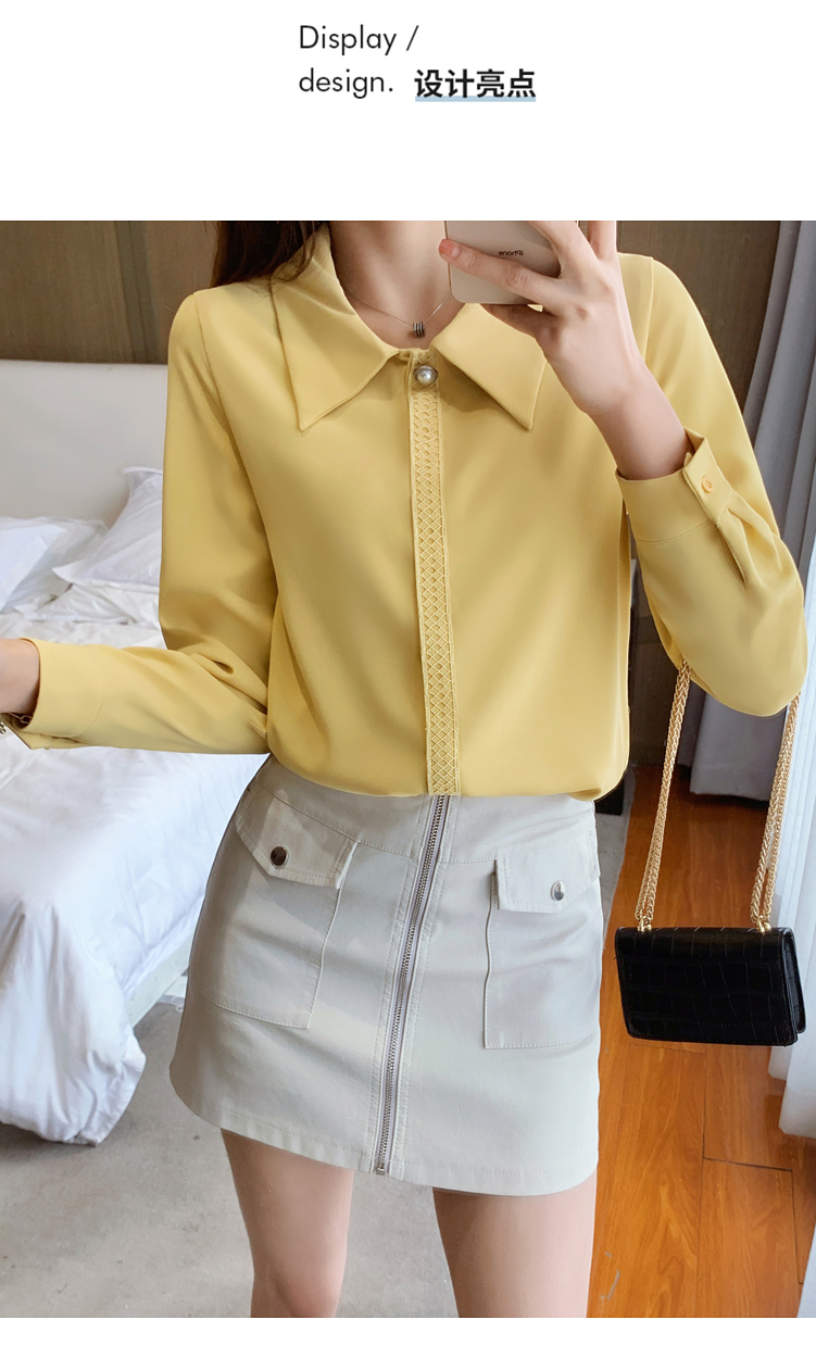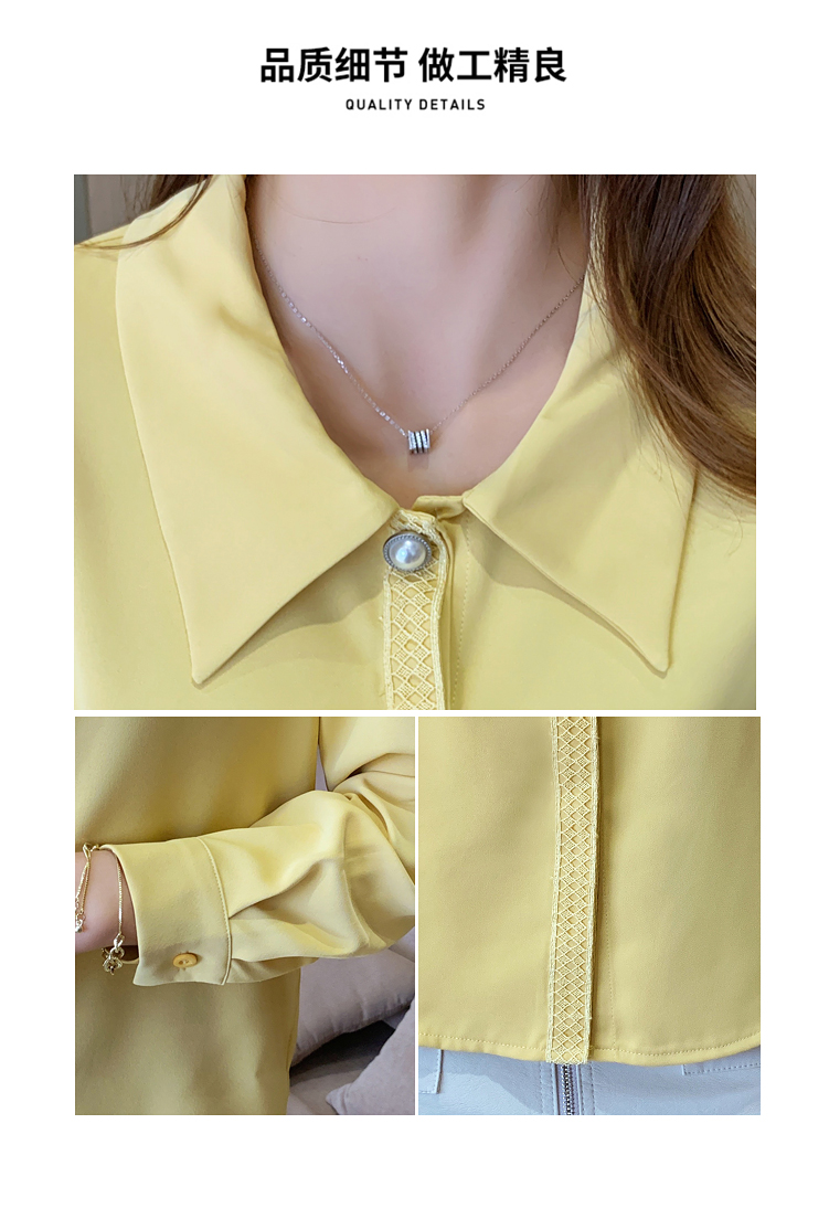 实拍2021春装新款纯色长袖韩版百搭拼接雪纺衫设计感衬衣女