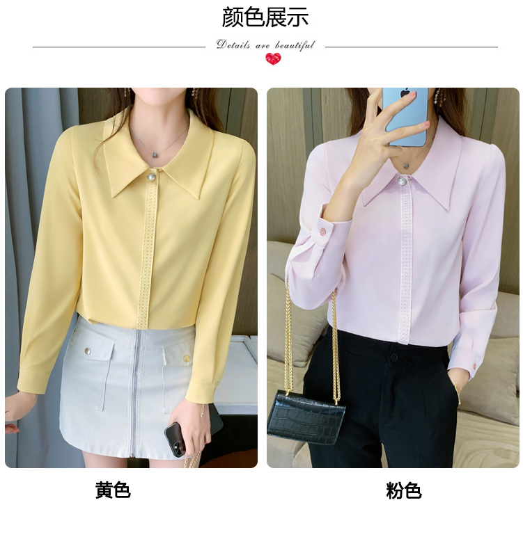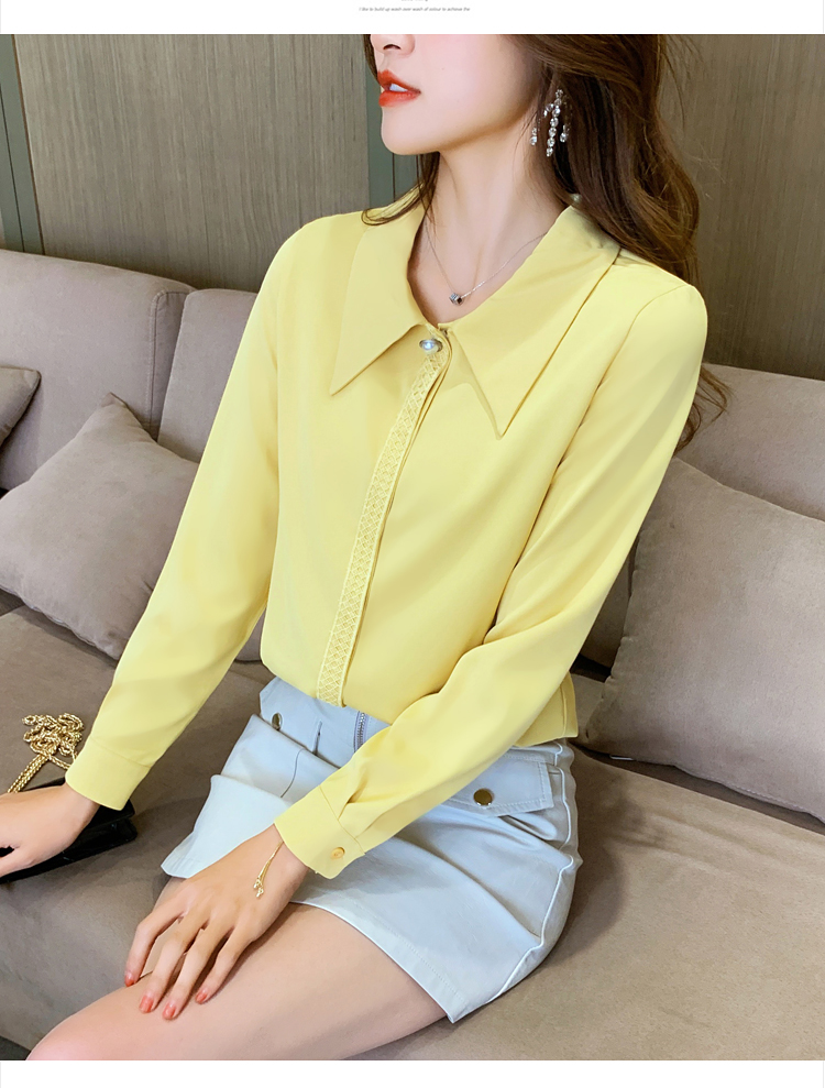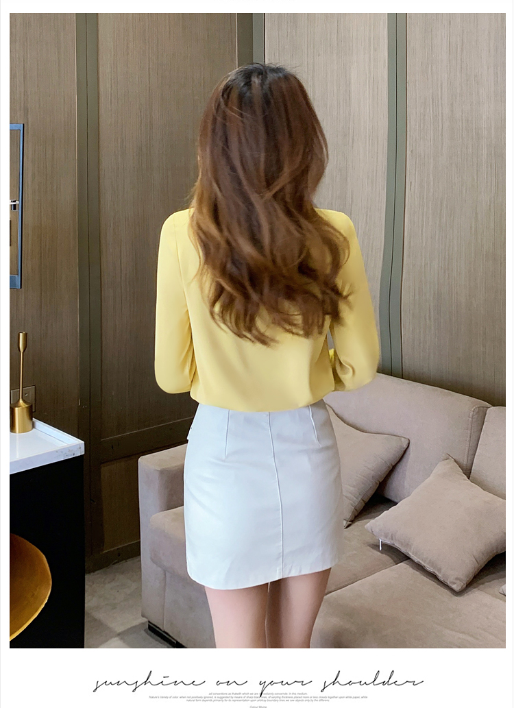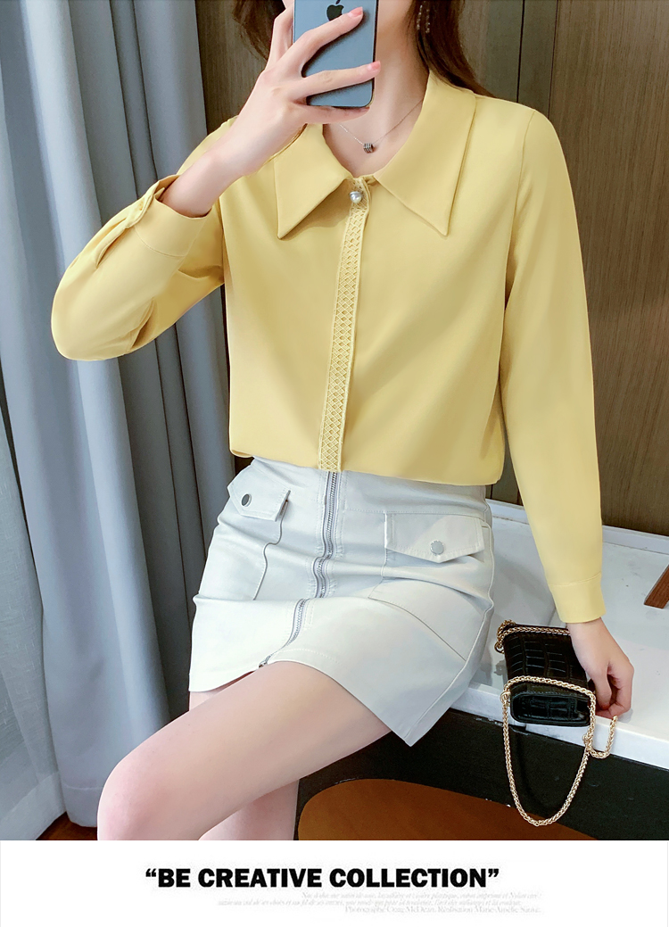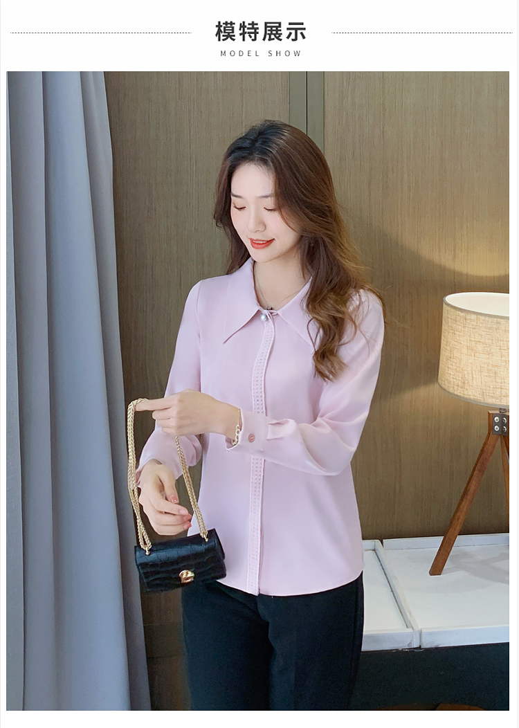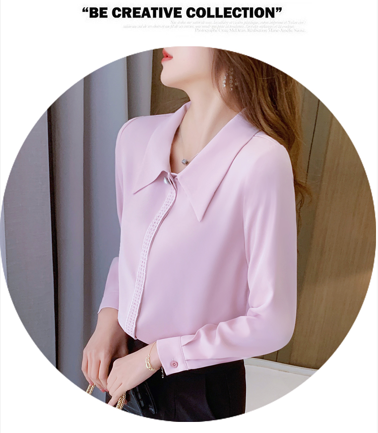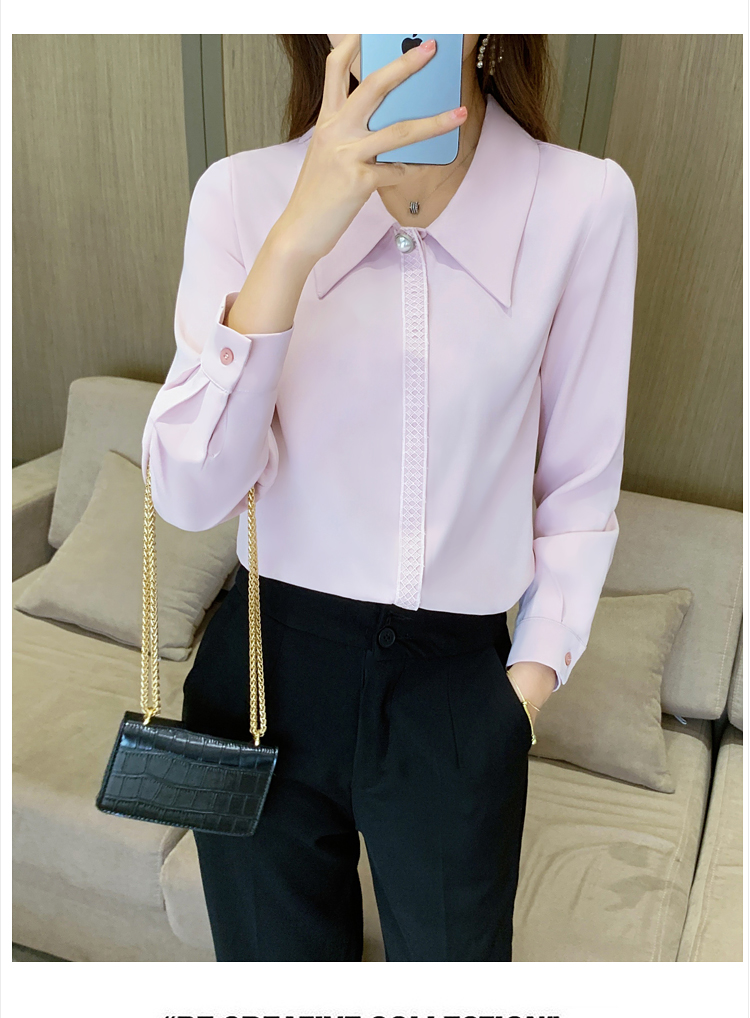 实拍2021春装新款纯色长袖韩版百搭拼接雪纺衫设计感衬衣女