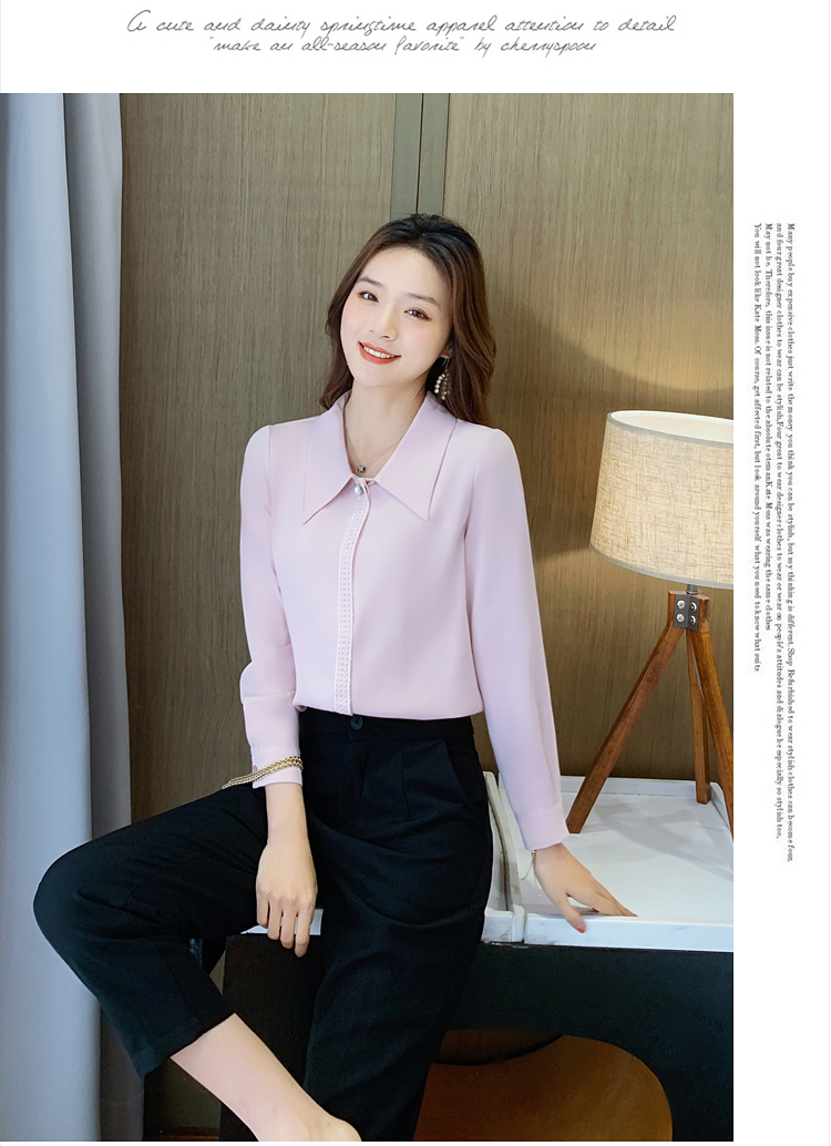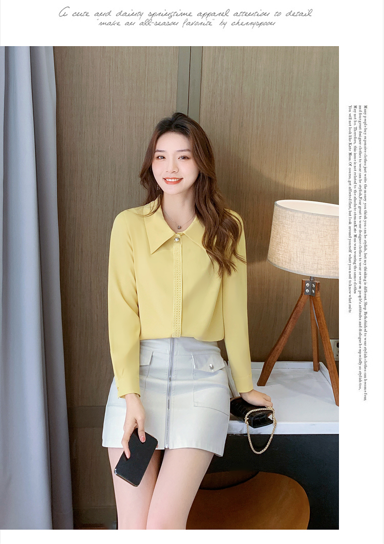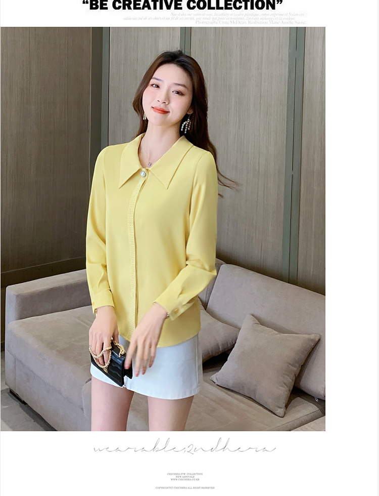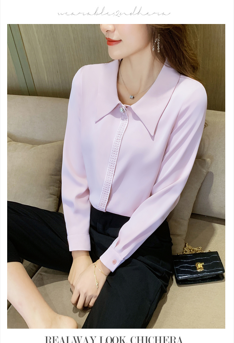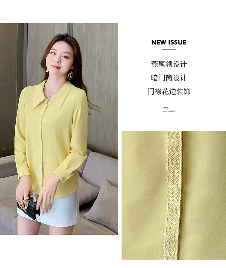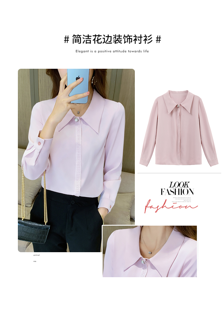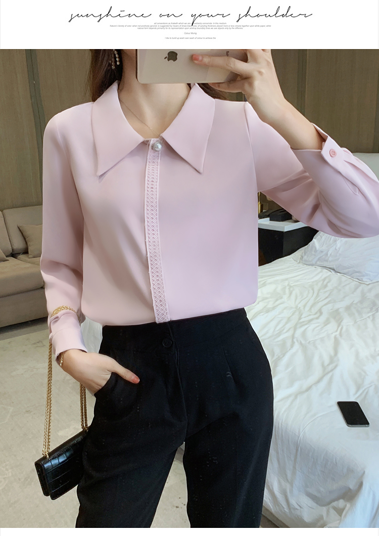 实拍2021春装新款纯色长袖韩版百搭拼接雪纺衫设计感衬衣女