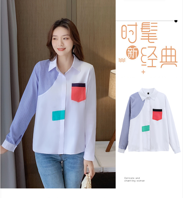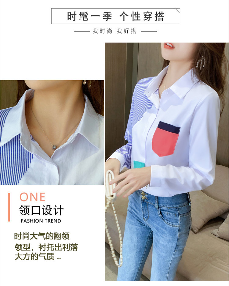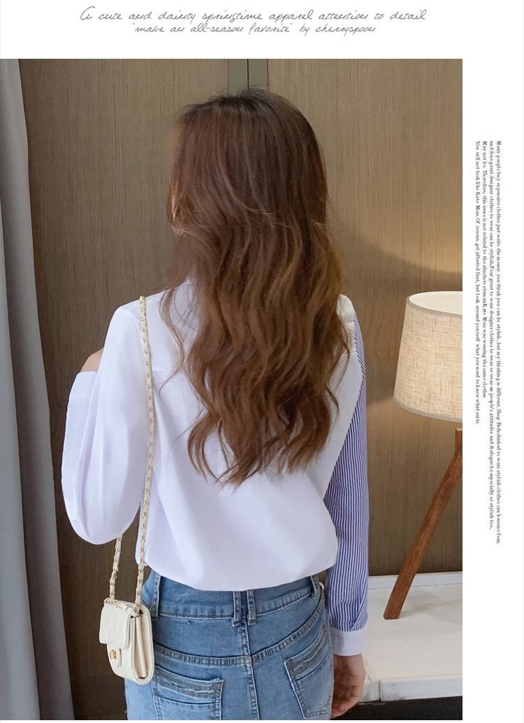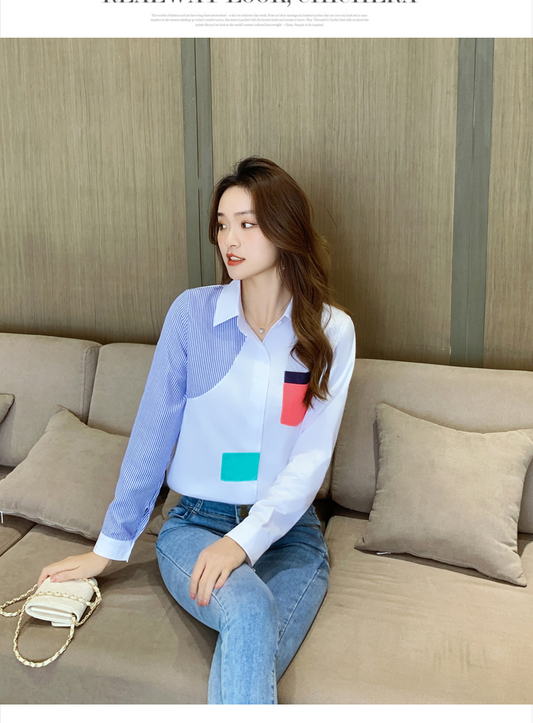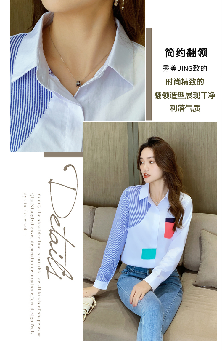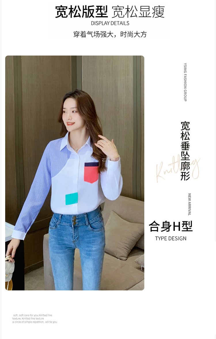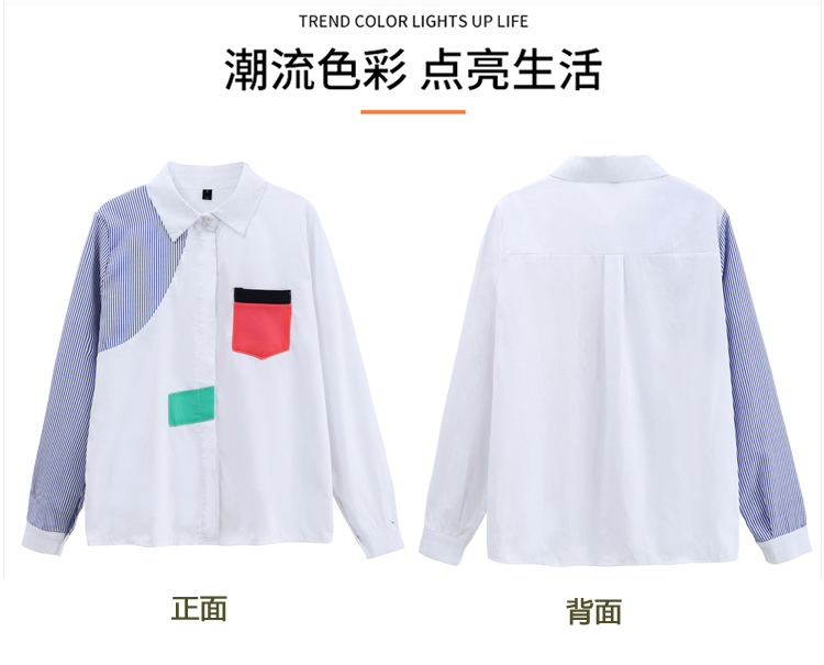 实拍2021新款春装设计感撞色衬衫女宽松不规则条纹上衣打底