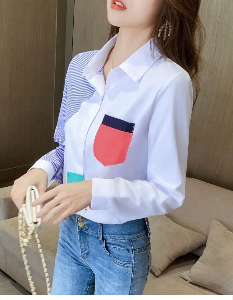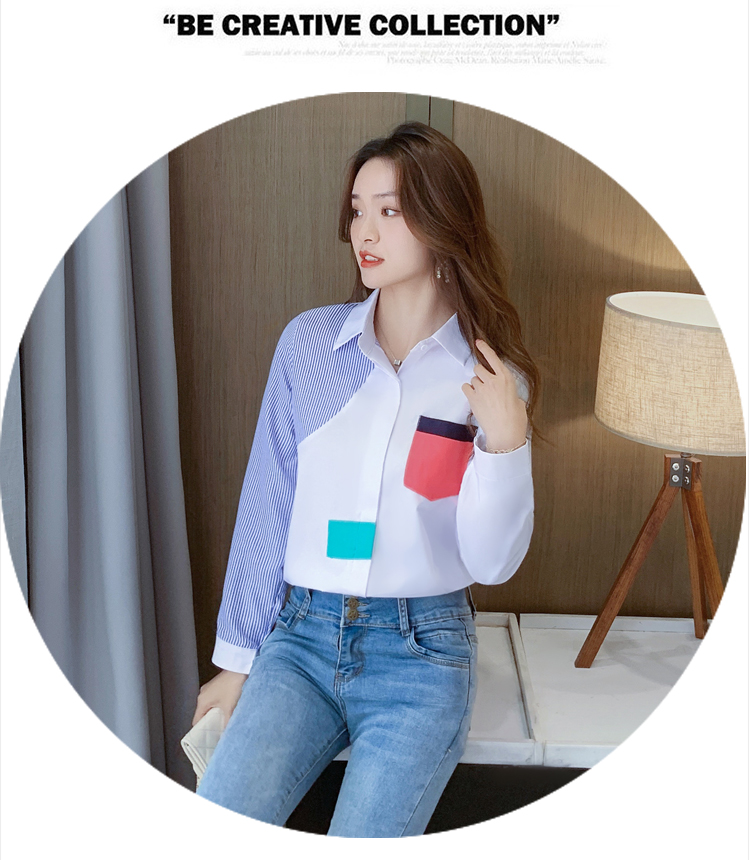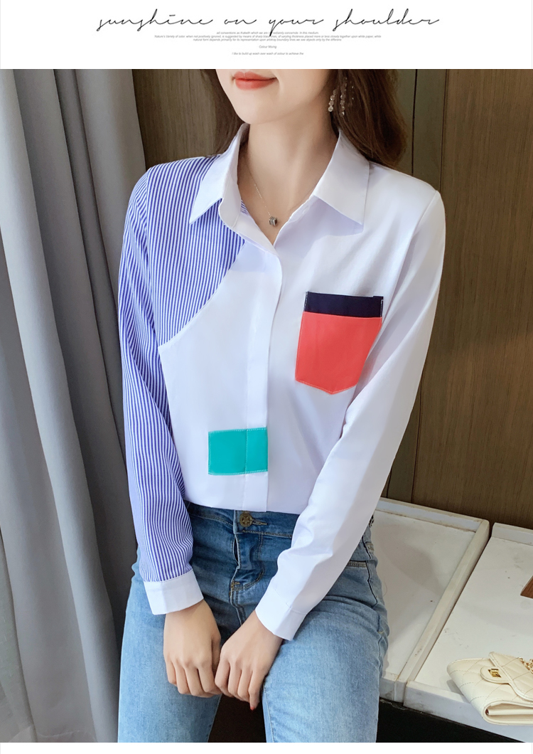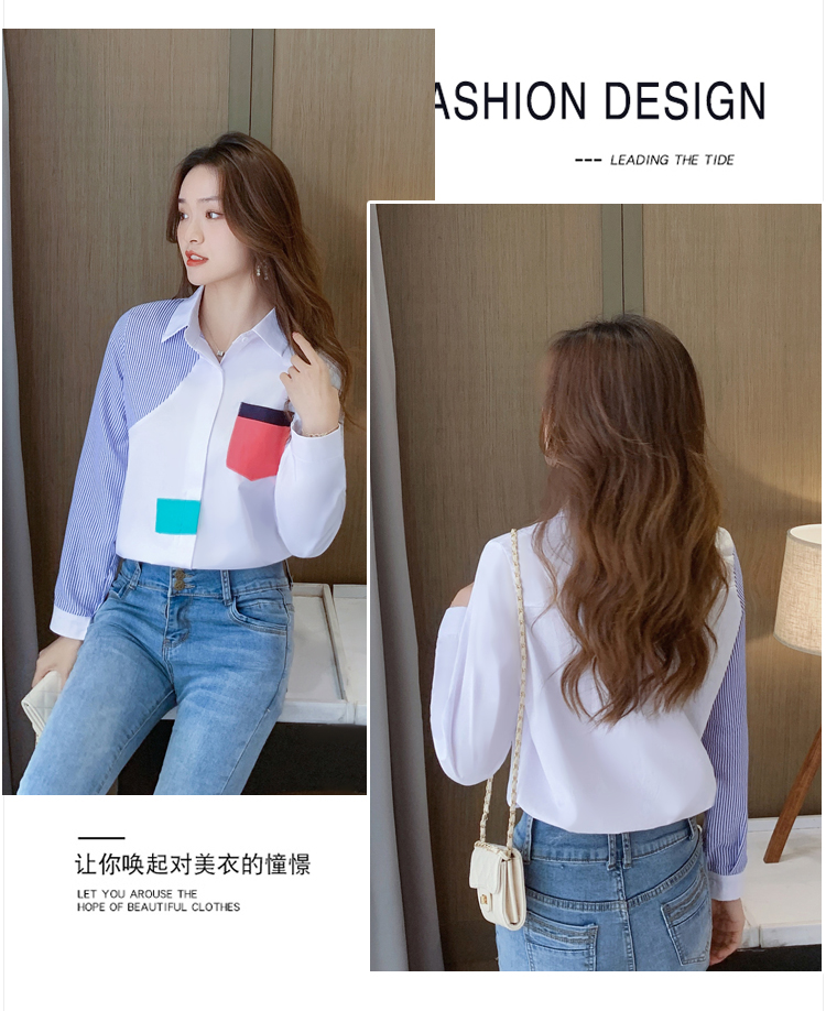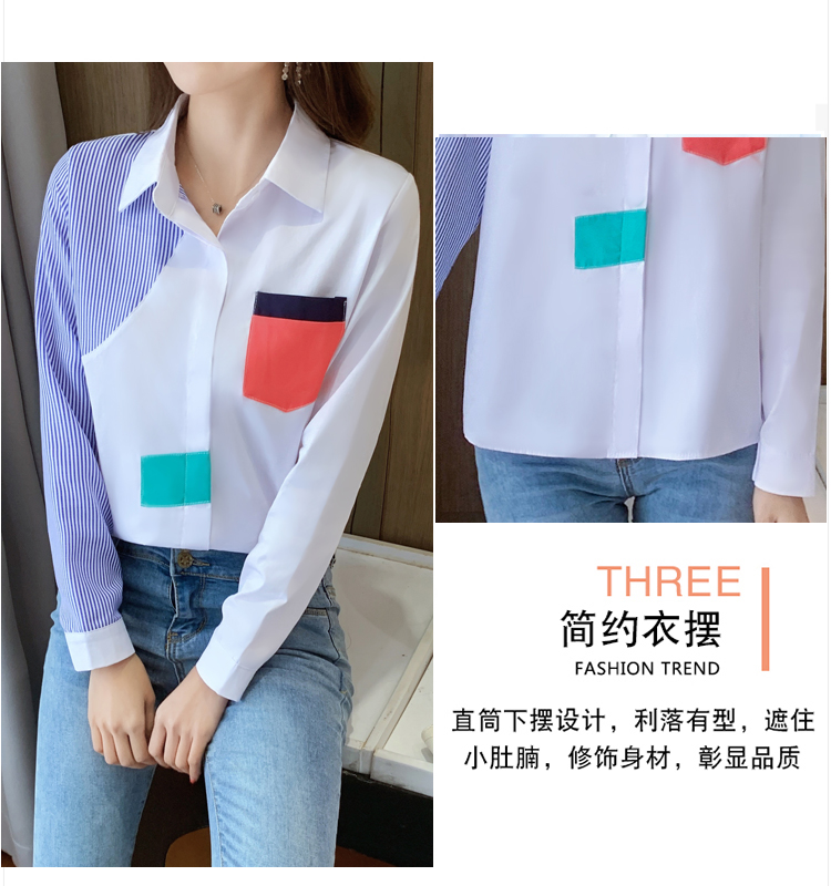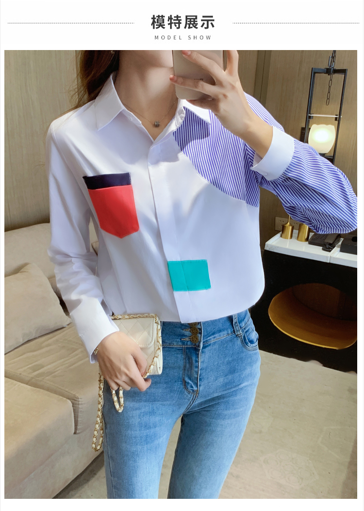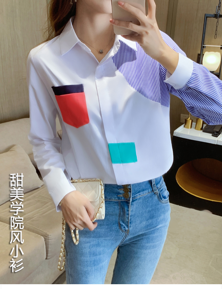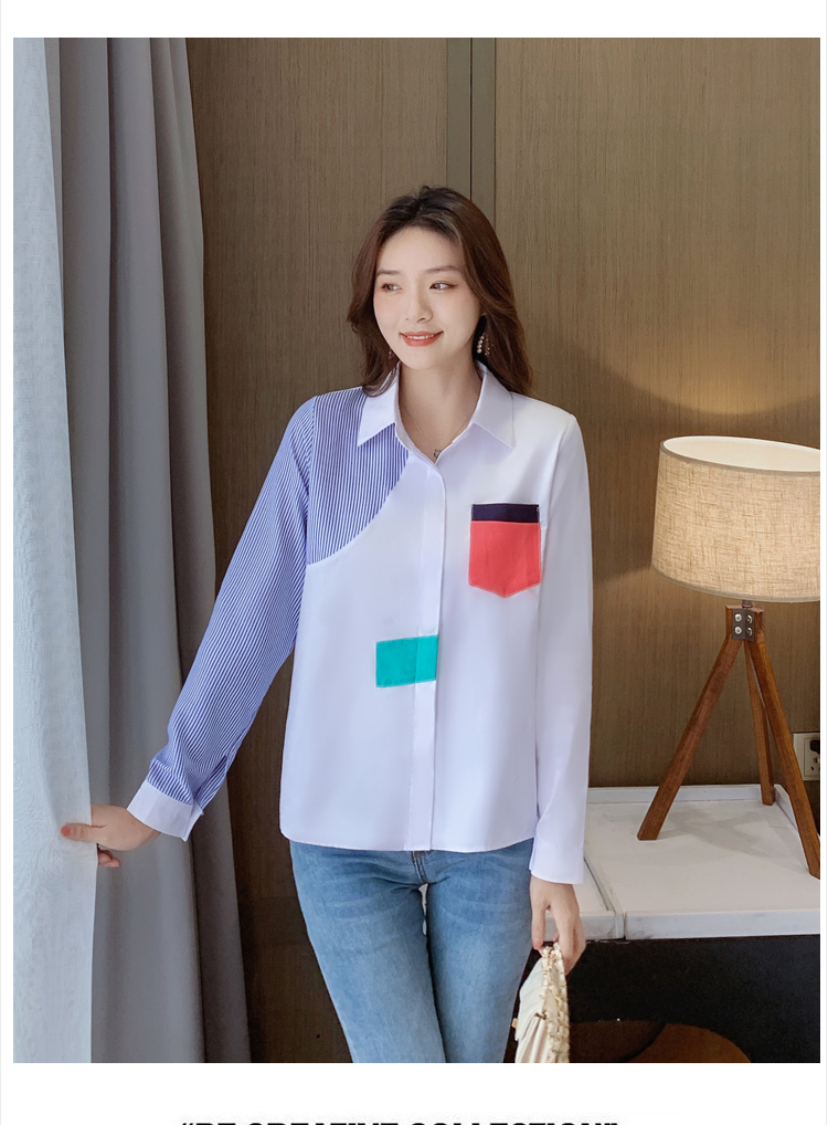 实拍2021新款春装设计感撞色衬衫女宽松不规则条纹上衣打底