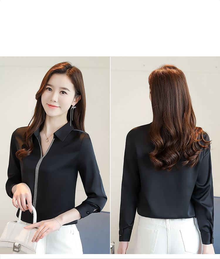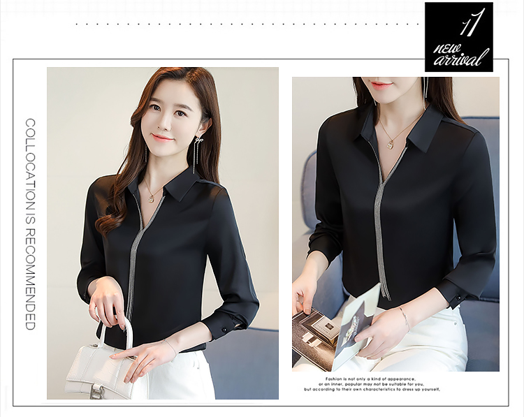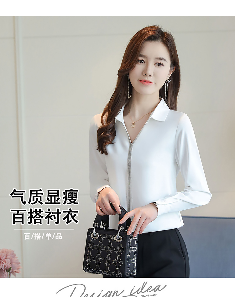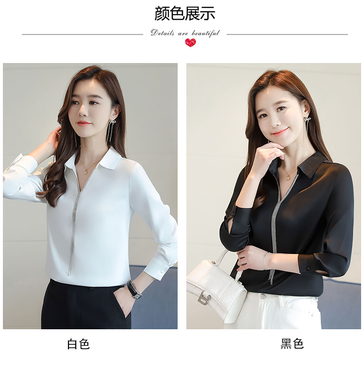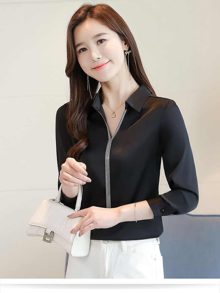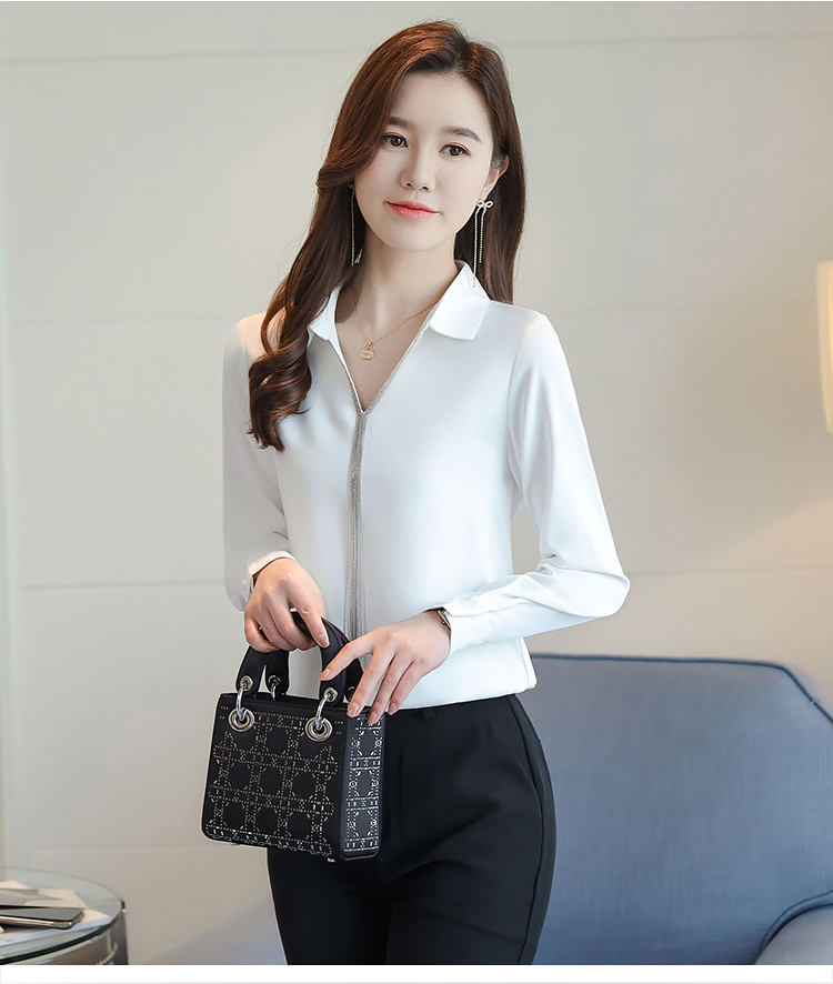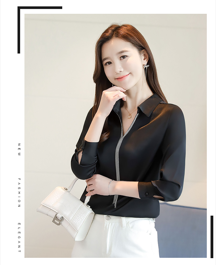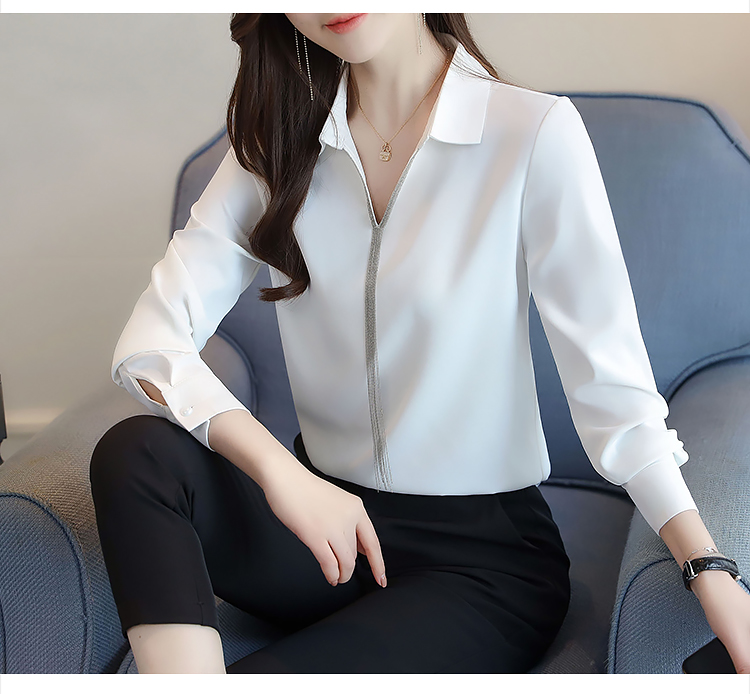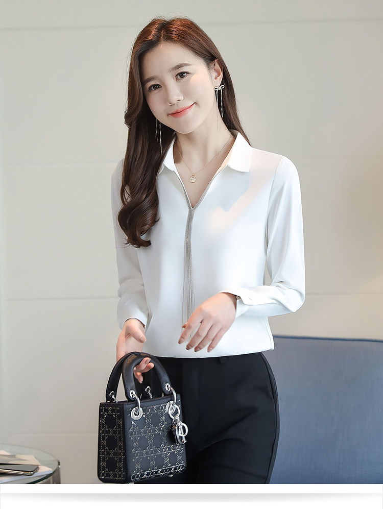 实拍春装新款长袖简约缎面V领纯色流苏职业衬衣通勤百搭小衫