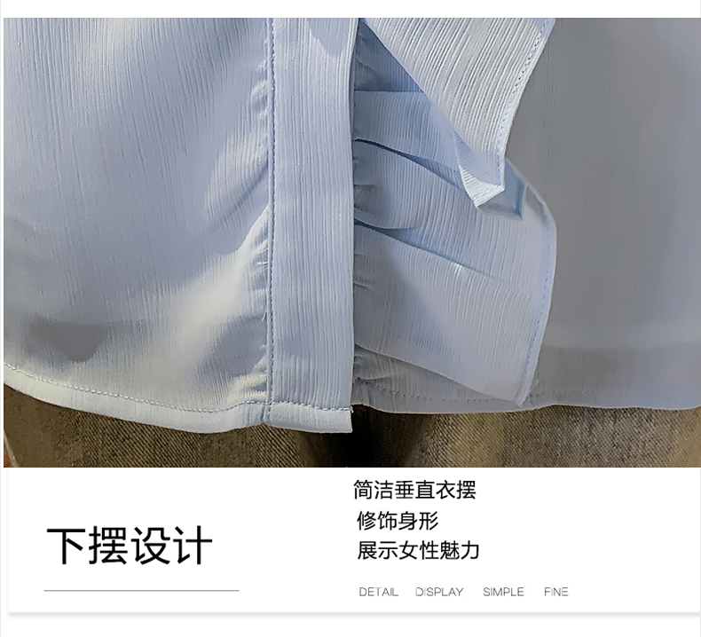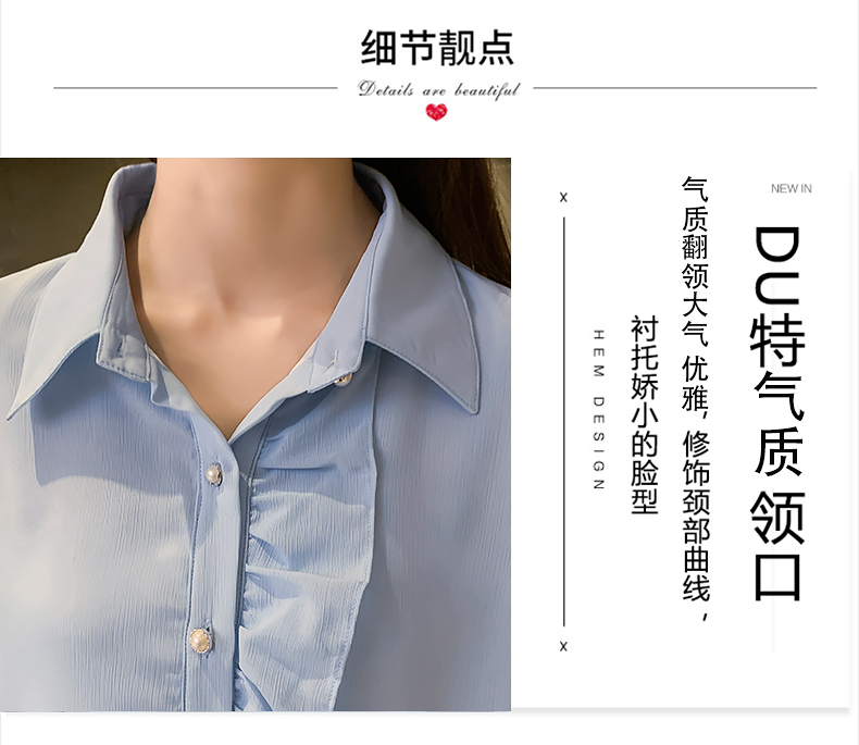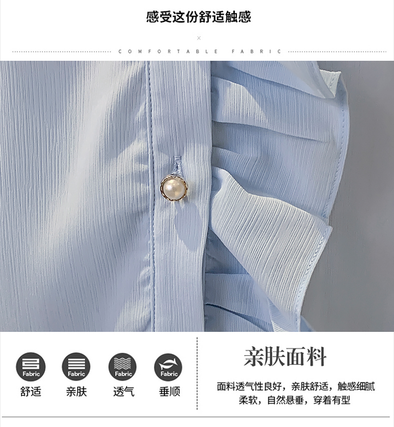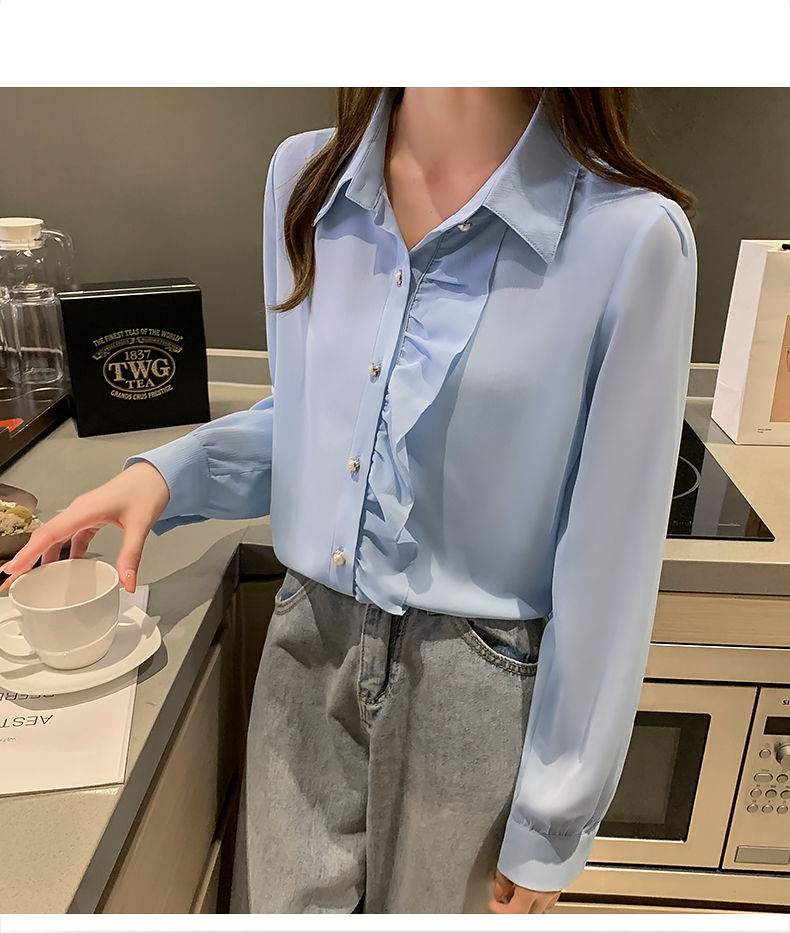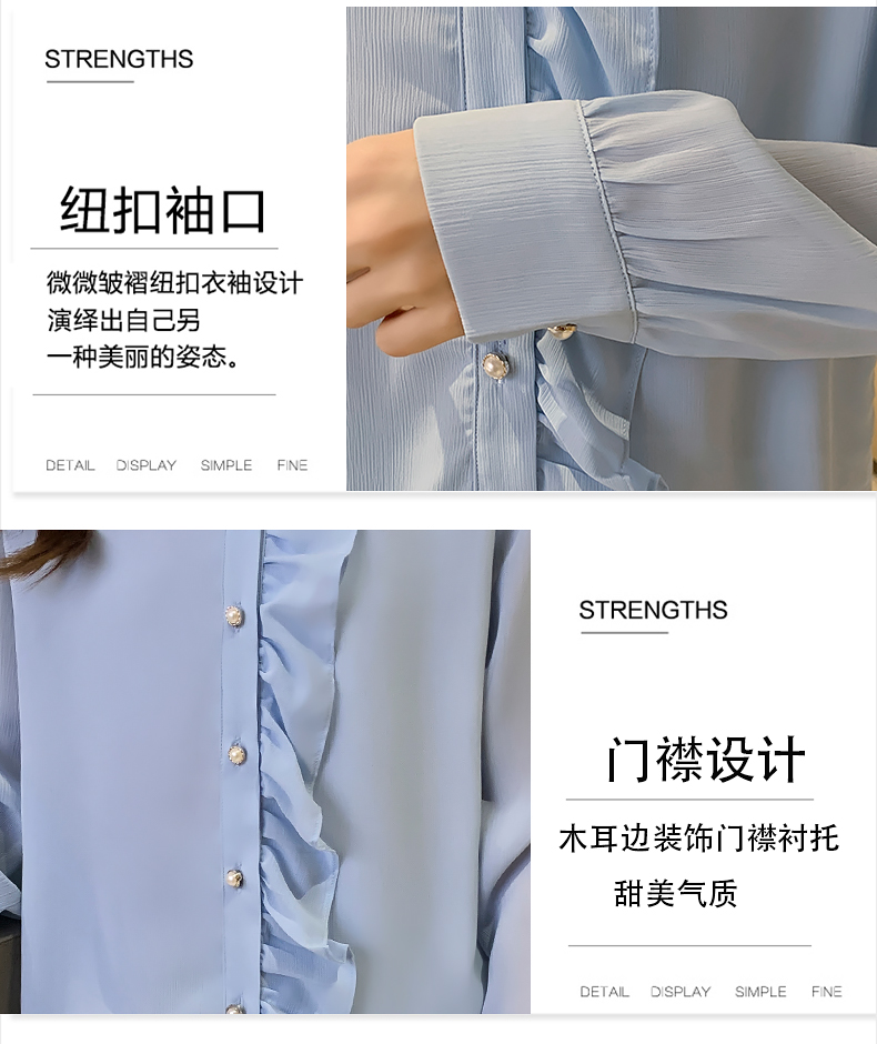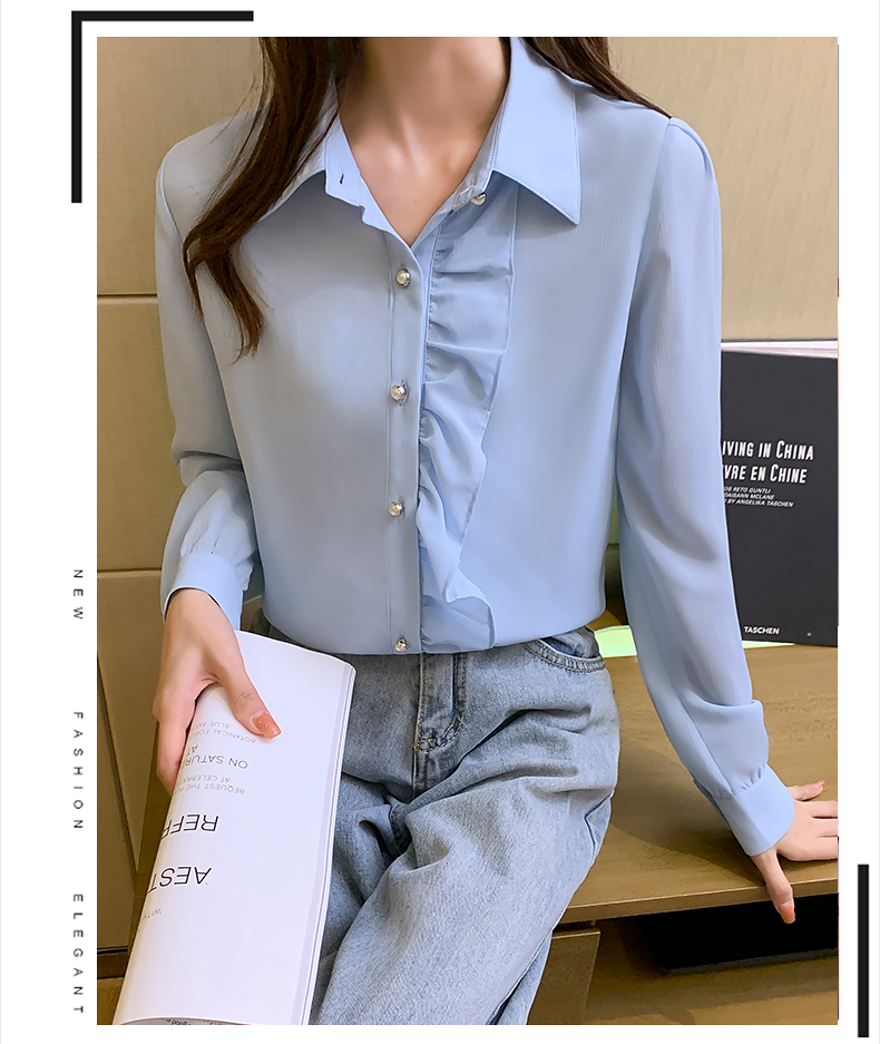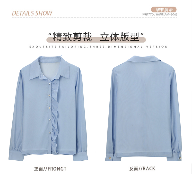 实拍2021春装新款韩版宽松洋气上衣时尚港风蓝色衬衣雪纺衫