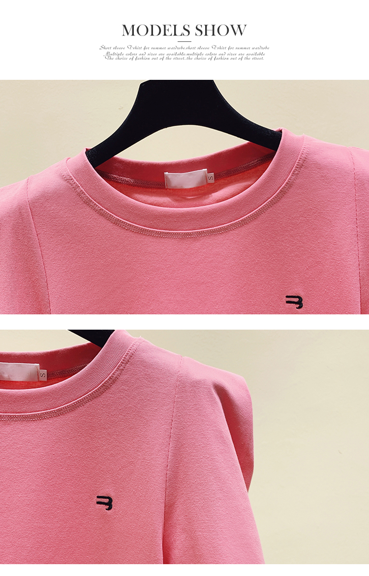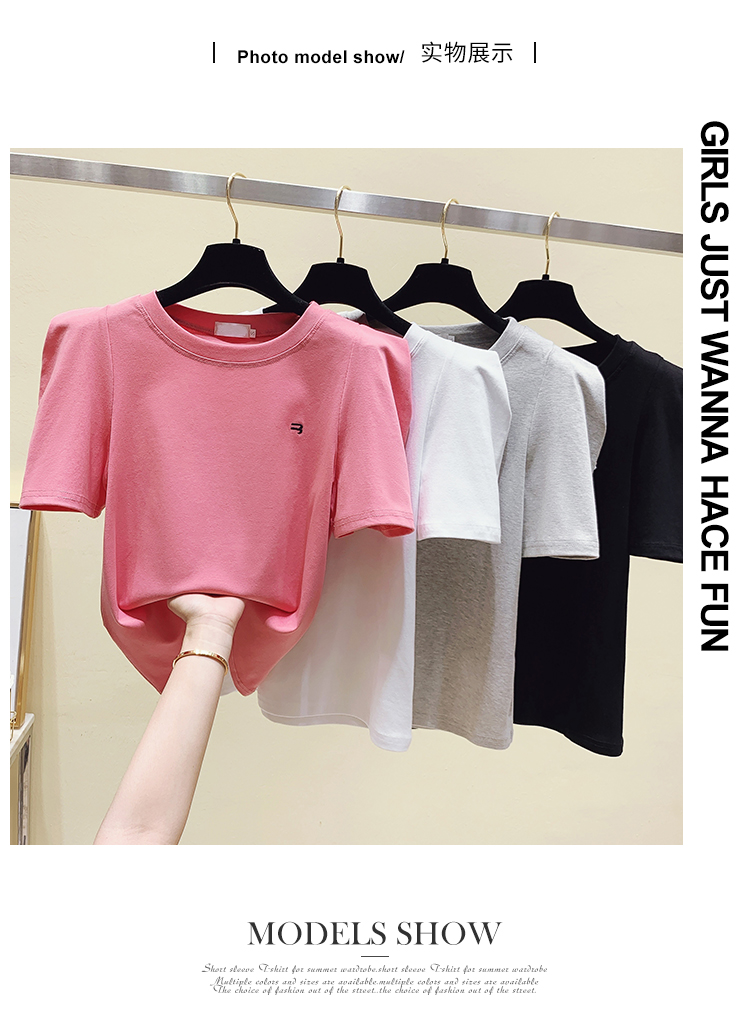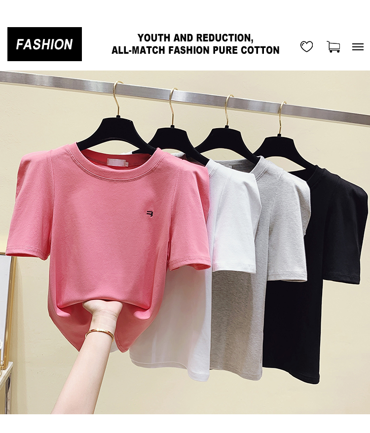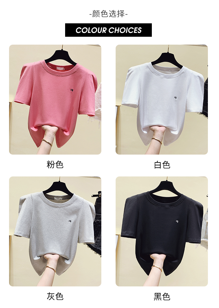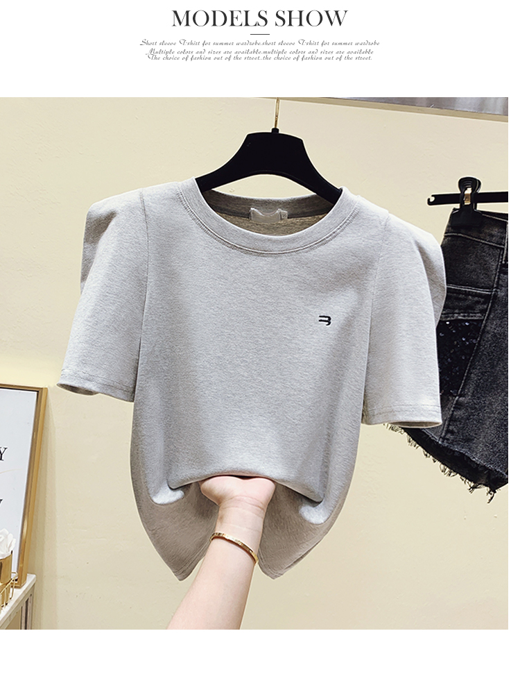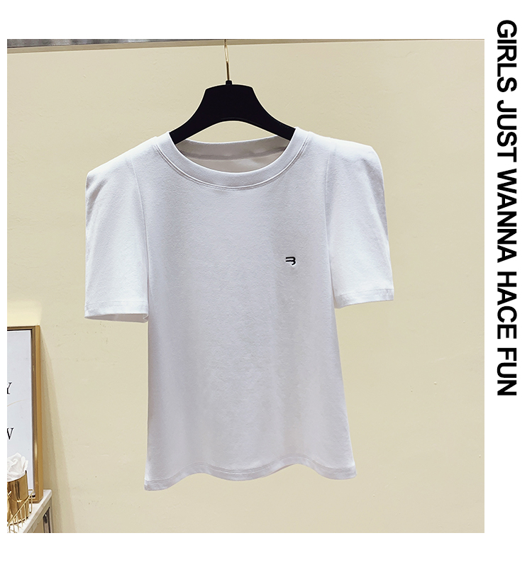 C1957短袖t恤女修身欧货半袖女纯棉2021年夏季新款刺绣泡泡袖上衣