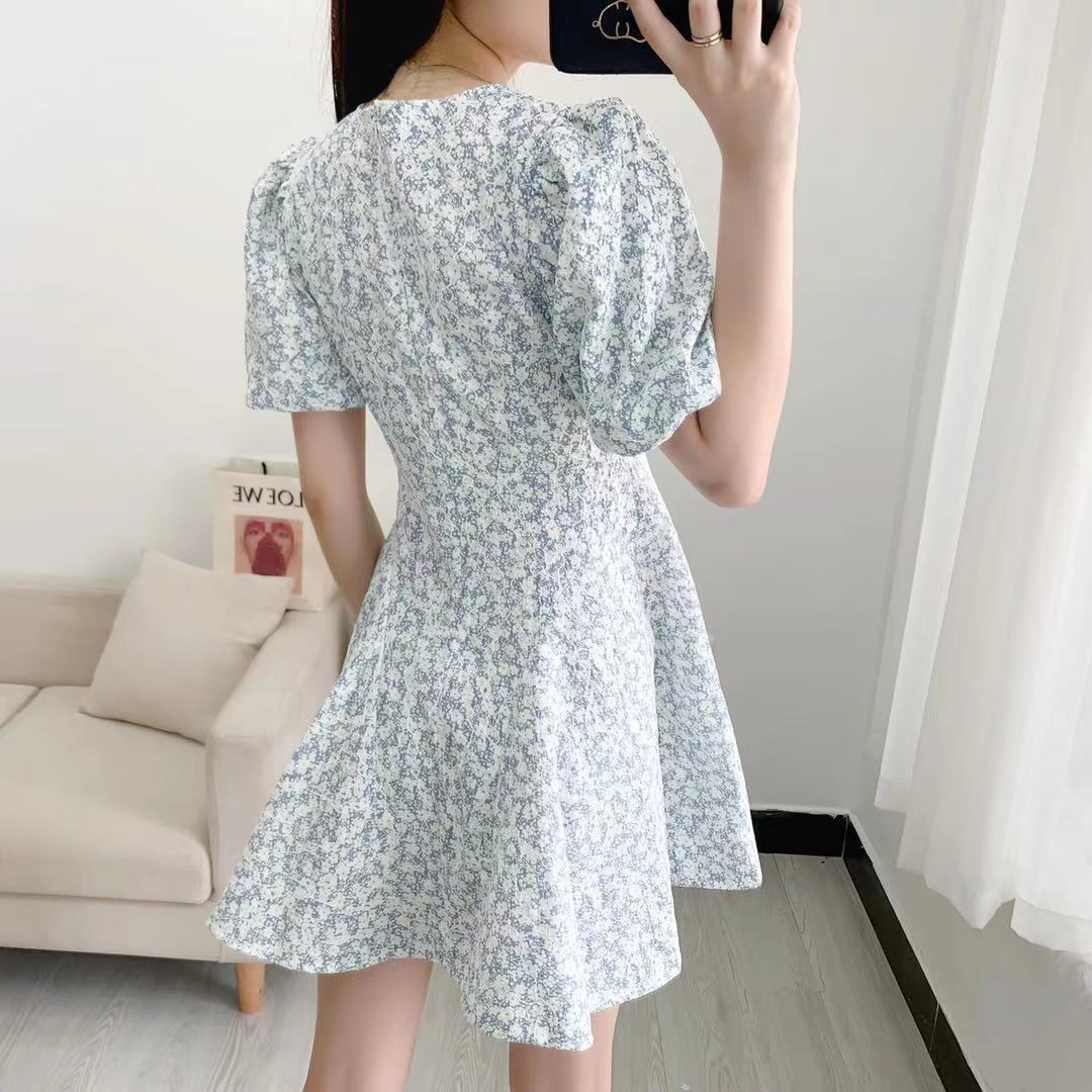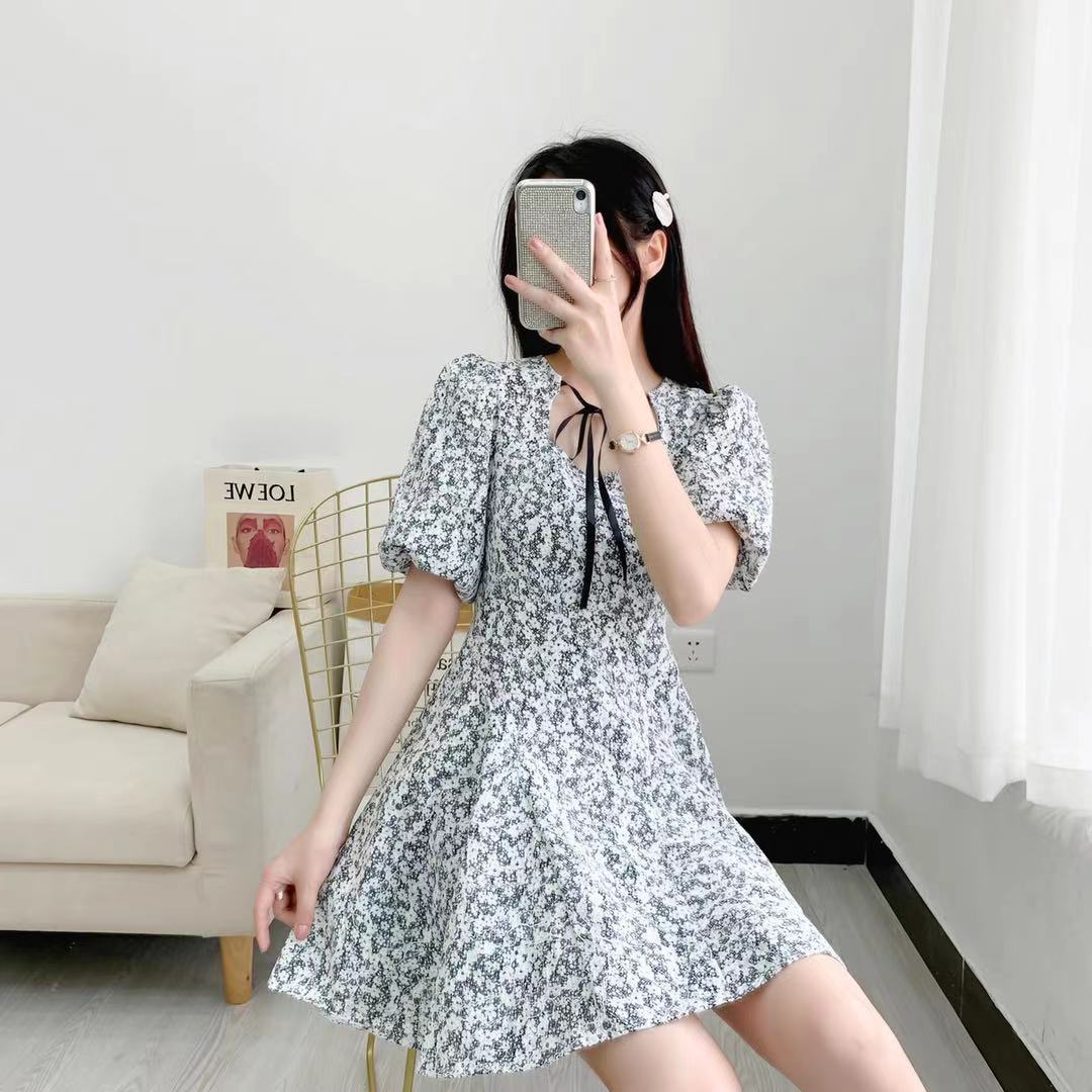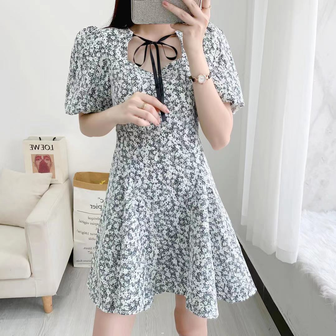 2021春夏新款法式系带休闲温柔碎花裙小清新收腰优雅气质连衣裙潮