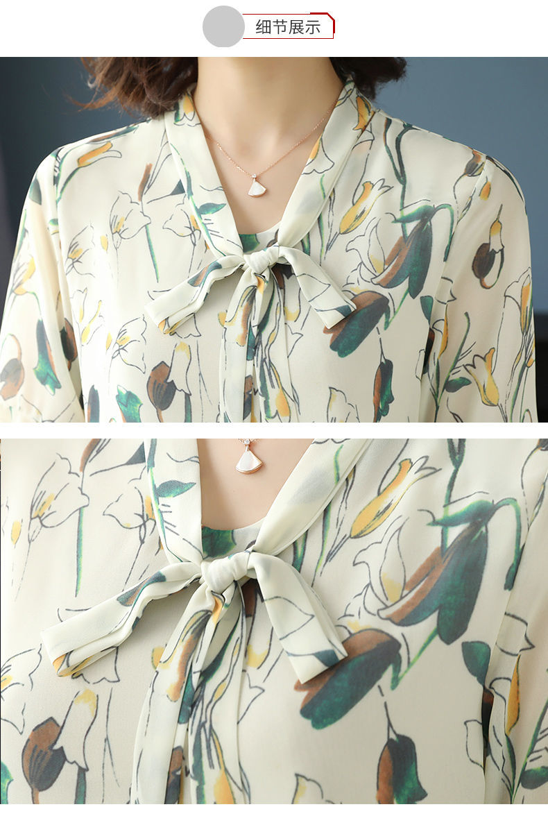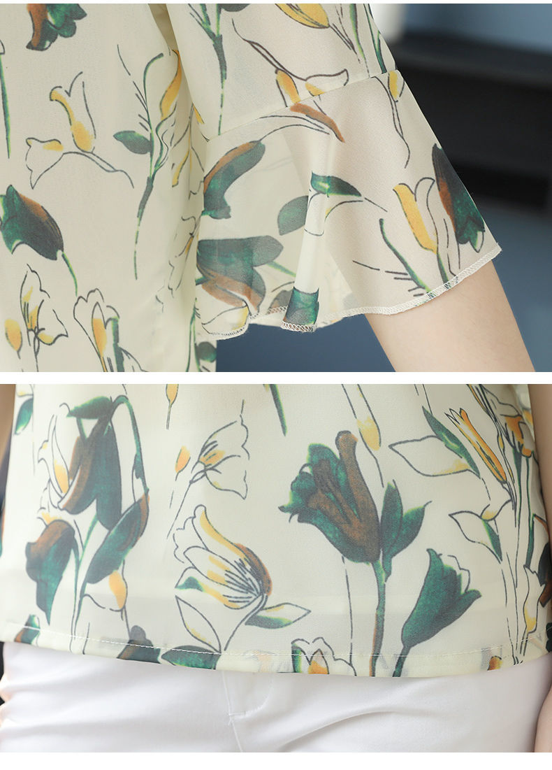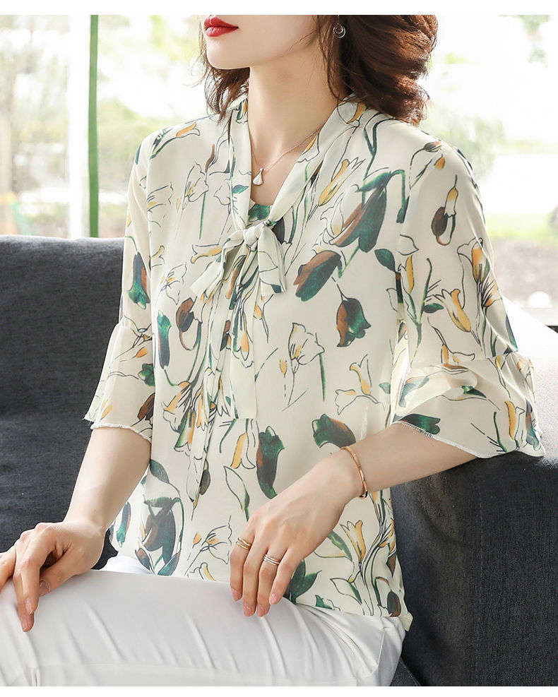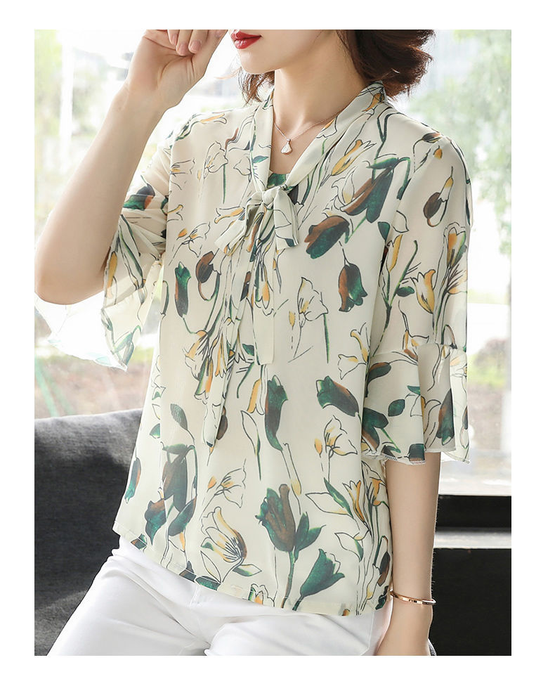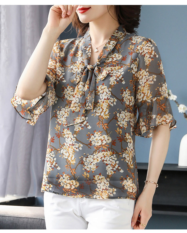 雪纺夏装洋气时尚碎花衬衫上衣中年女中老年女装短袖T恤妈妈装