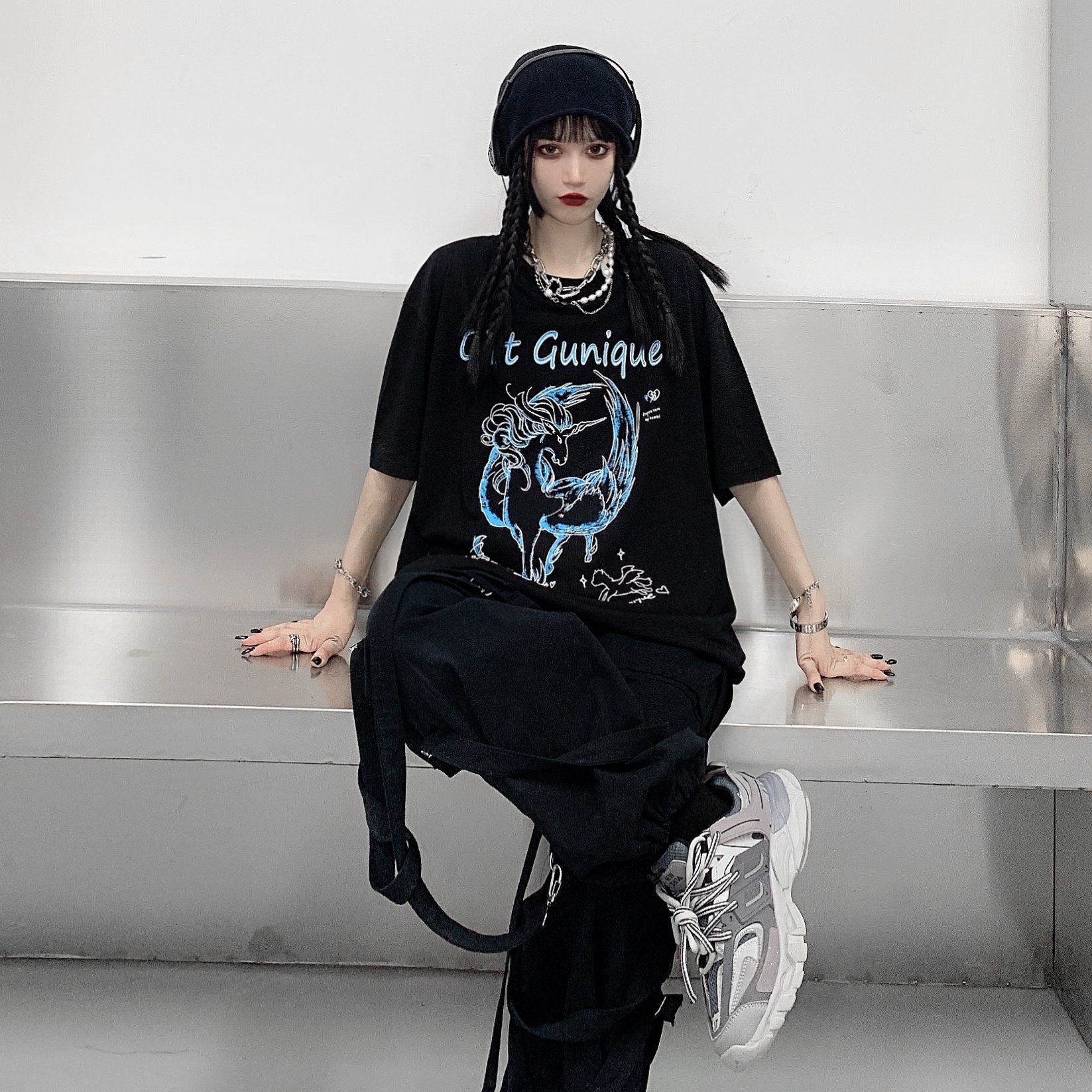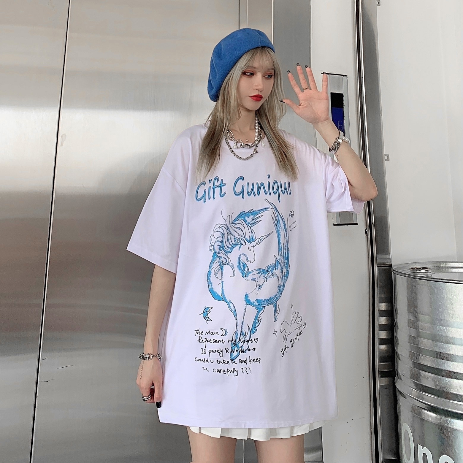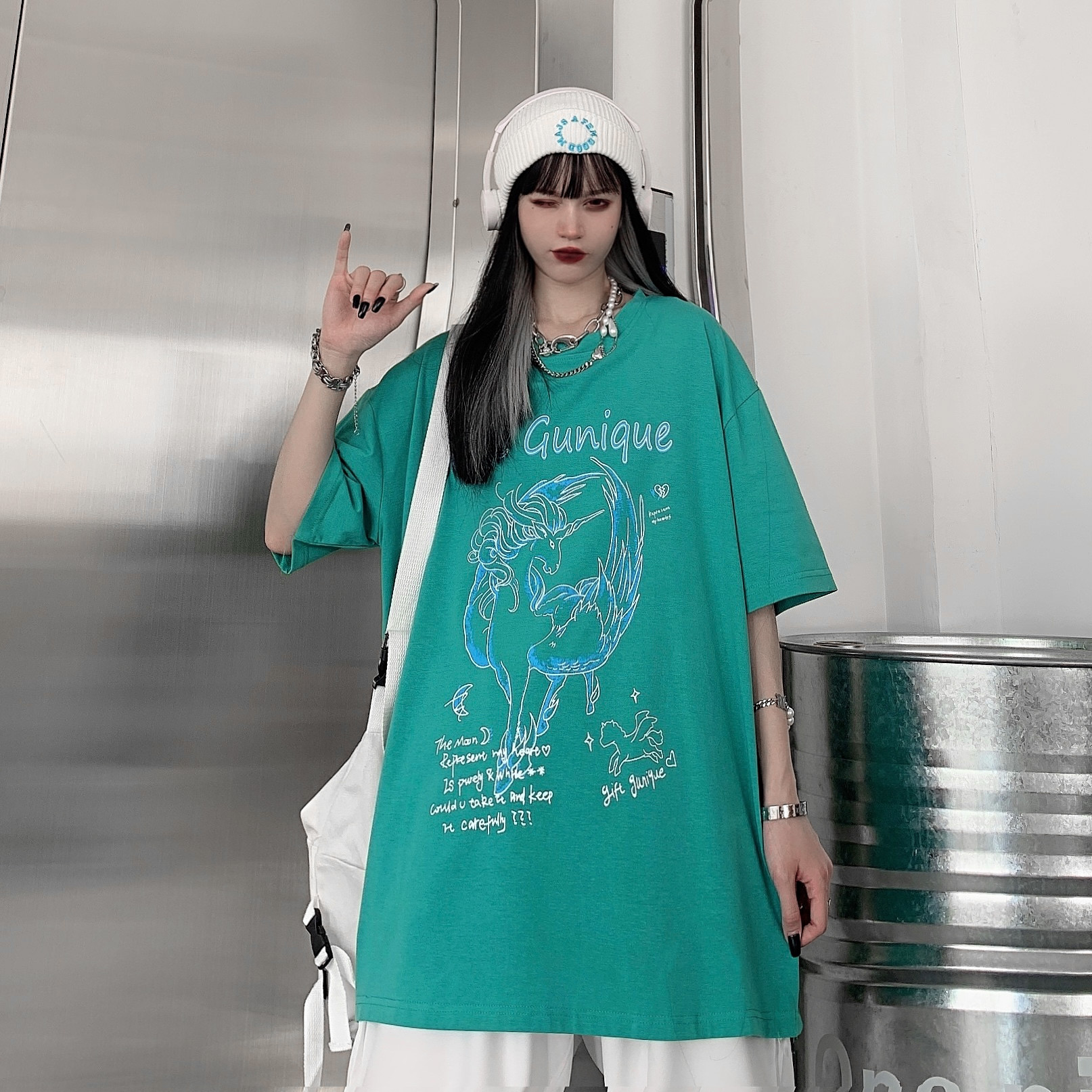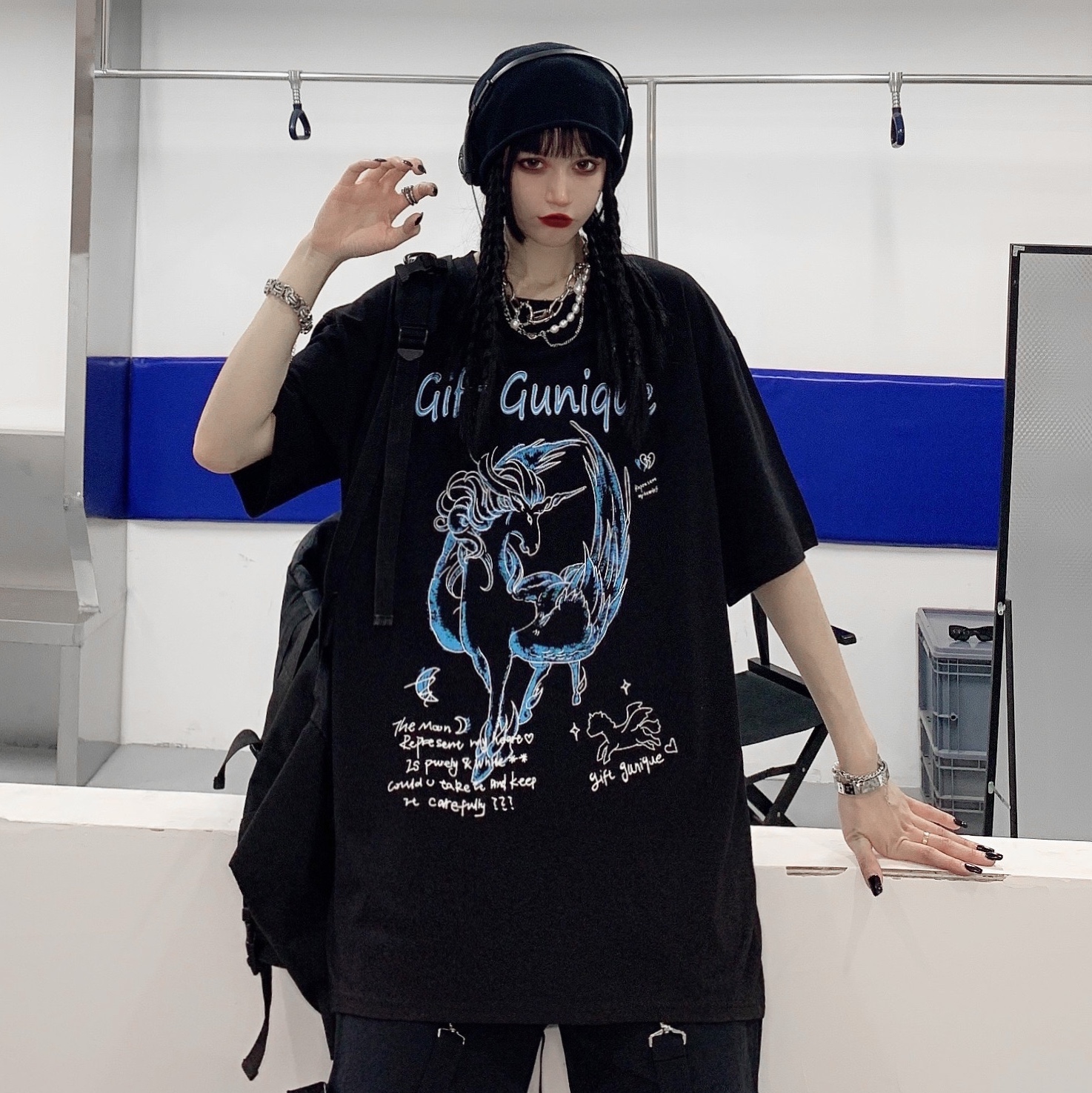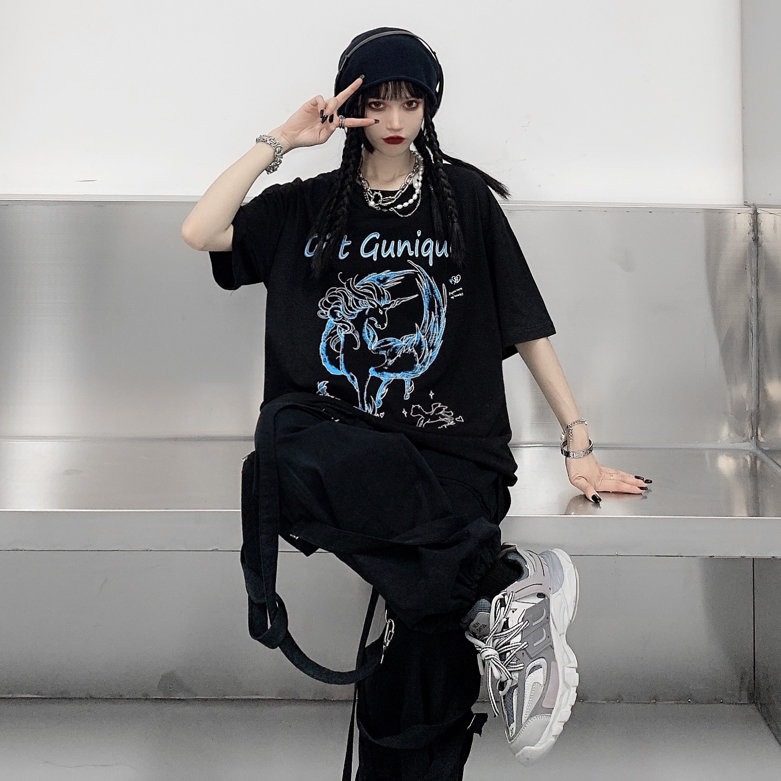 - 服装版型:宽松