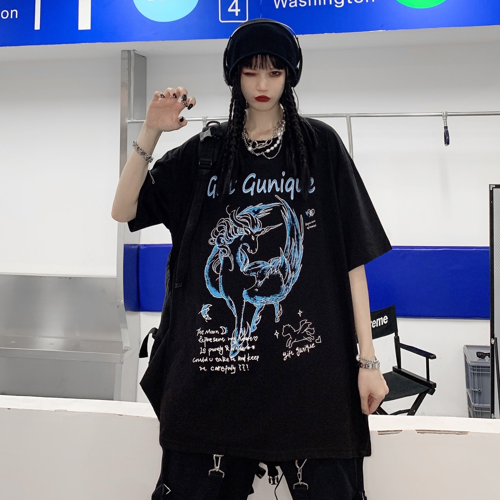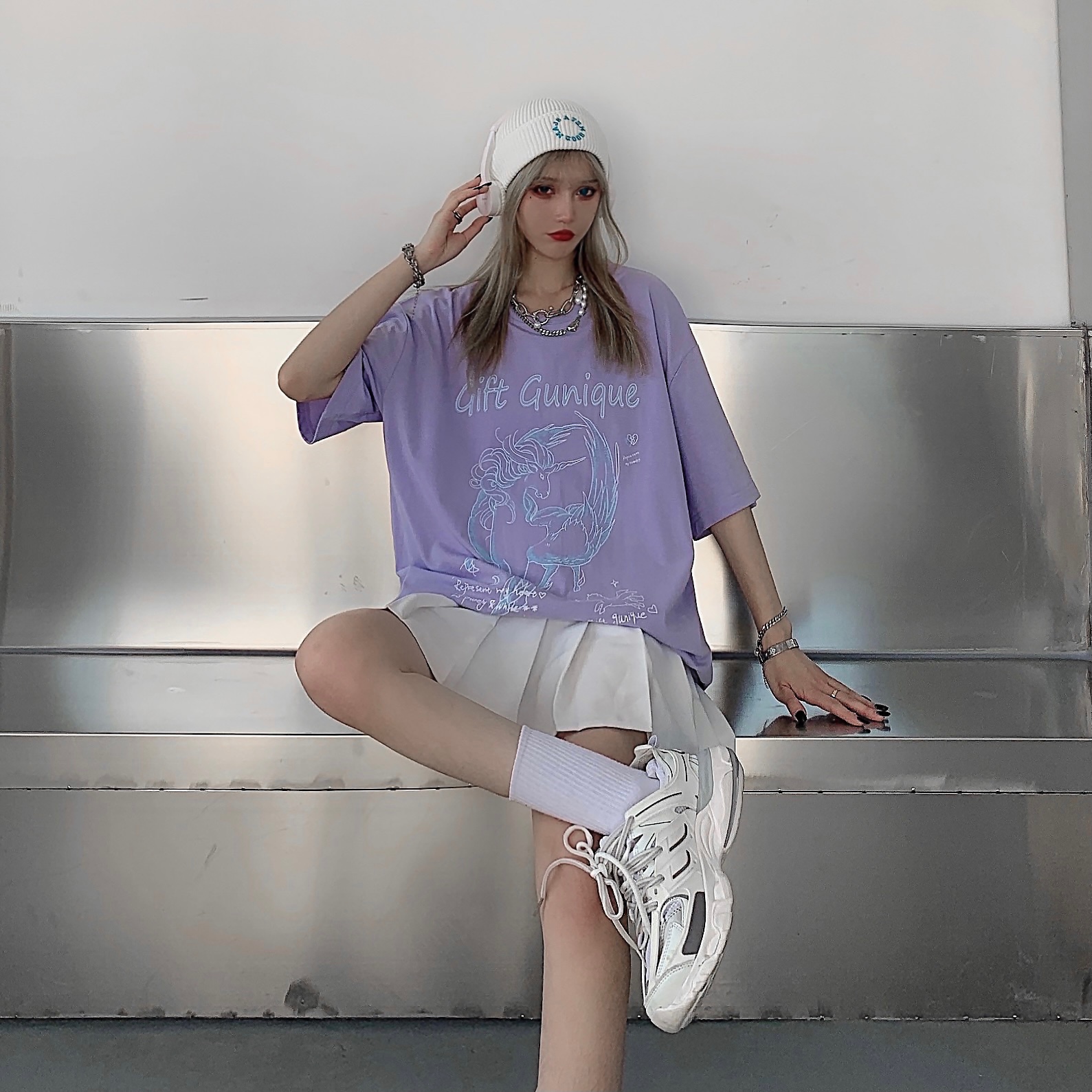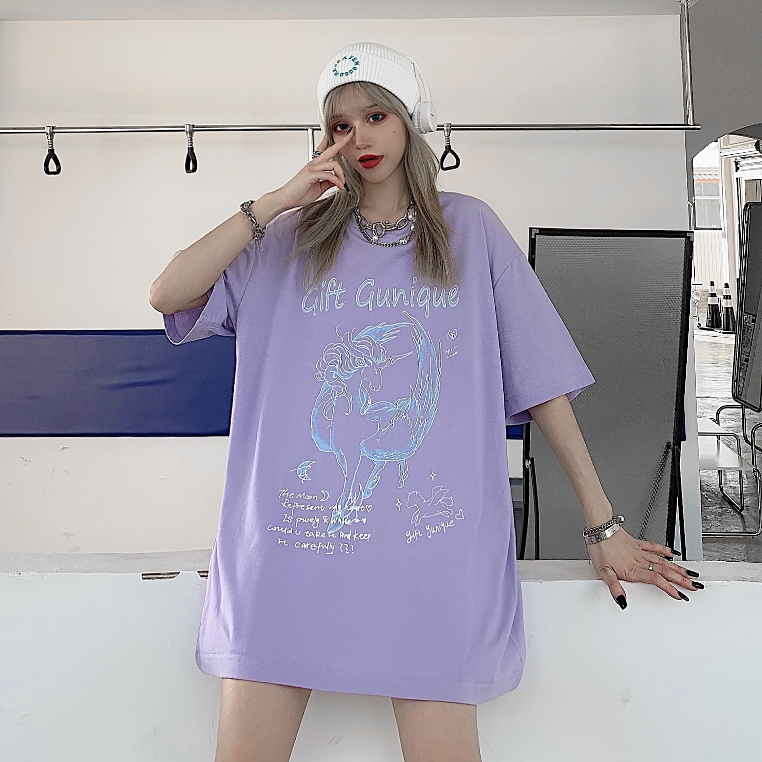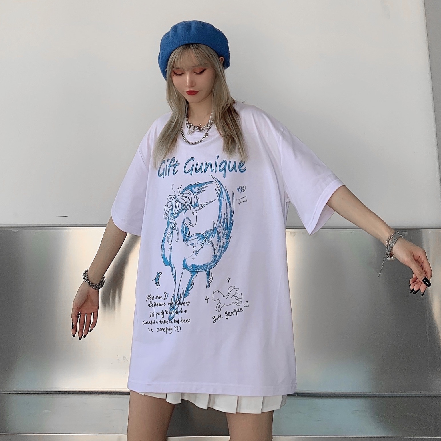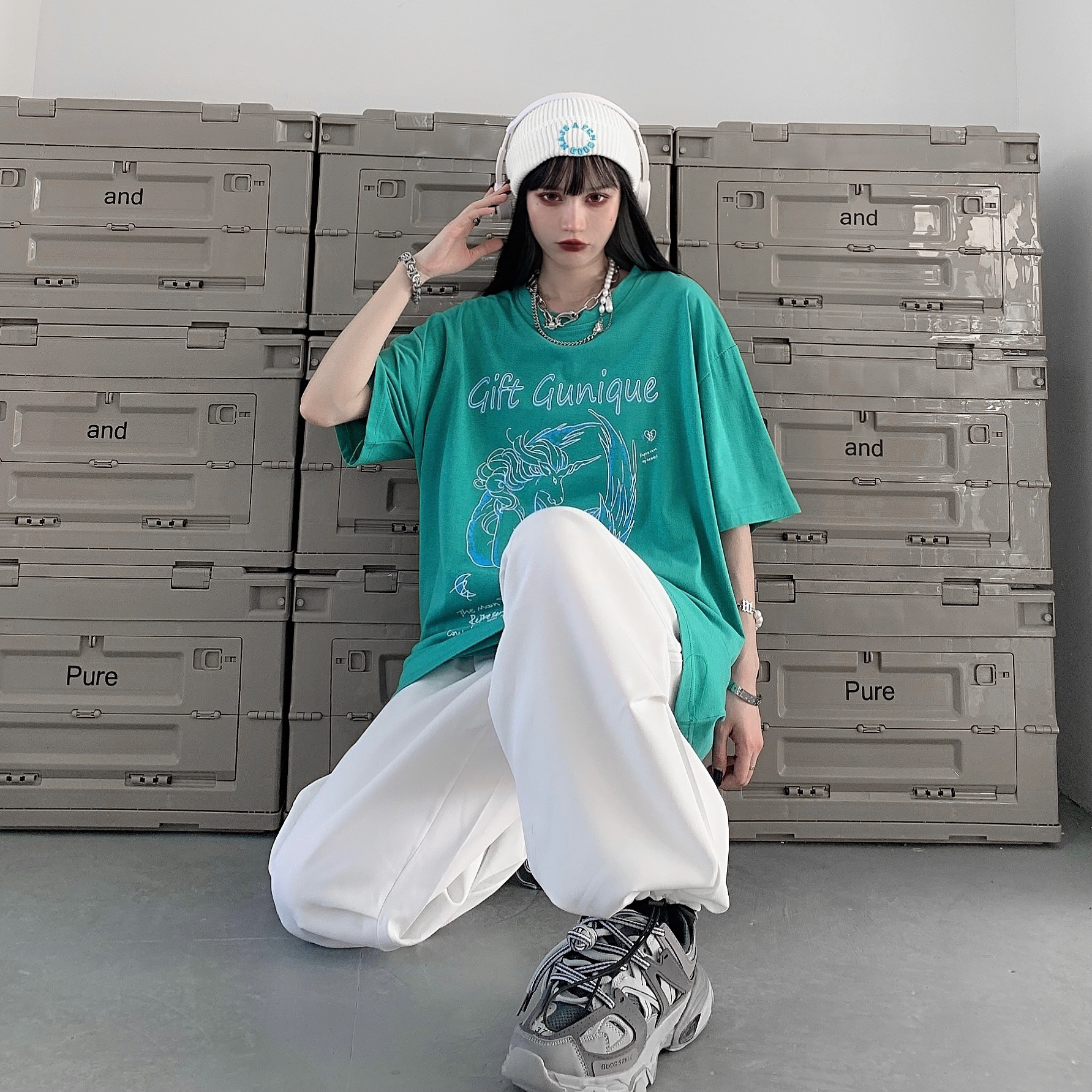 - 服装版型:宽松