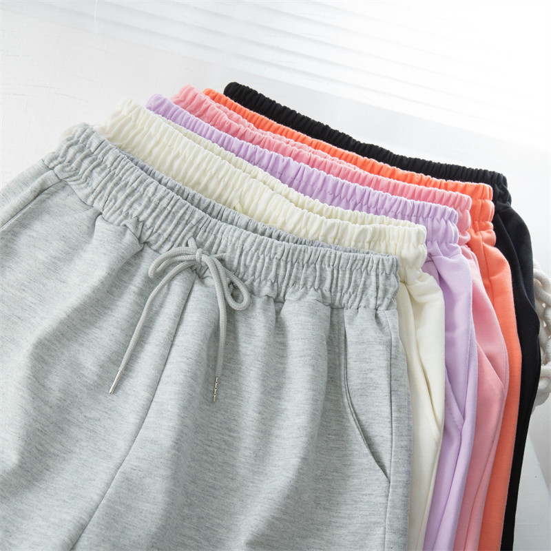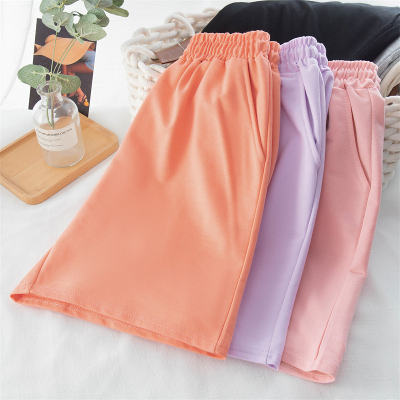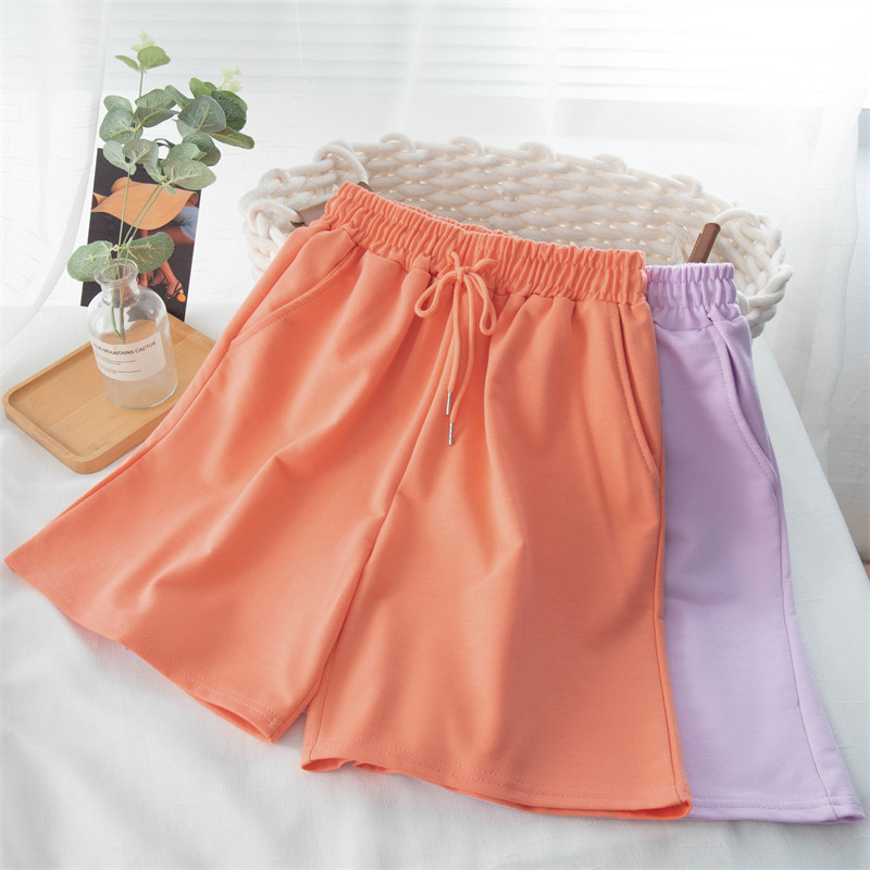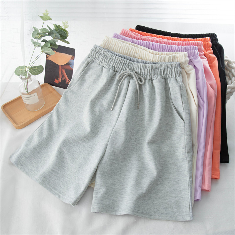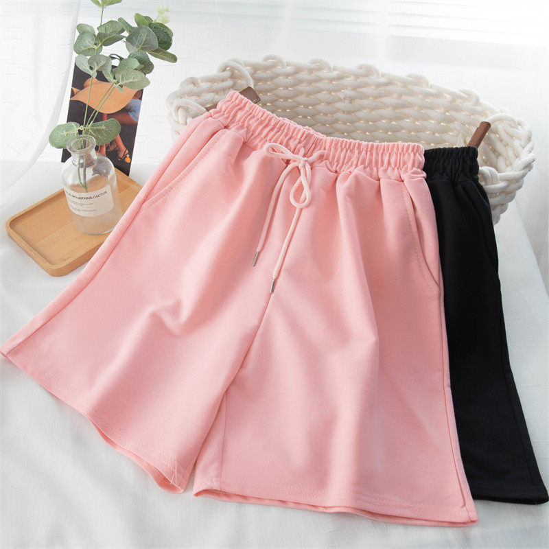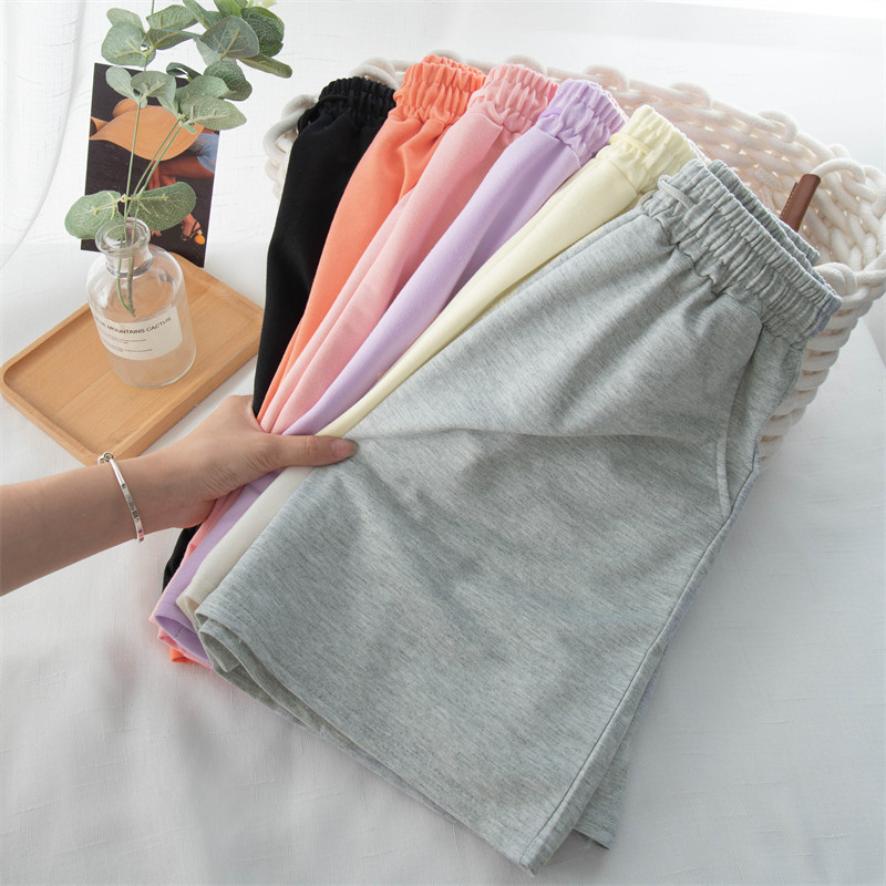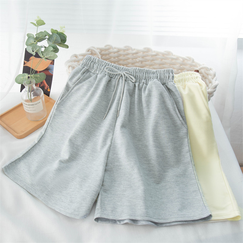 实拍 6535棉鱼鳞 直筒阔腿短裤女夏居家裤高腰宽松休闲运动裤
