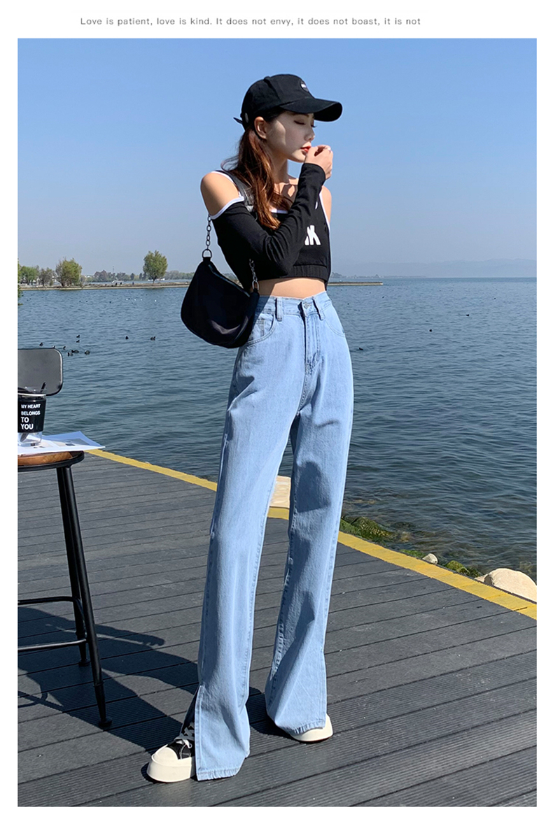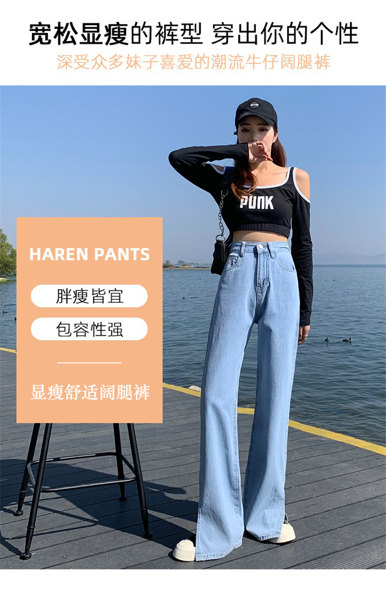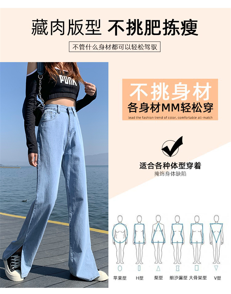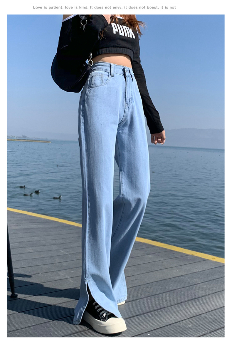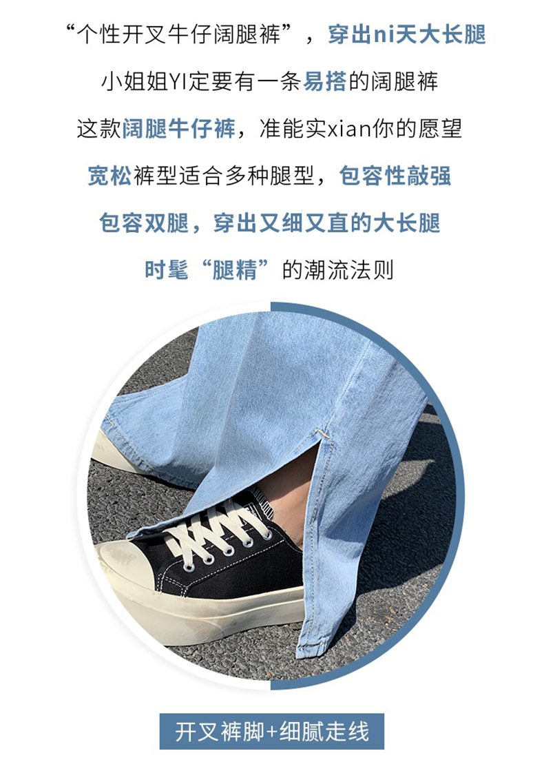 开叉阔腿牛仔裤女直筒宽松泫雅风高腰2021春夏新款垂感分叉拖地裤