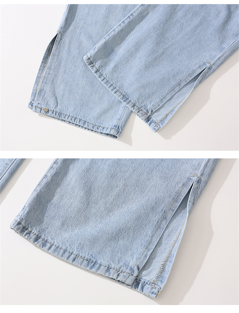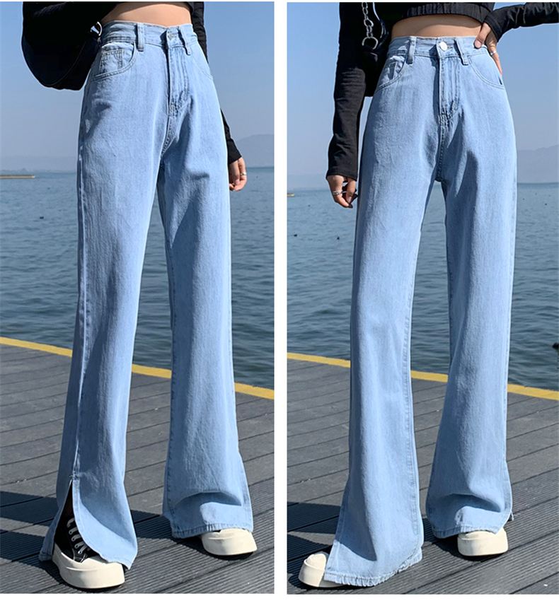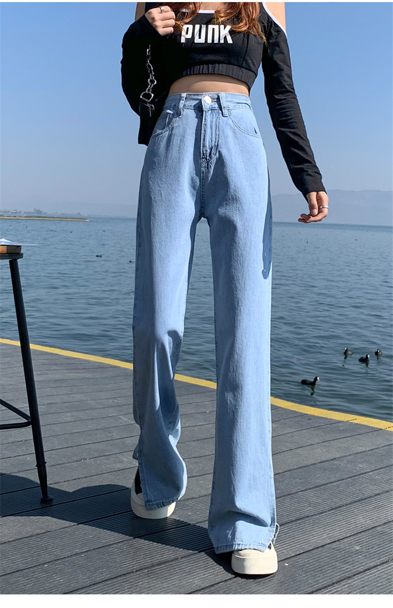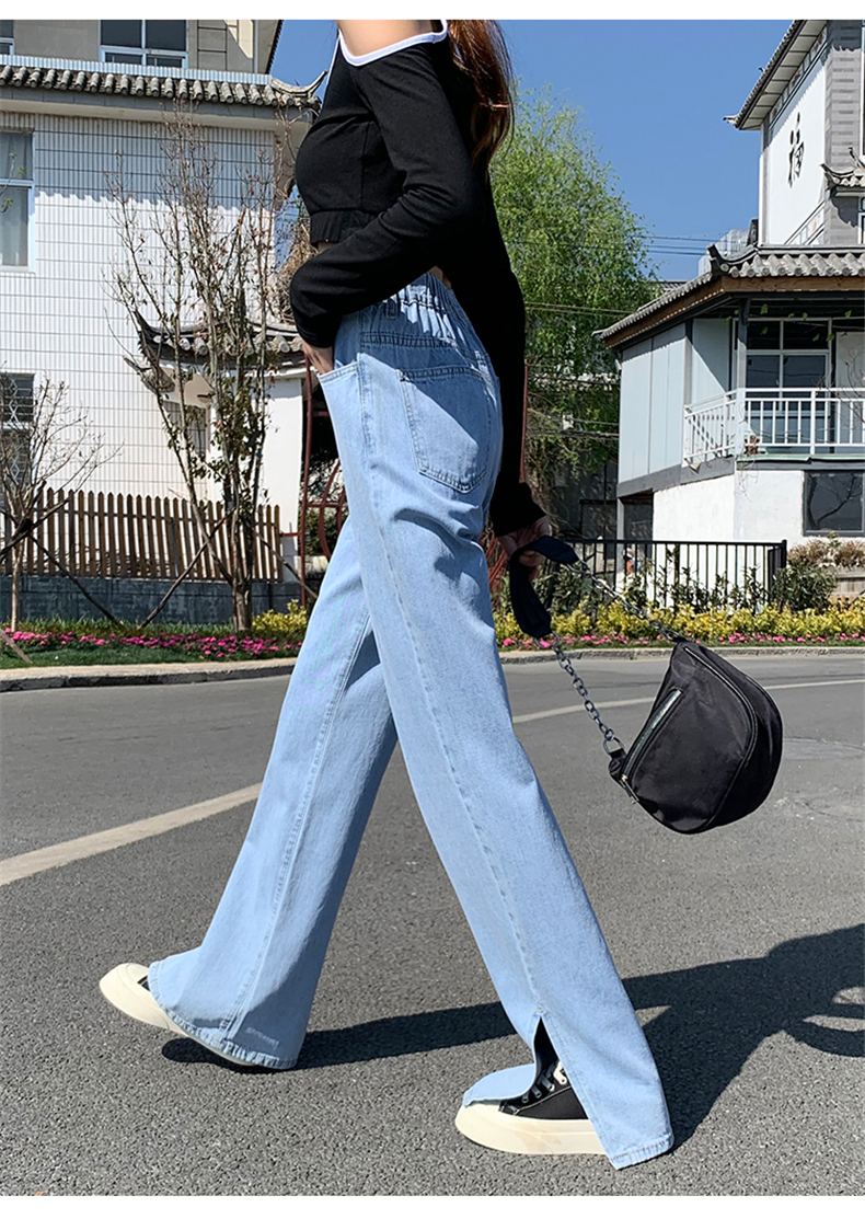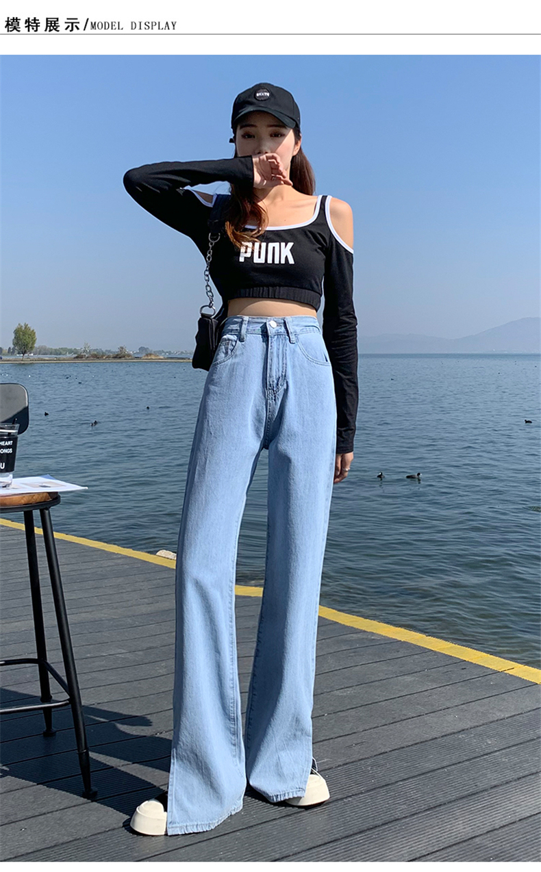 开叉阔腿牛仔裤女直筒宽松泫雅风高腰2021春夏新款垂感分叉拖地裤