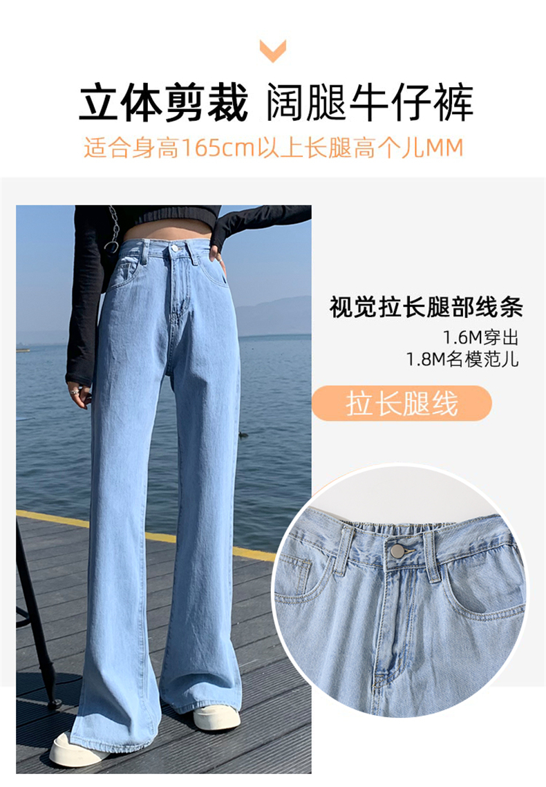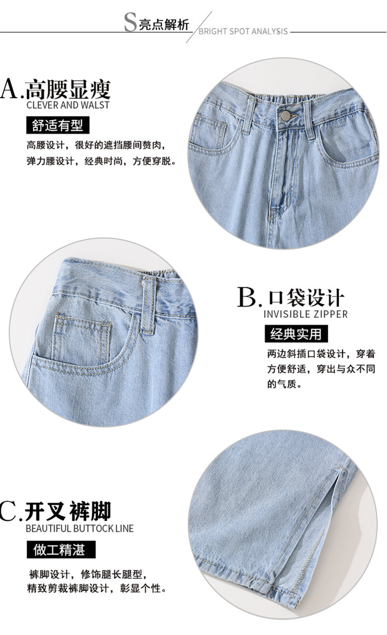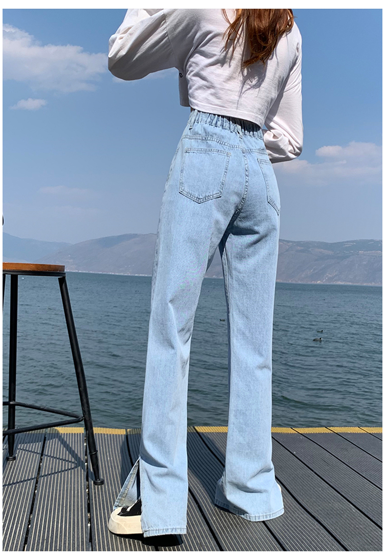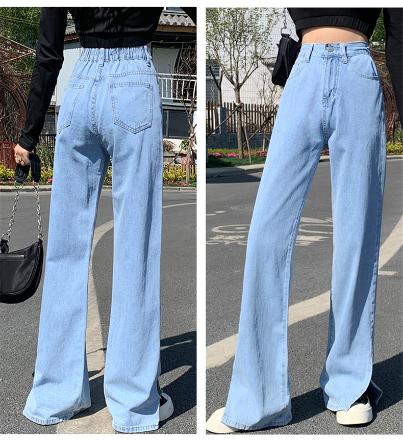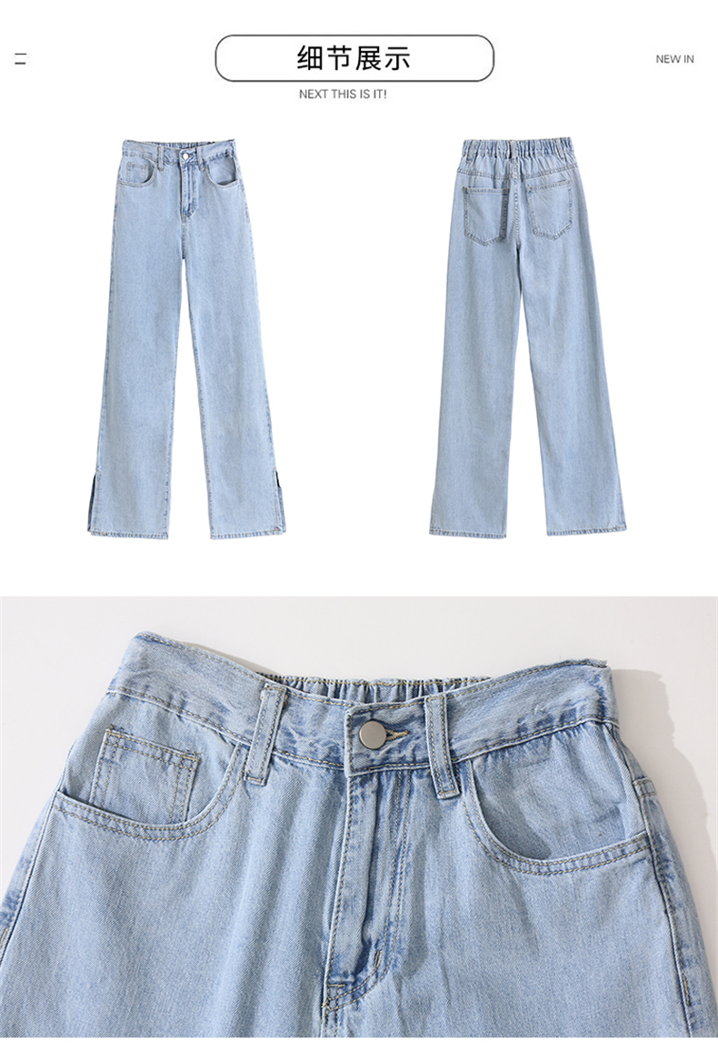 开叉阔腿牛仔裤女直筒宽松泫雅风高腰2021春夏新款垂感分叉拖地裤