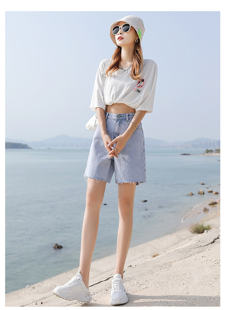 实拍限价49,2夏新款小个子五分裤高腰直筒chic港味宽松阔腿裤夏