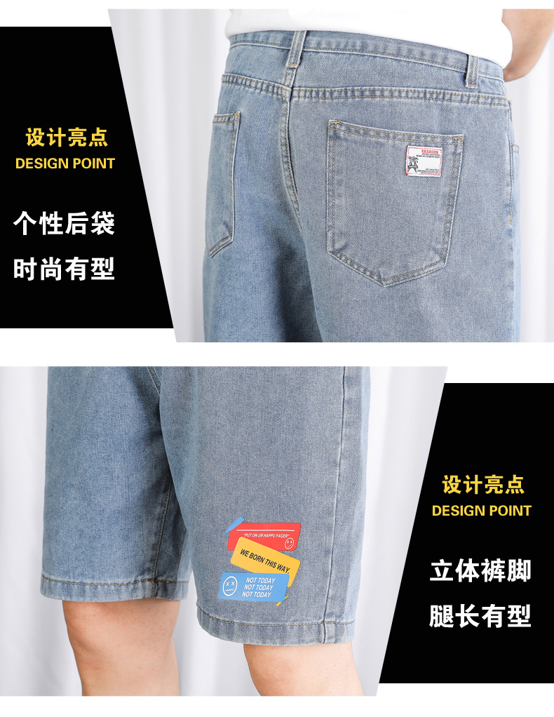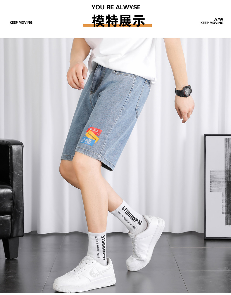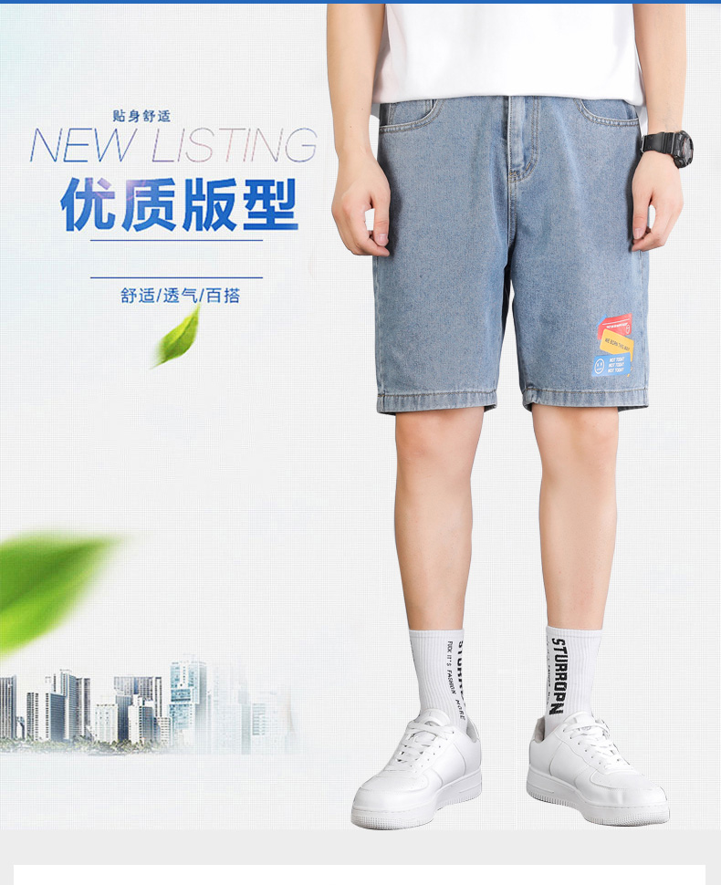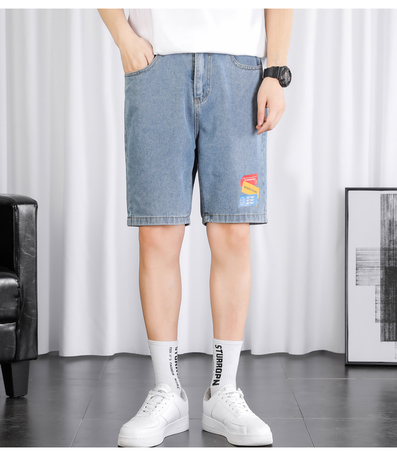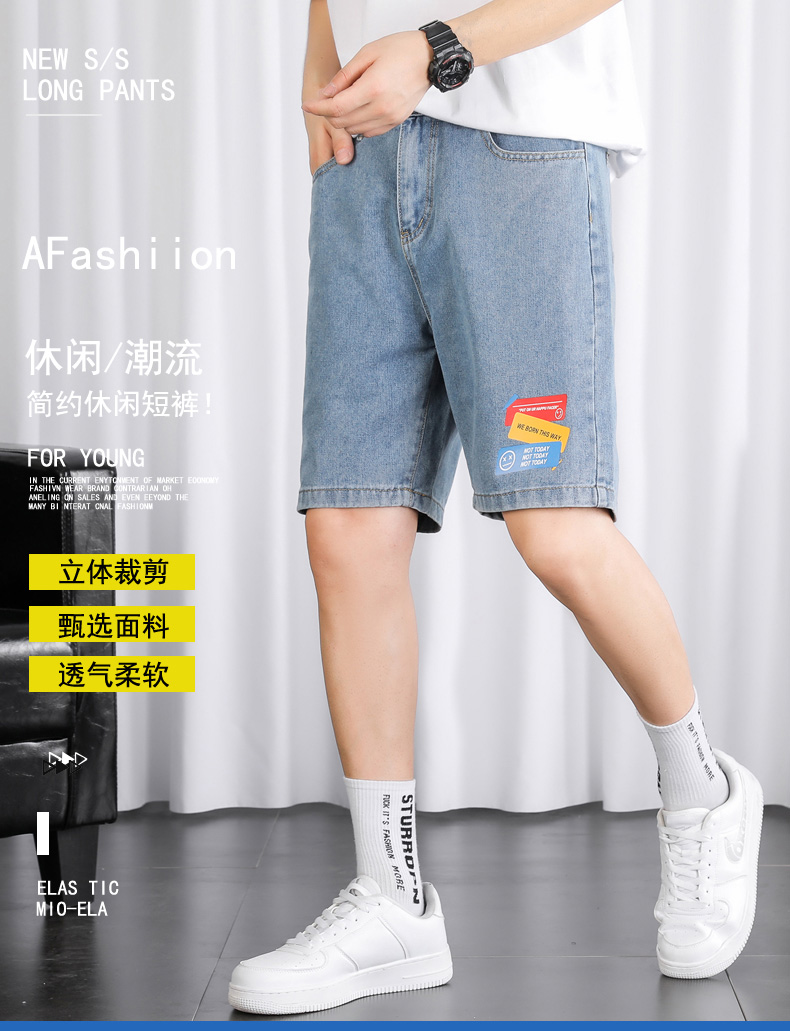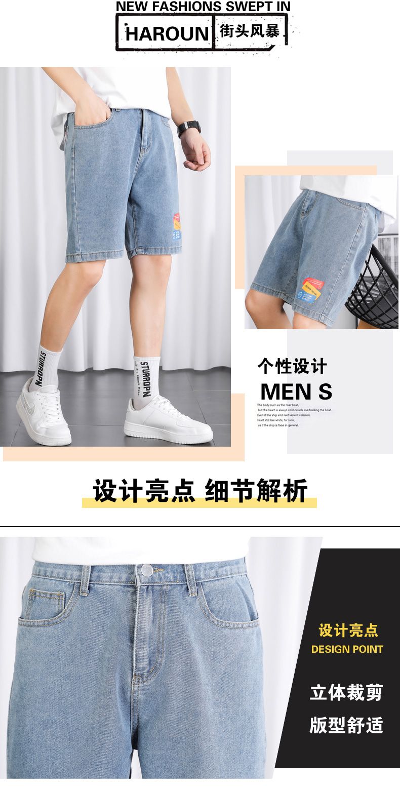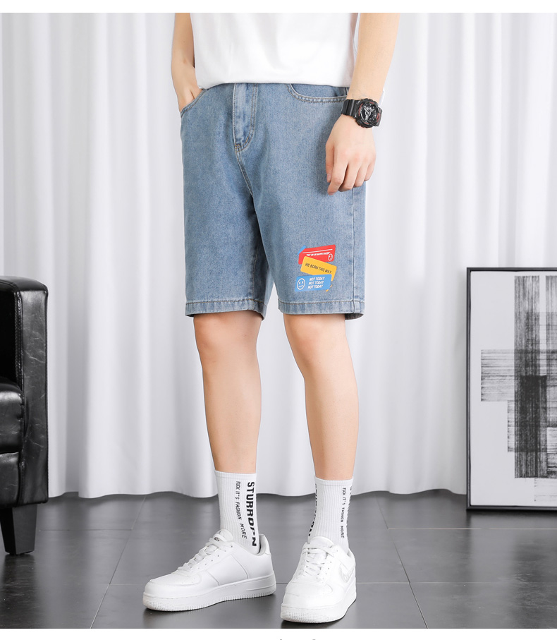 2021夏季新款牛仔学院风青年百搭短裤外穿港风潮流印花时尚五分裤