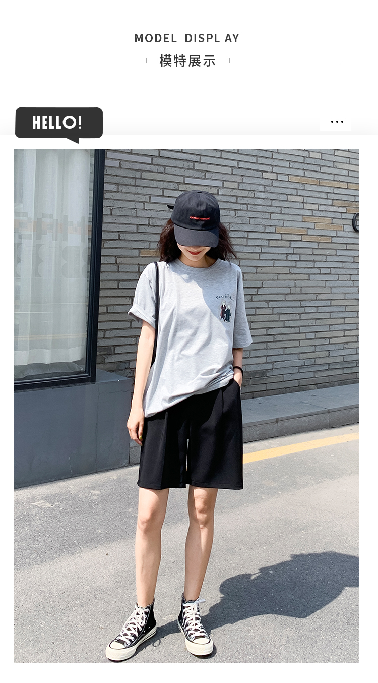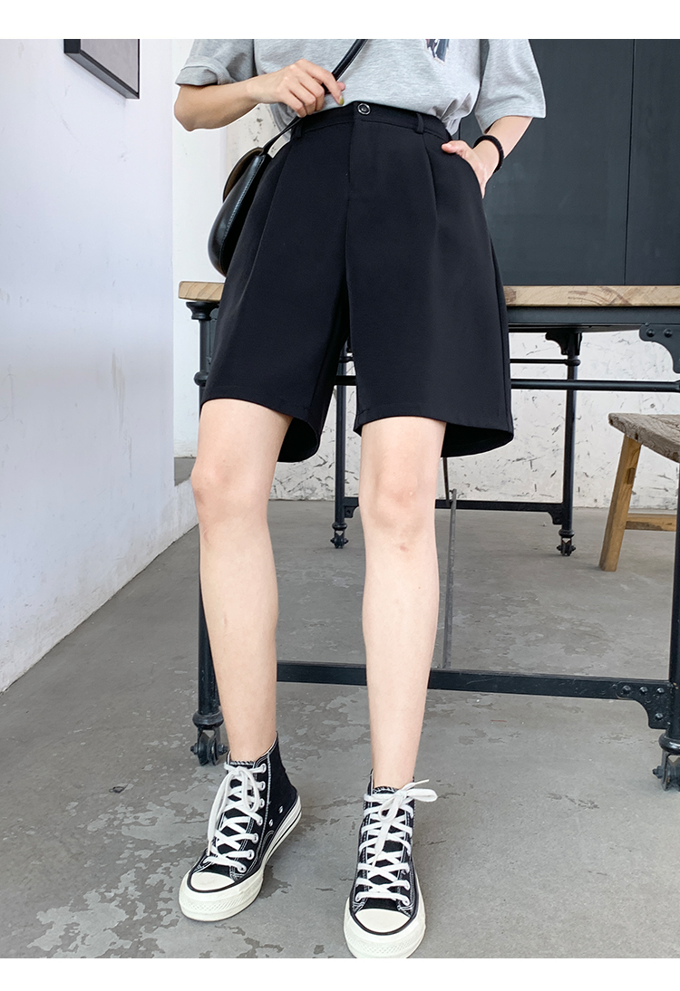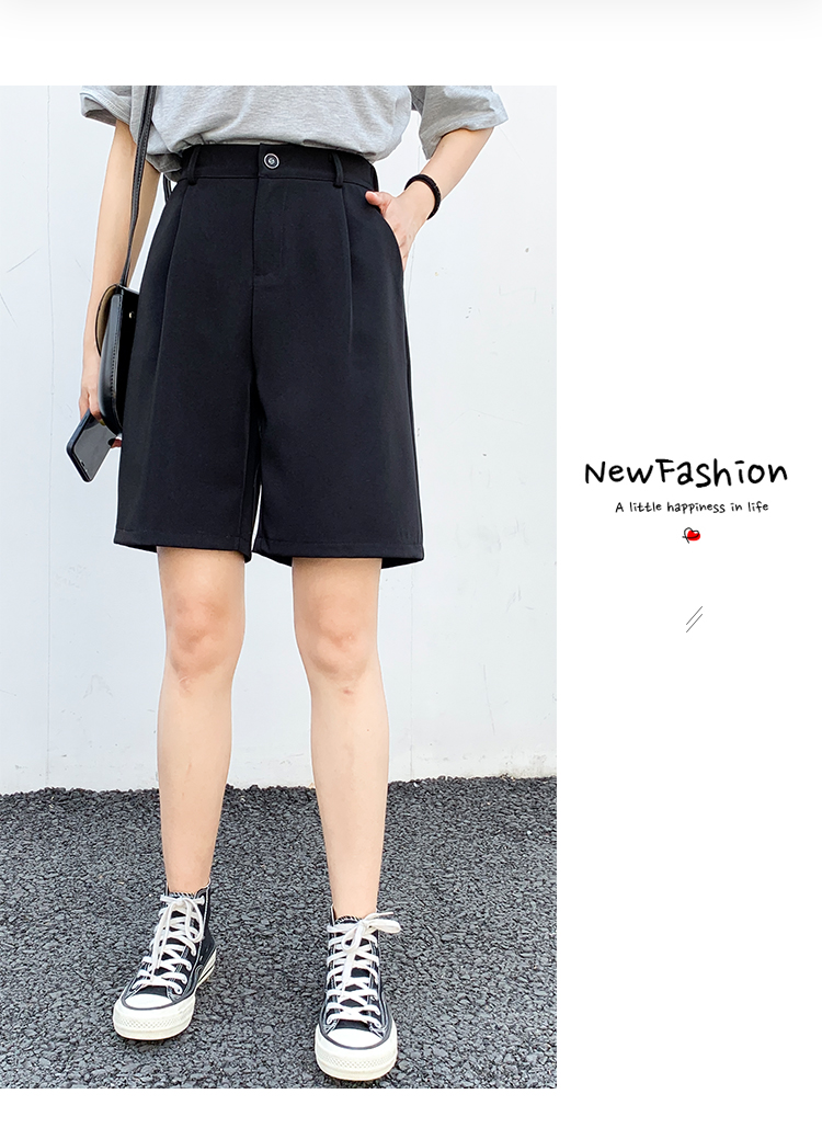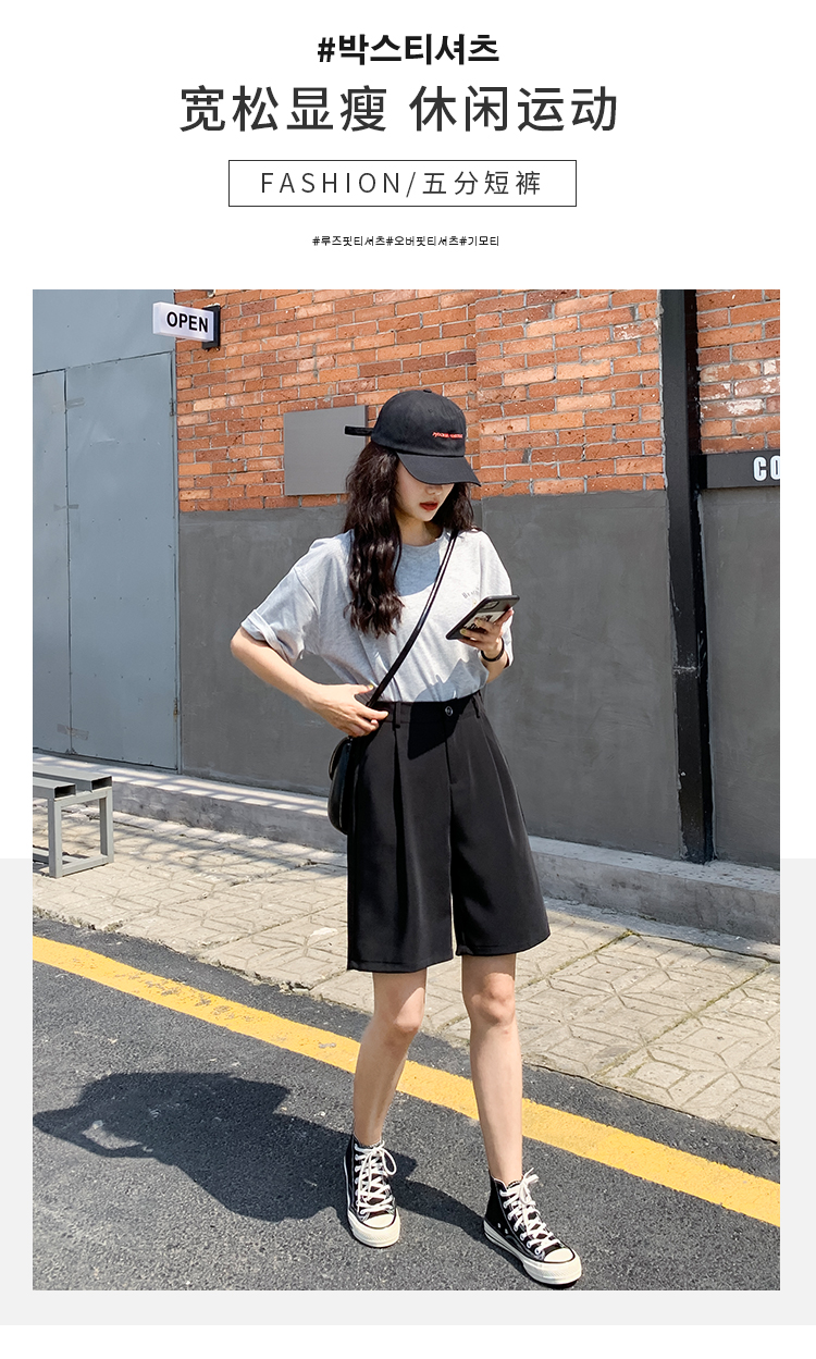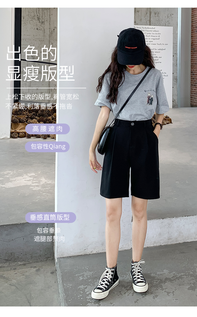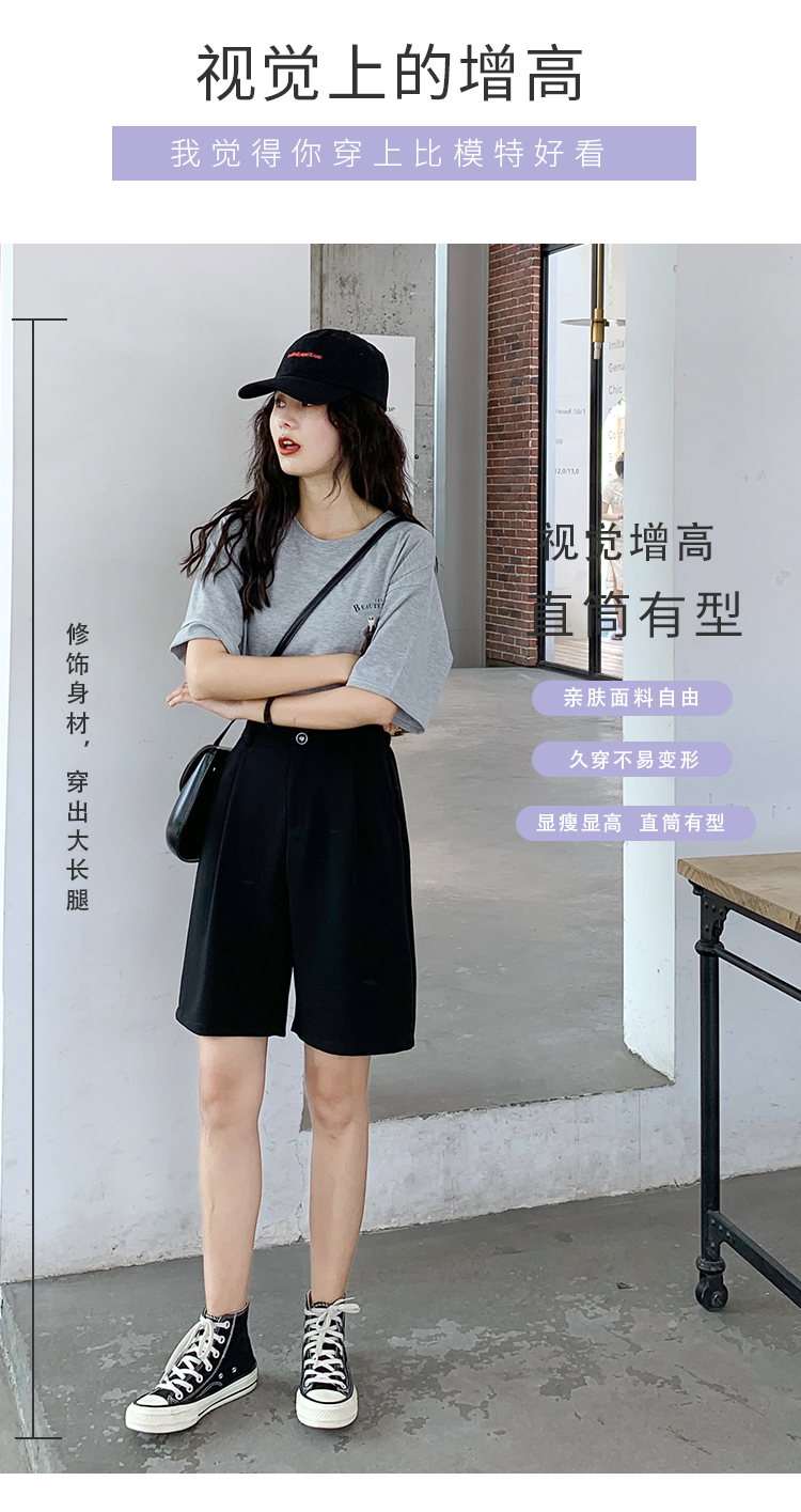 短裤实拍2021新款夏季韩版五分裤高腰松紧腰运动西裤黑色女装