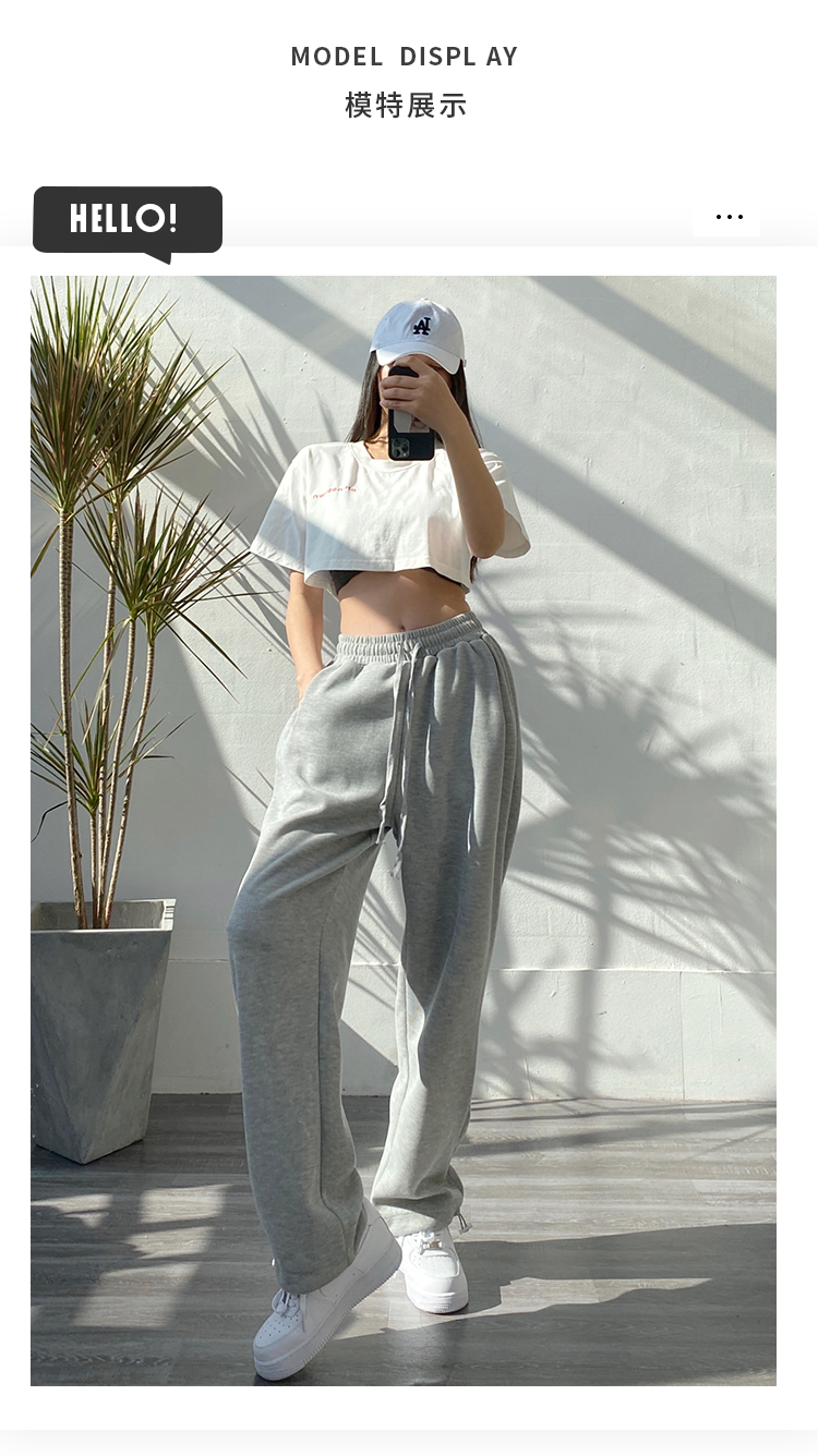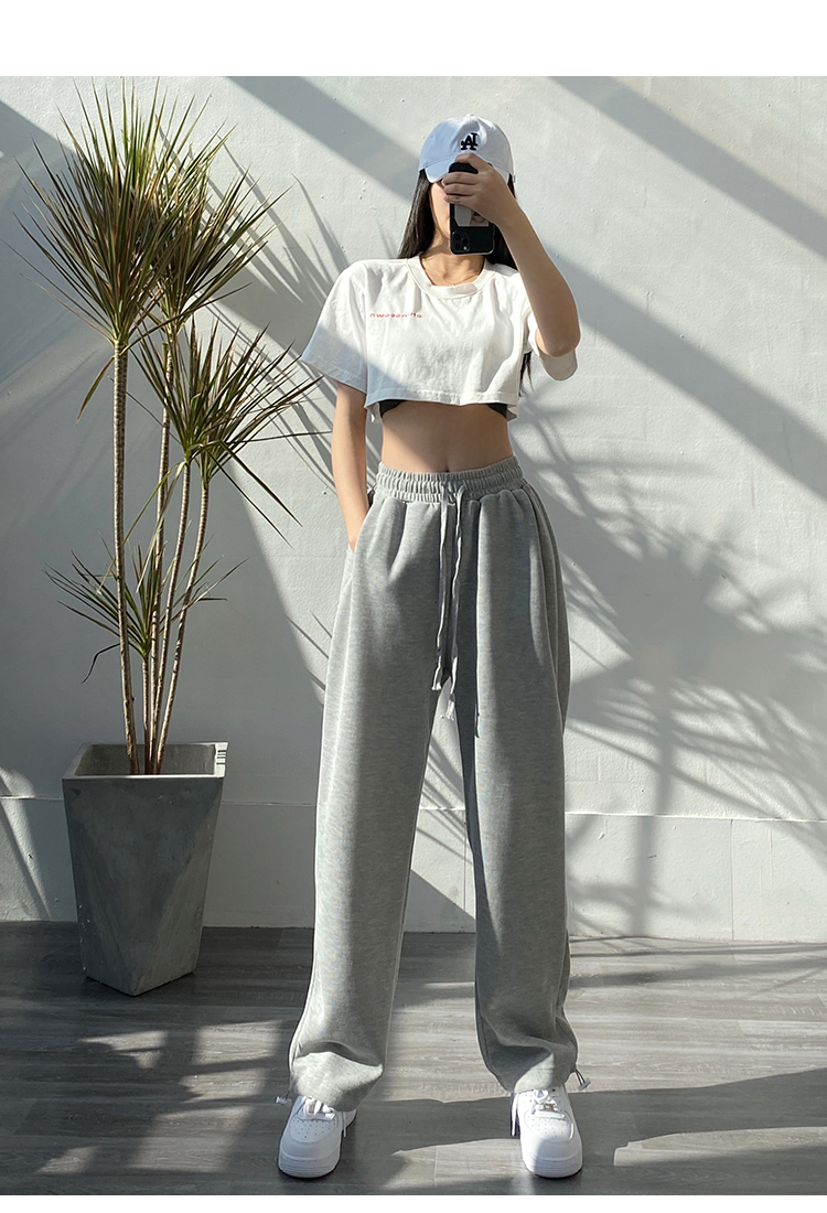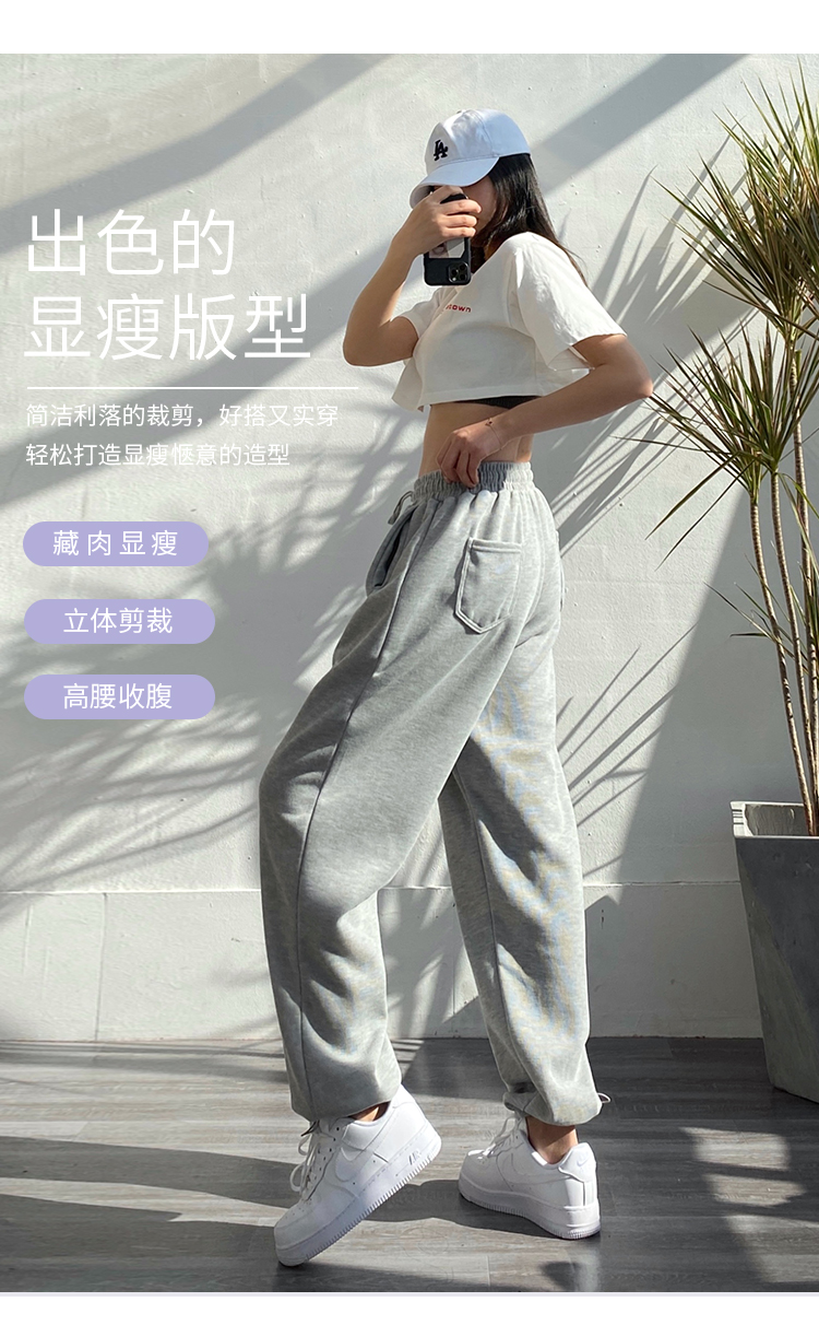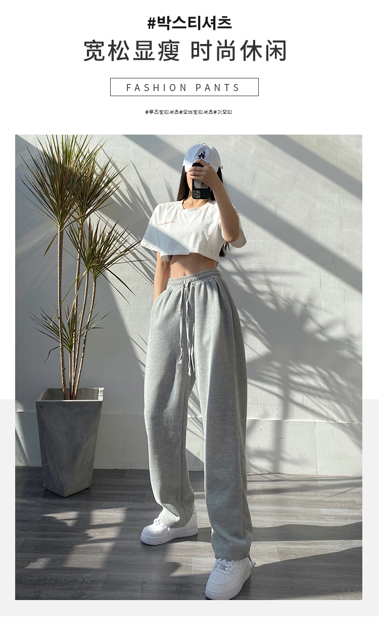 长裤实拍2021新品绑带棉中腰高弹力街头潮人宽松型直筒裤休闲裤女