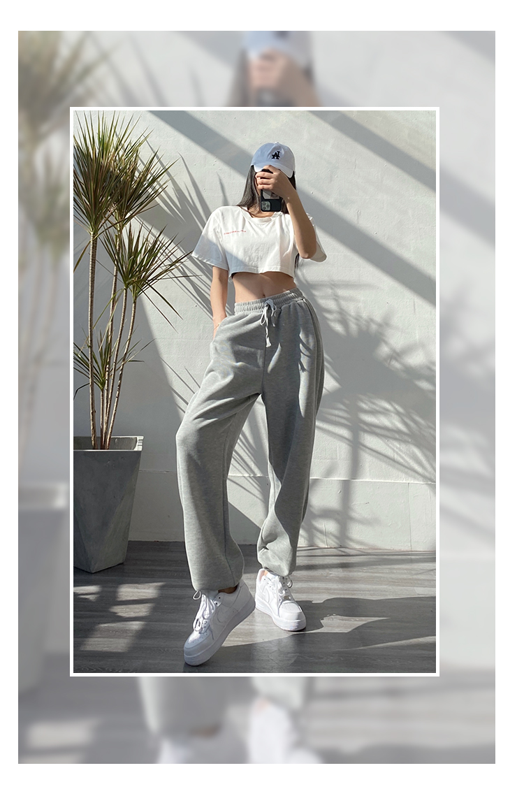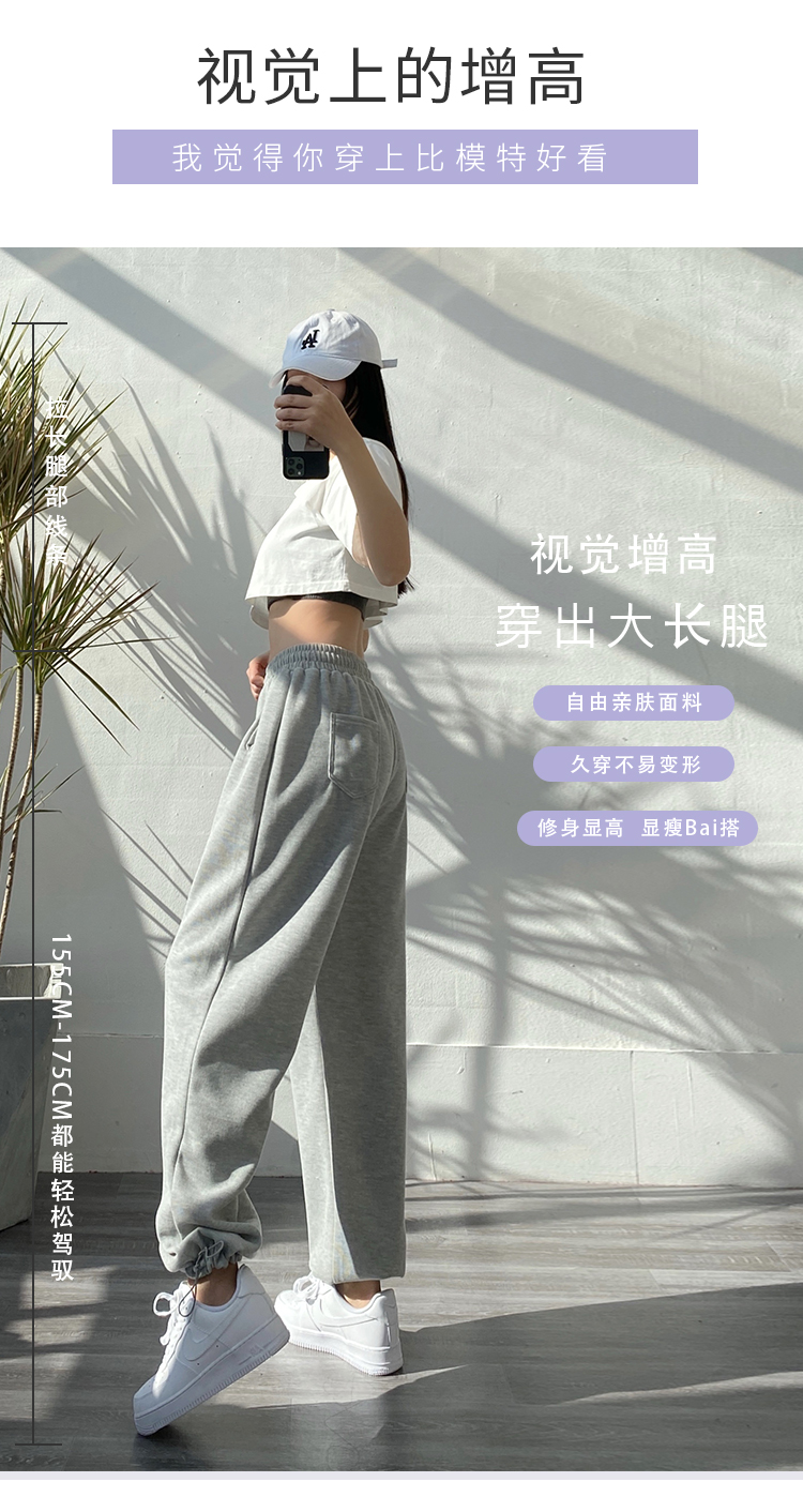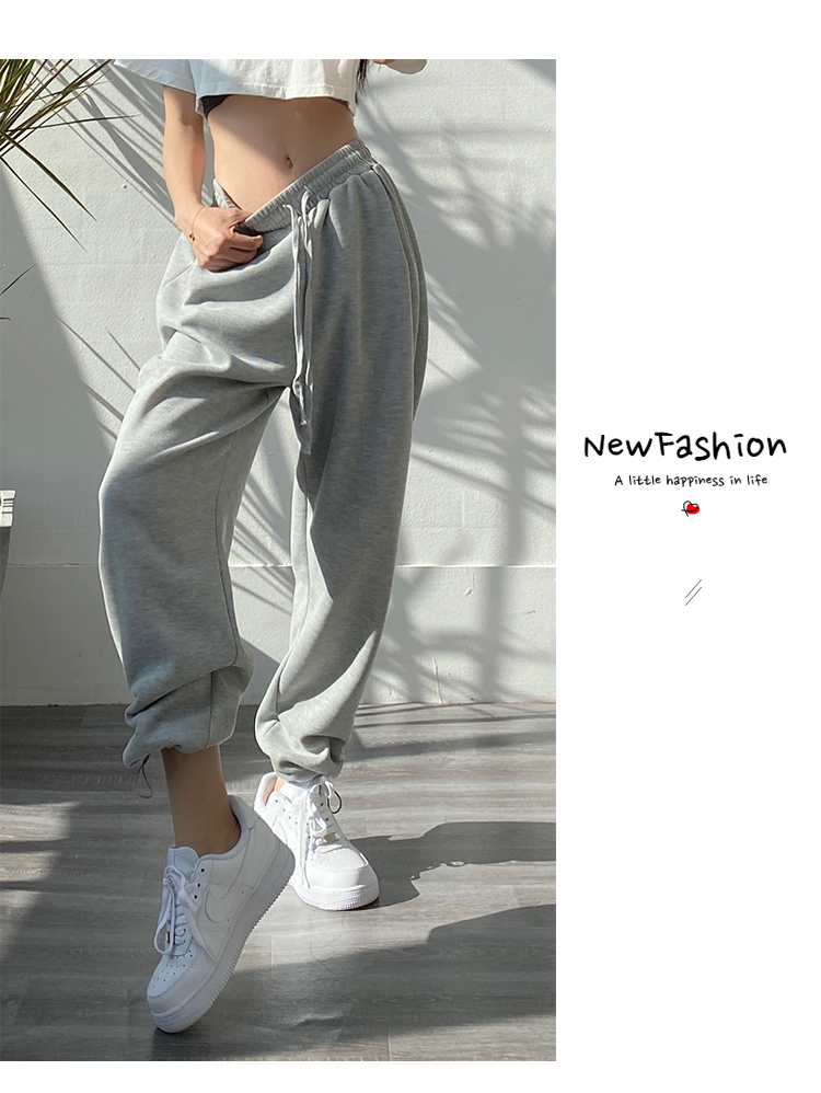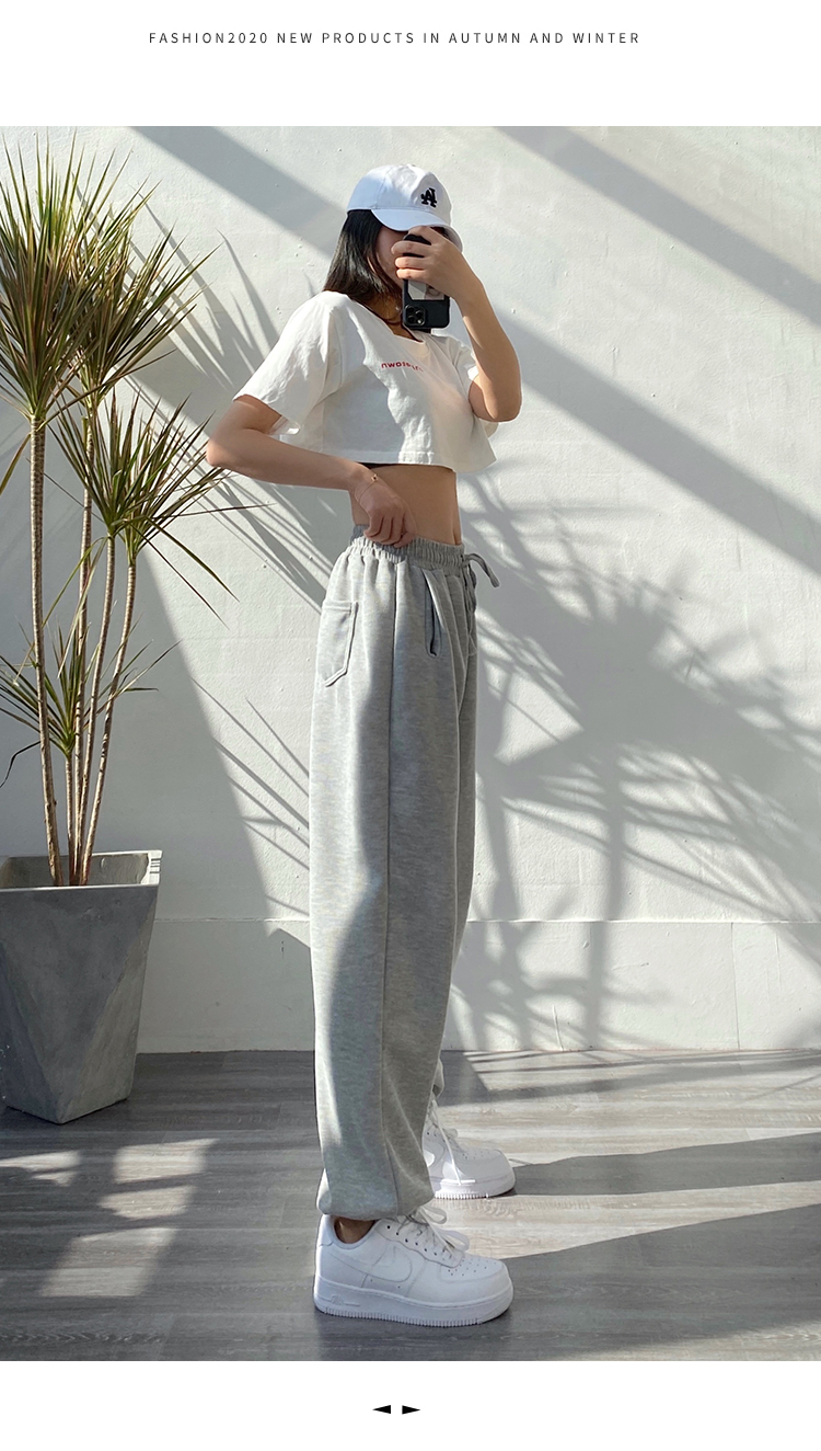 长裤实拍2021新品绑带棉中腰高弹力街头潮人宽松型直筒裤休闲裤女