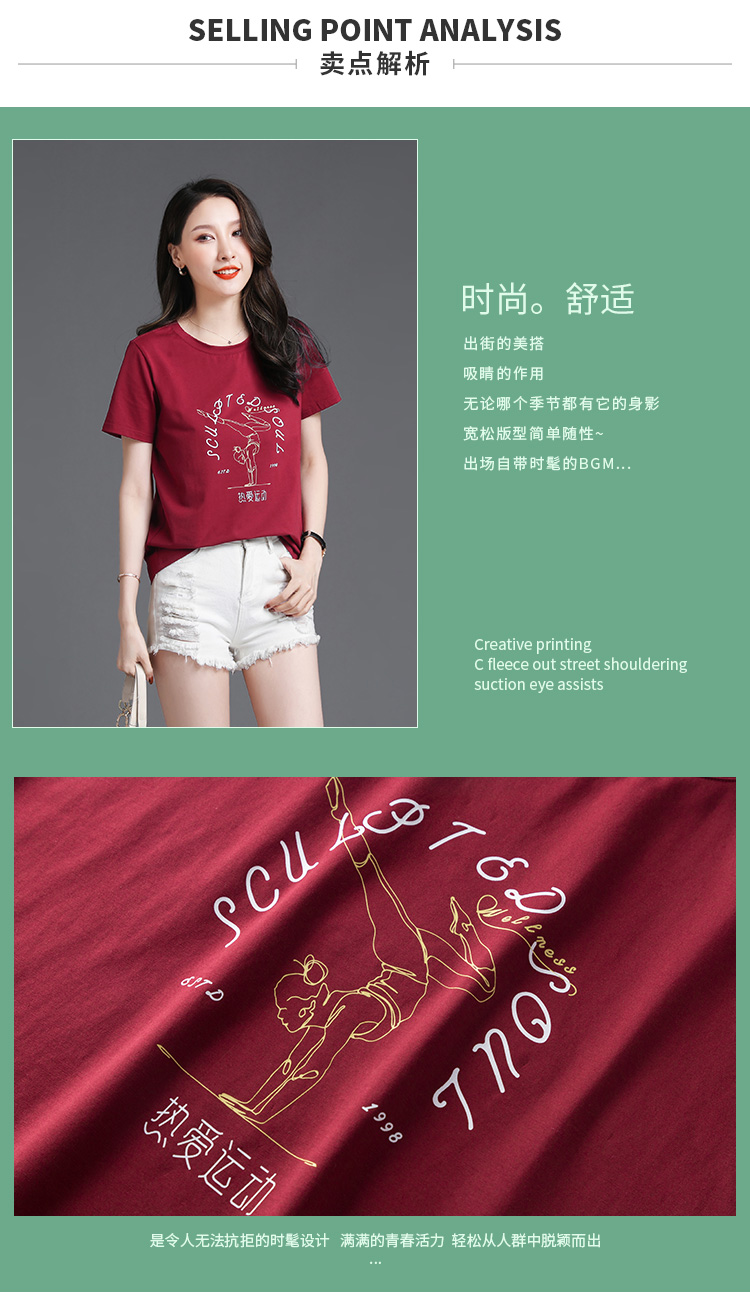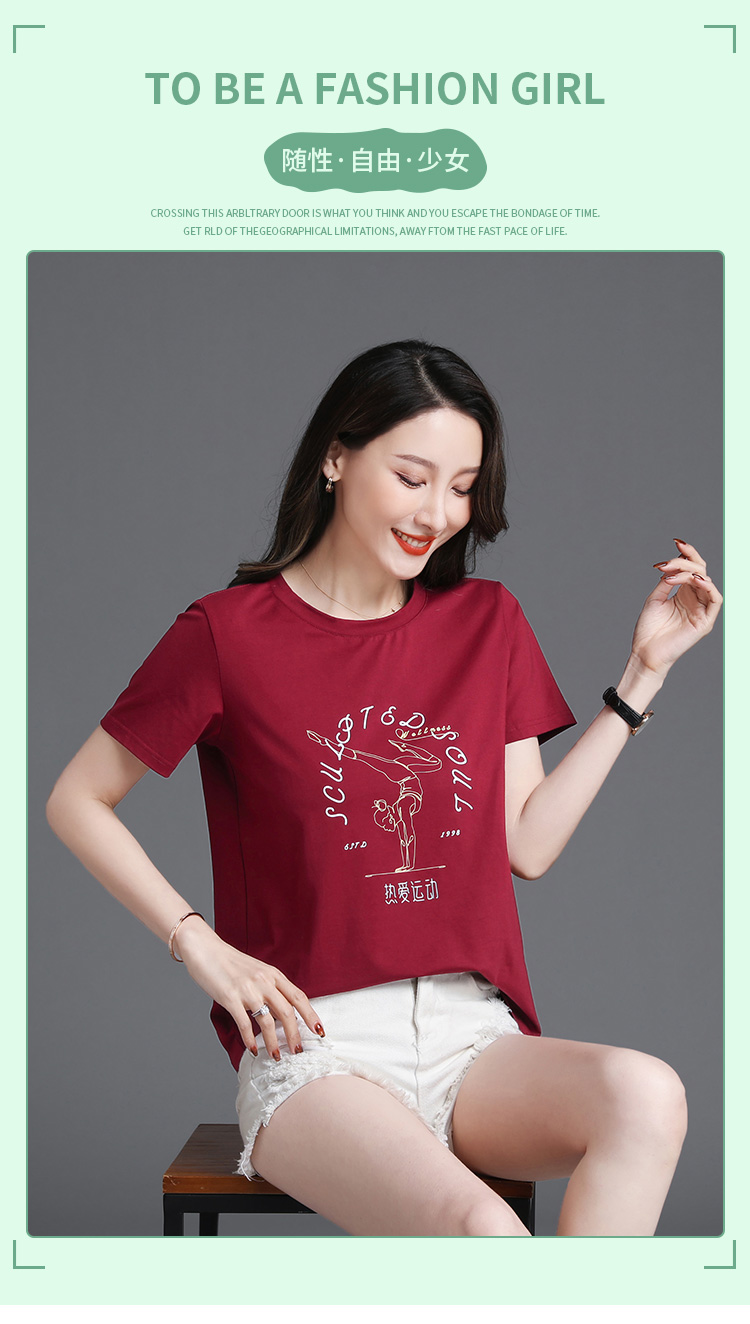 常规短袖 实拍2021夏新款印花字母人物时尚休闲t恤100%棉宽松女装