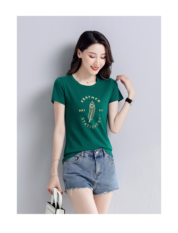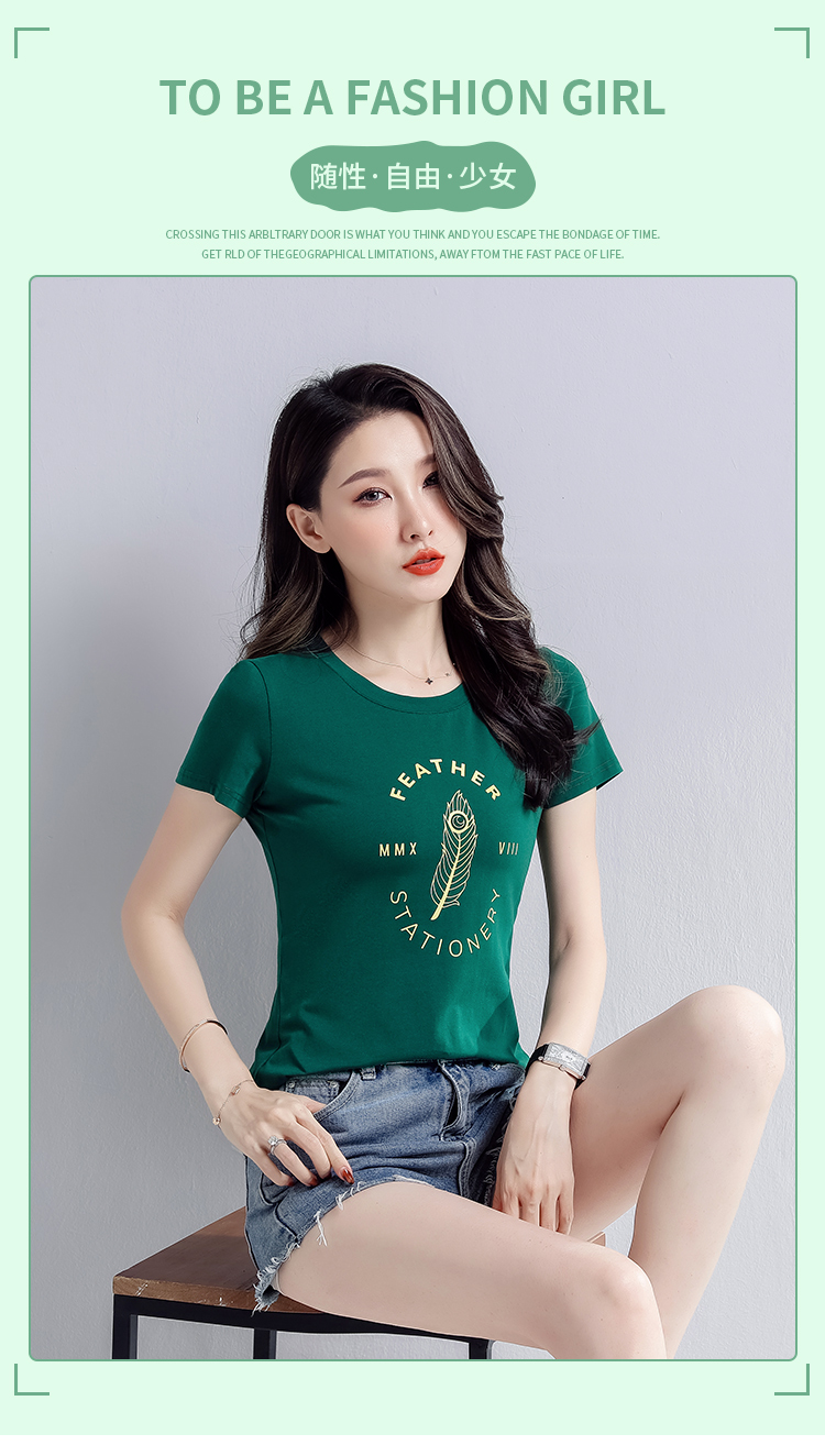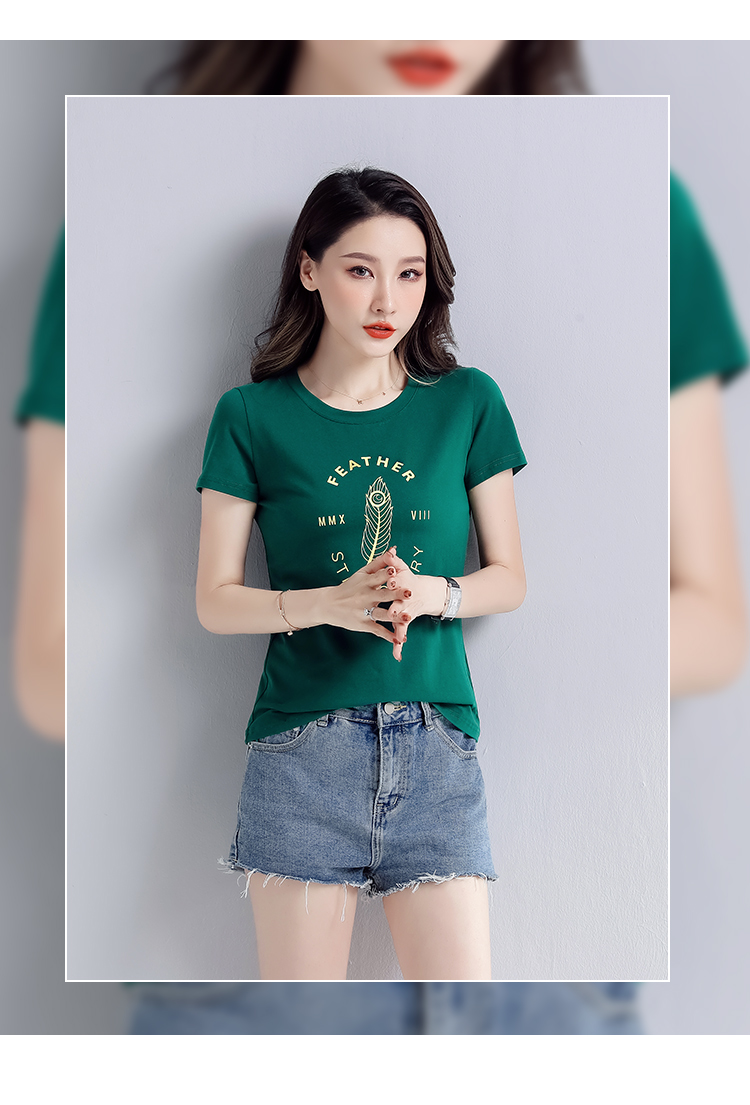 常规短袖实拍2021夏新款印花字母简约时尚修身t恤女装100%棉韩版