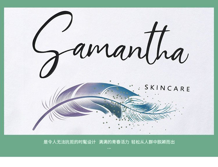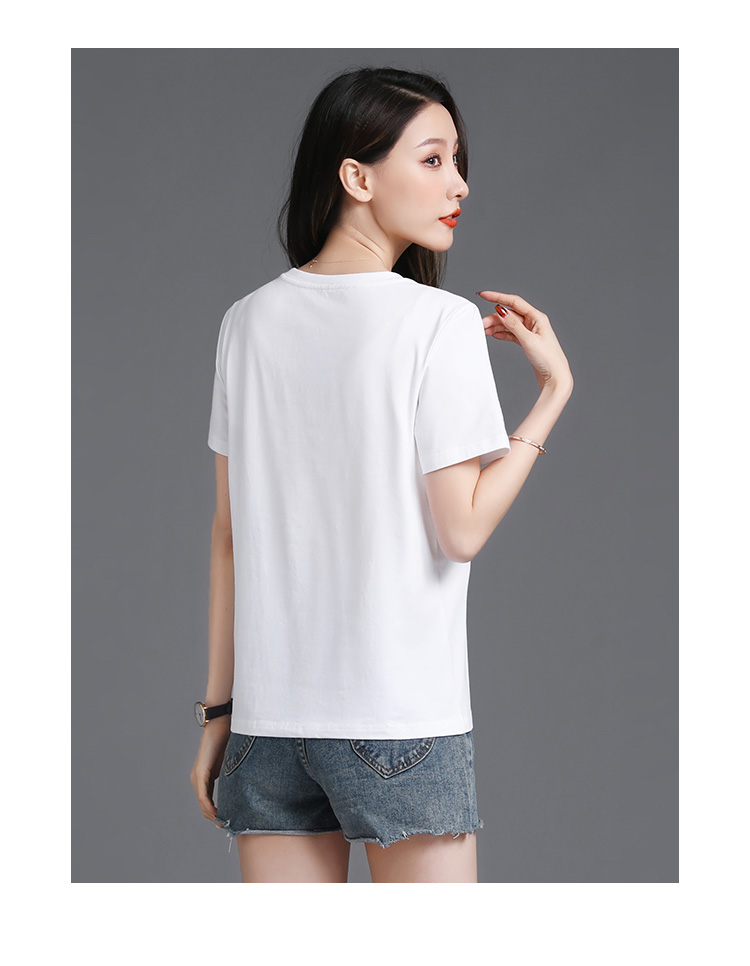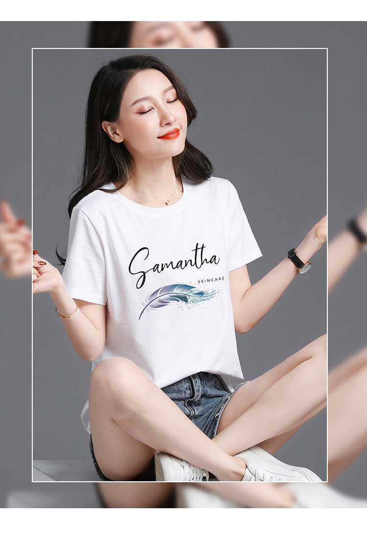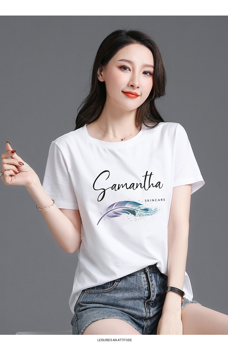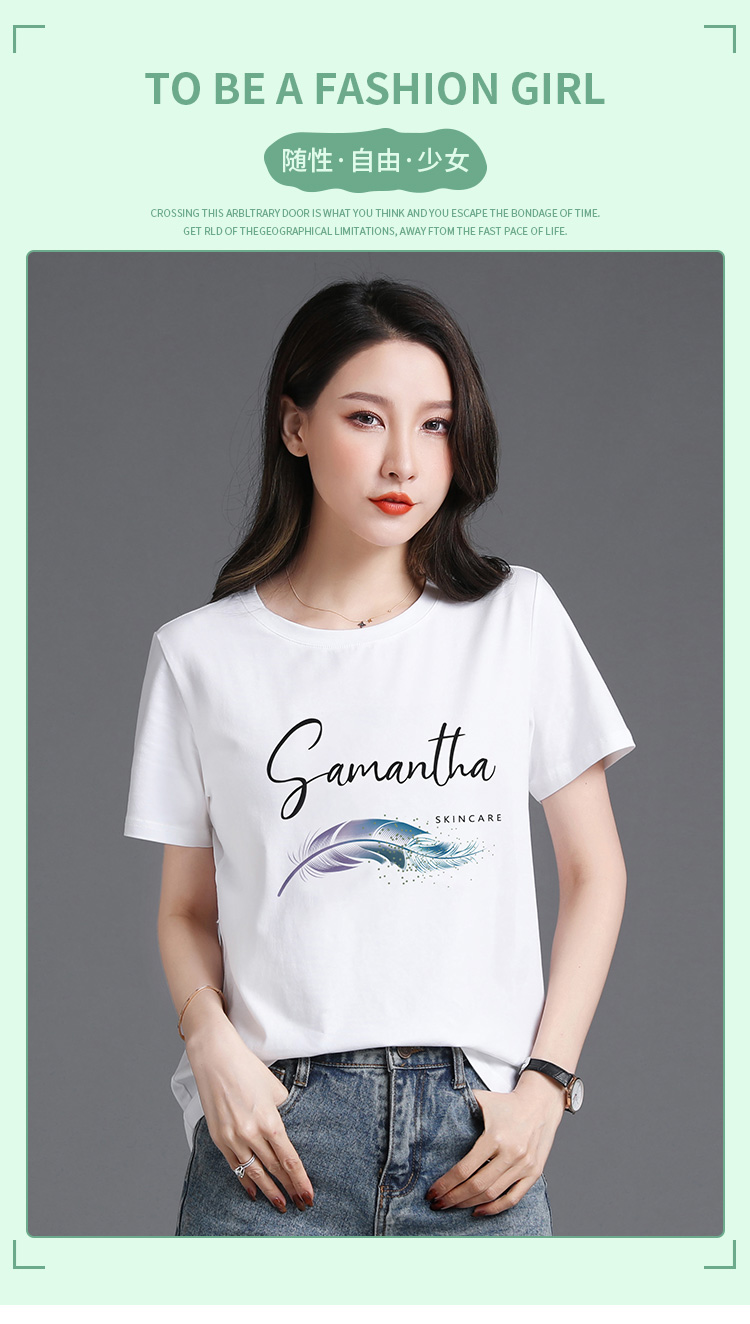 常规短袖实拍2021夏新款印花羽毛简约时尚t恤女100%棉韩版宽松