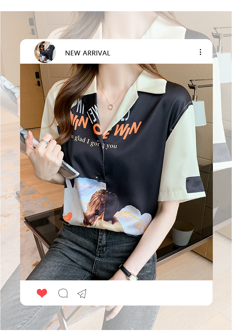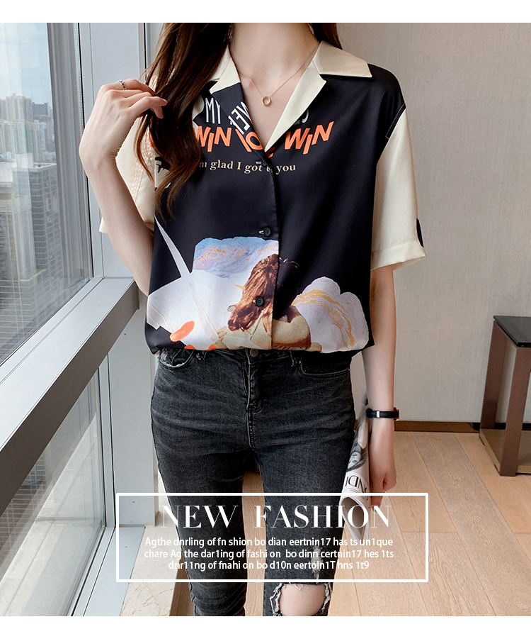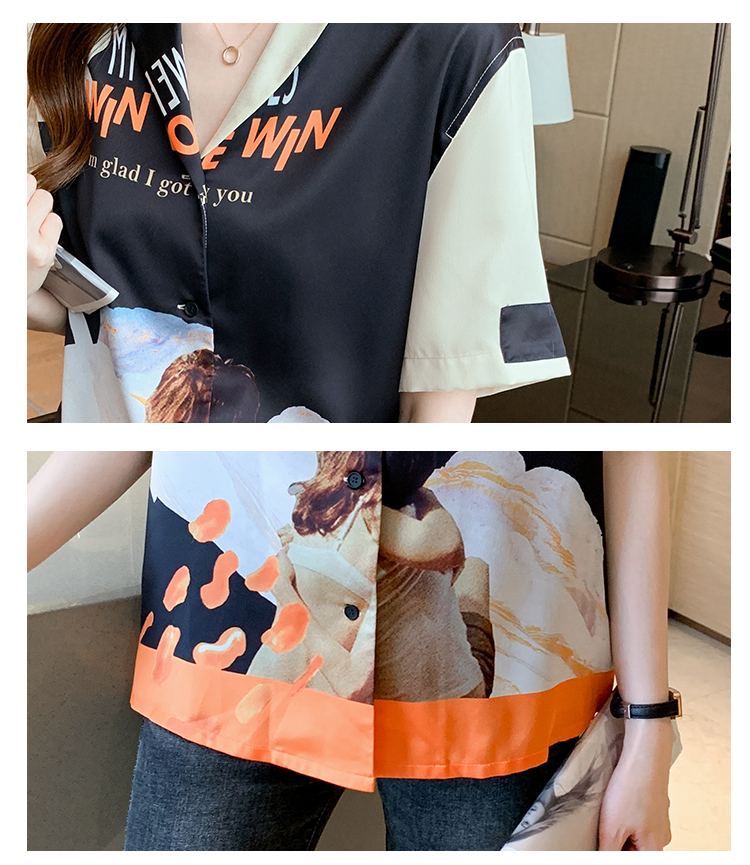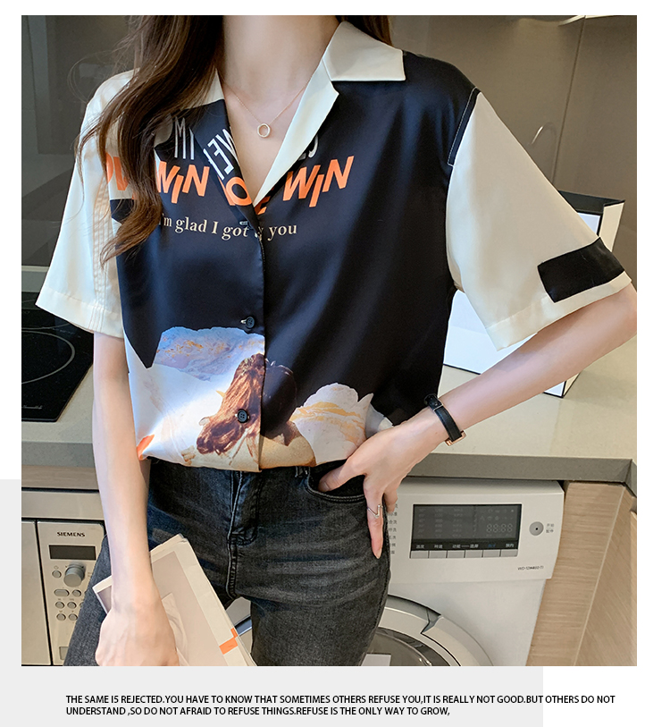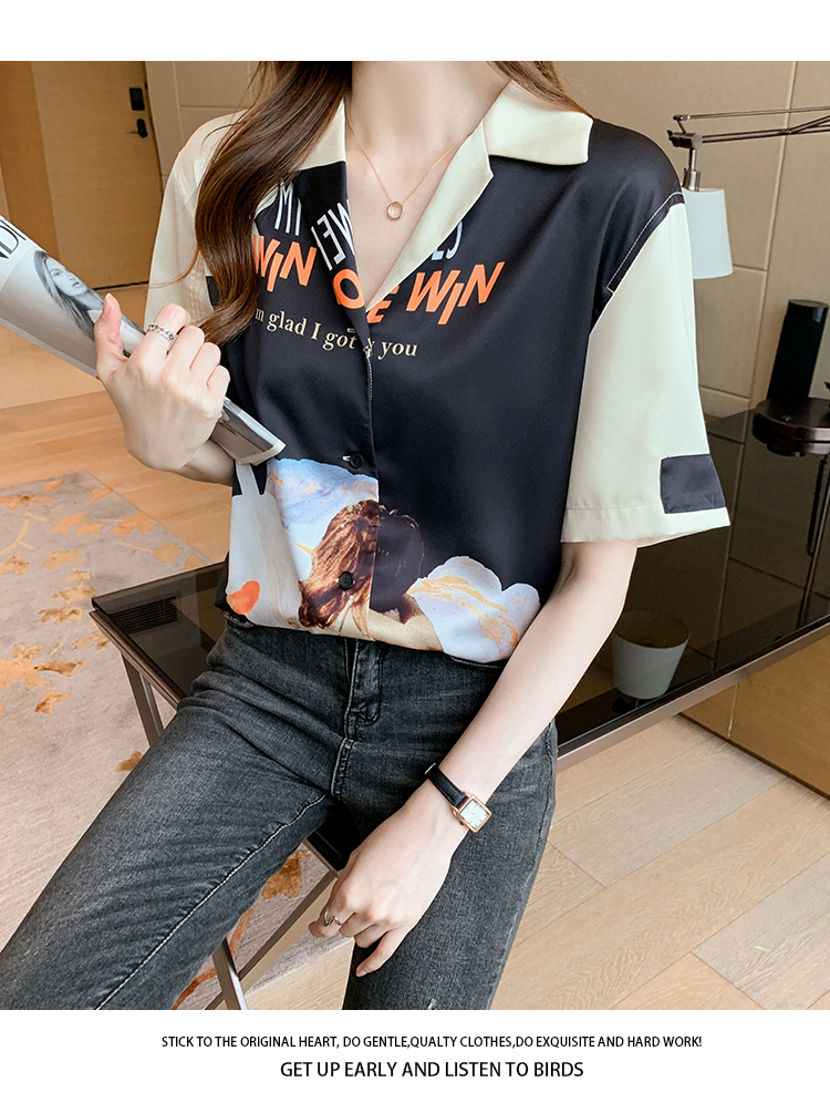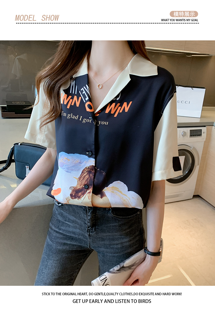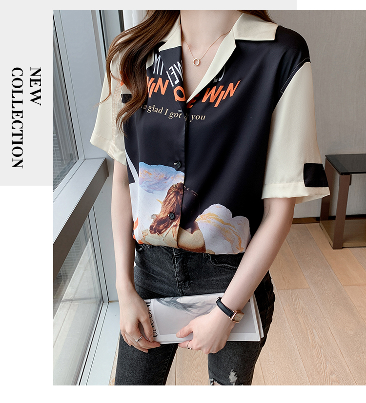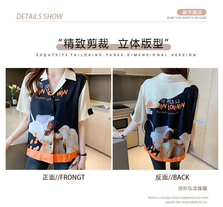 实拍2021夏新款高街潮酷抽象图案印花翻领宽松箱型衬衣