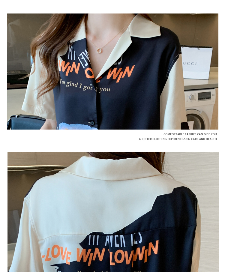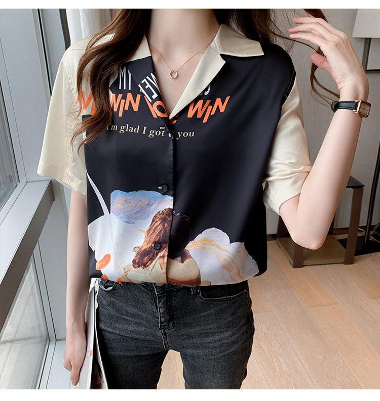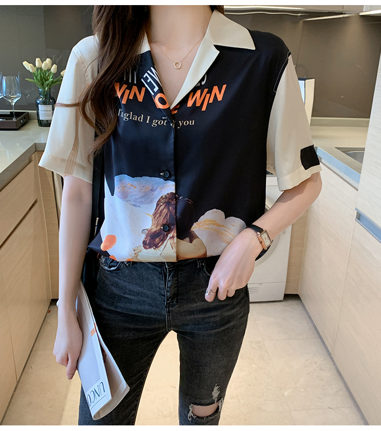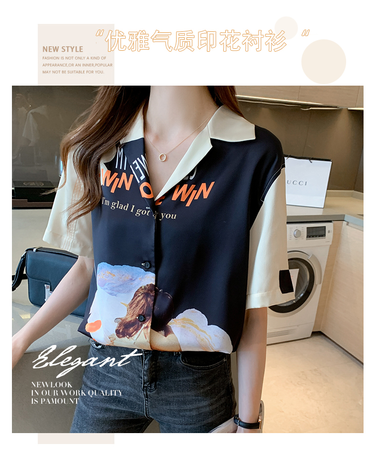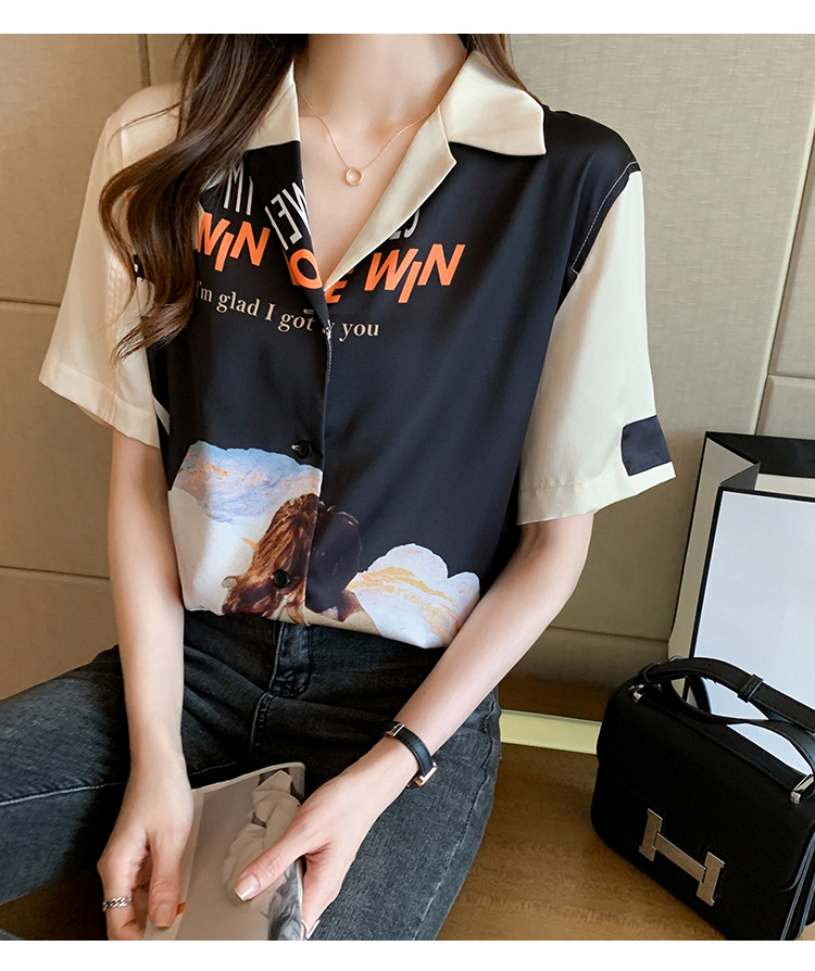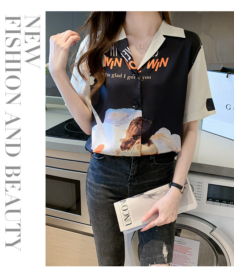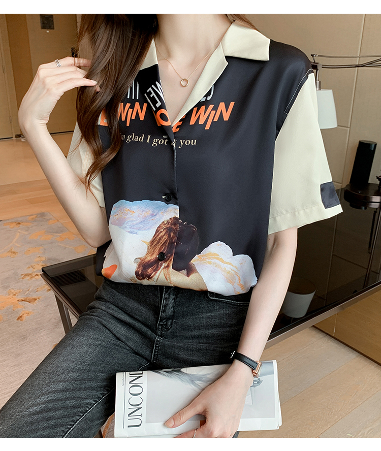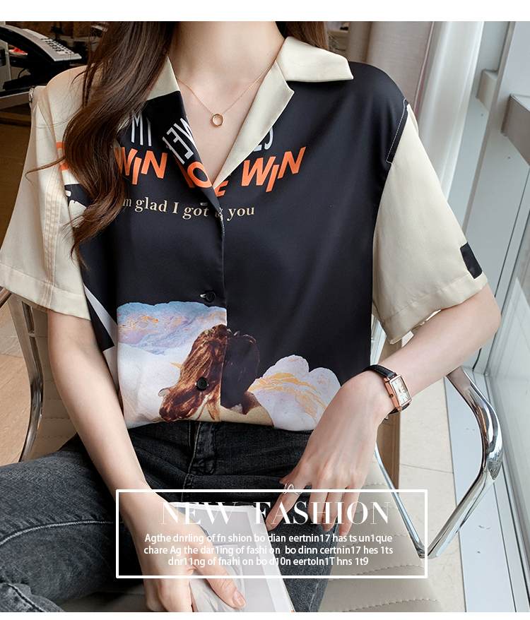 实拍2021夏新款高街潮酷抽象图案印花翻领宽松箱型衬衣
