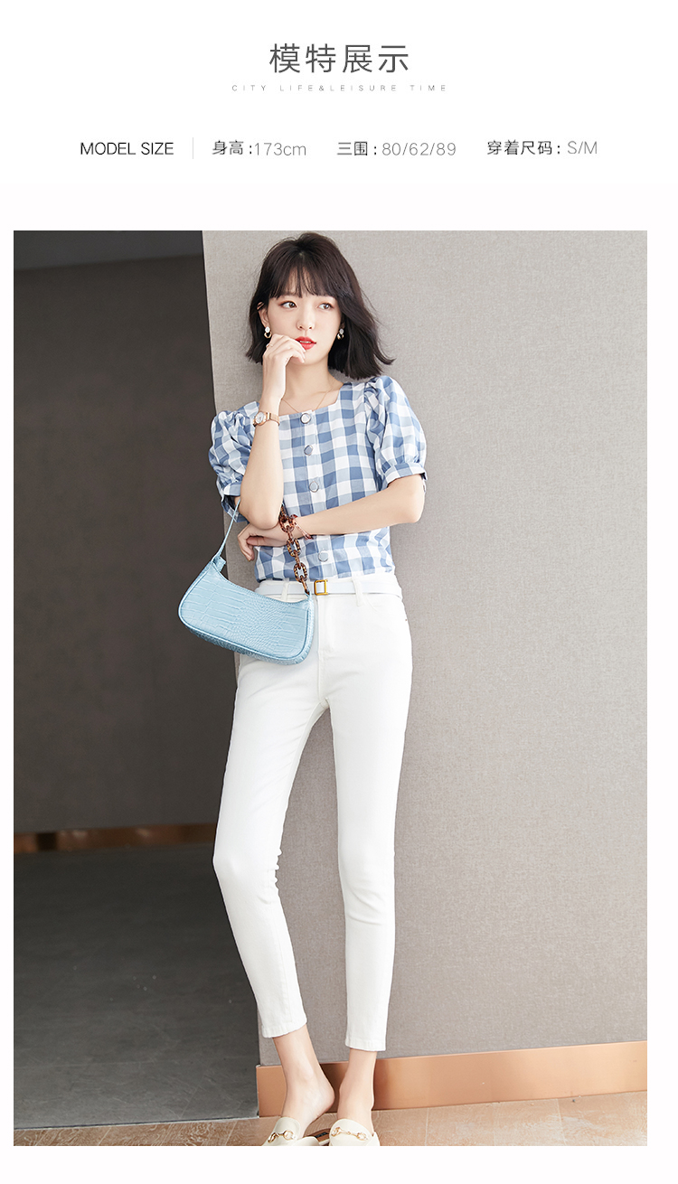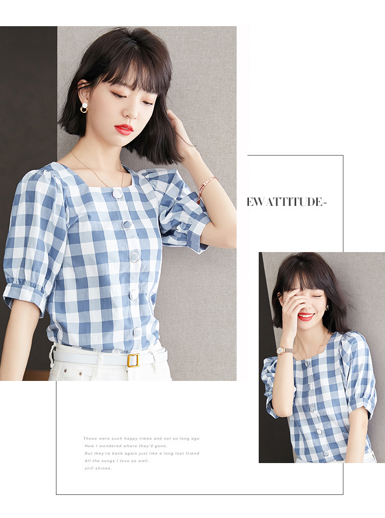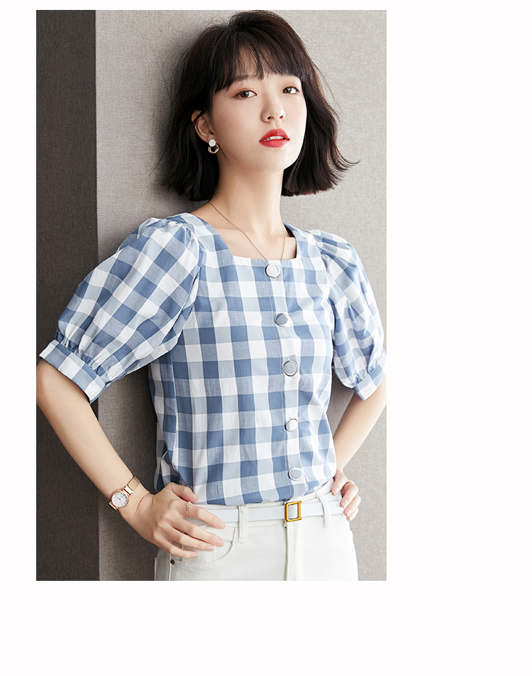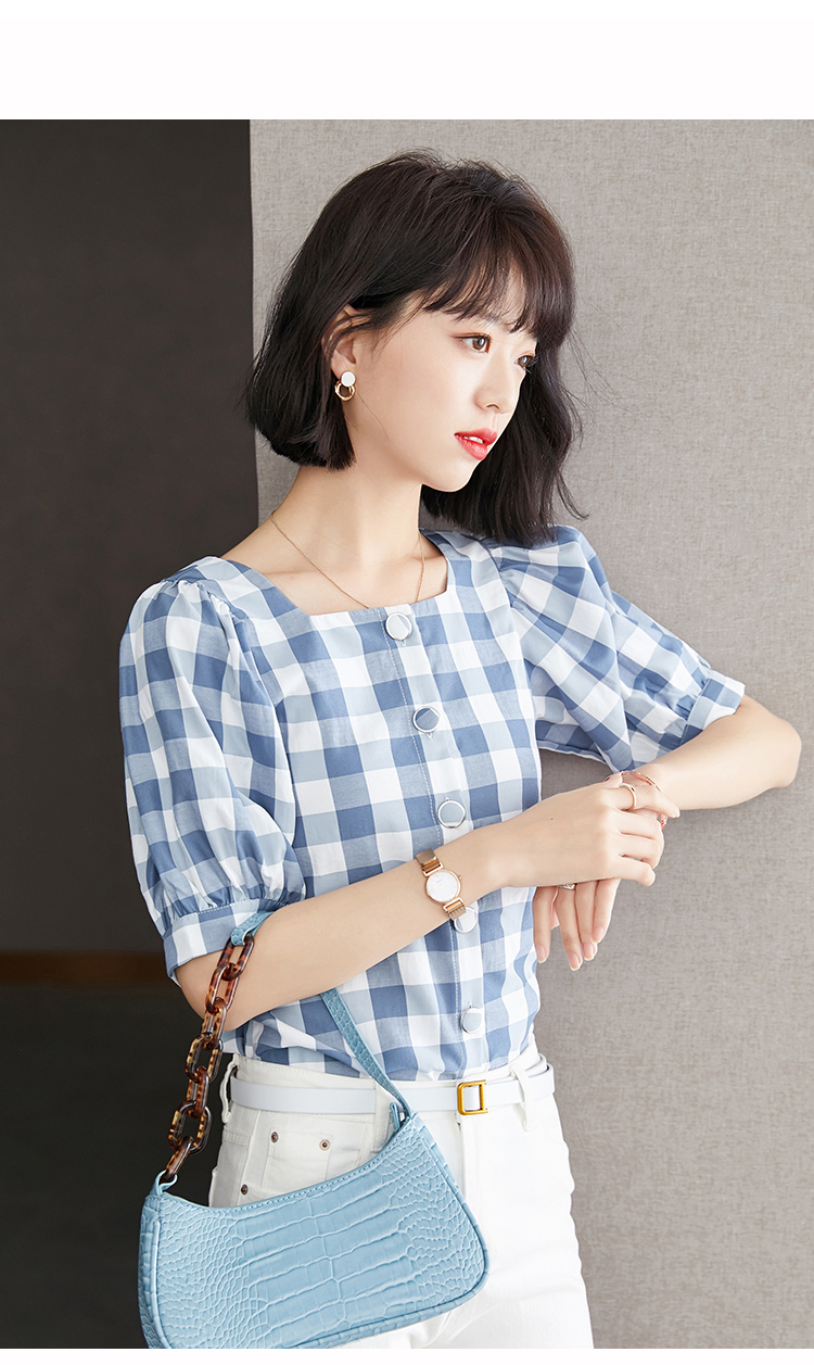 已出货 实拍格子短袖雪纺衫夏装2021新款上衣显瘦泡泡袖